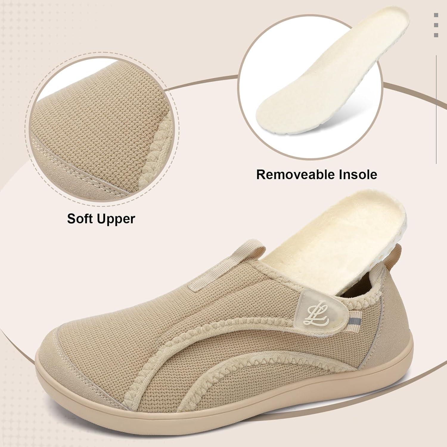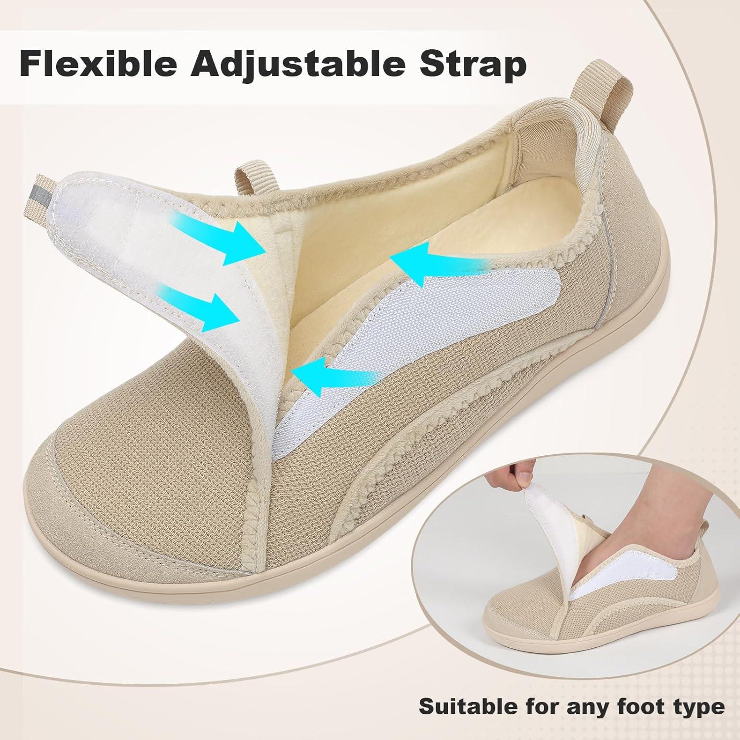 LeIsfIt Mens Slippers Wide House Shoes Adjustable Diabetic Slippers Warm Soft House Slipper for Swollen Edema Feet Indoor Outdoor Warm Shoes(Beige)