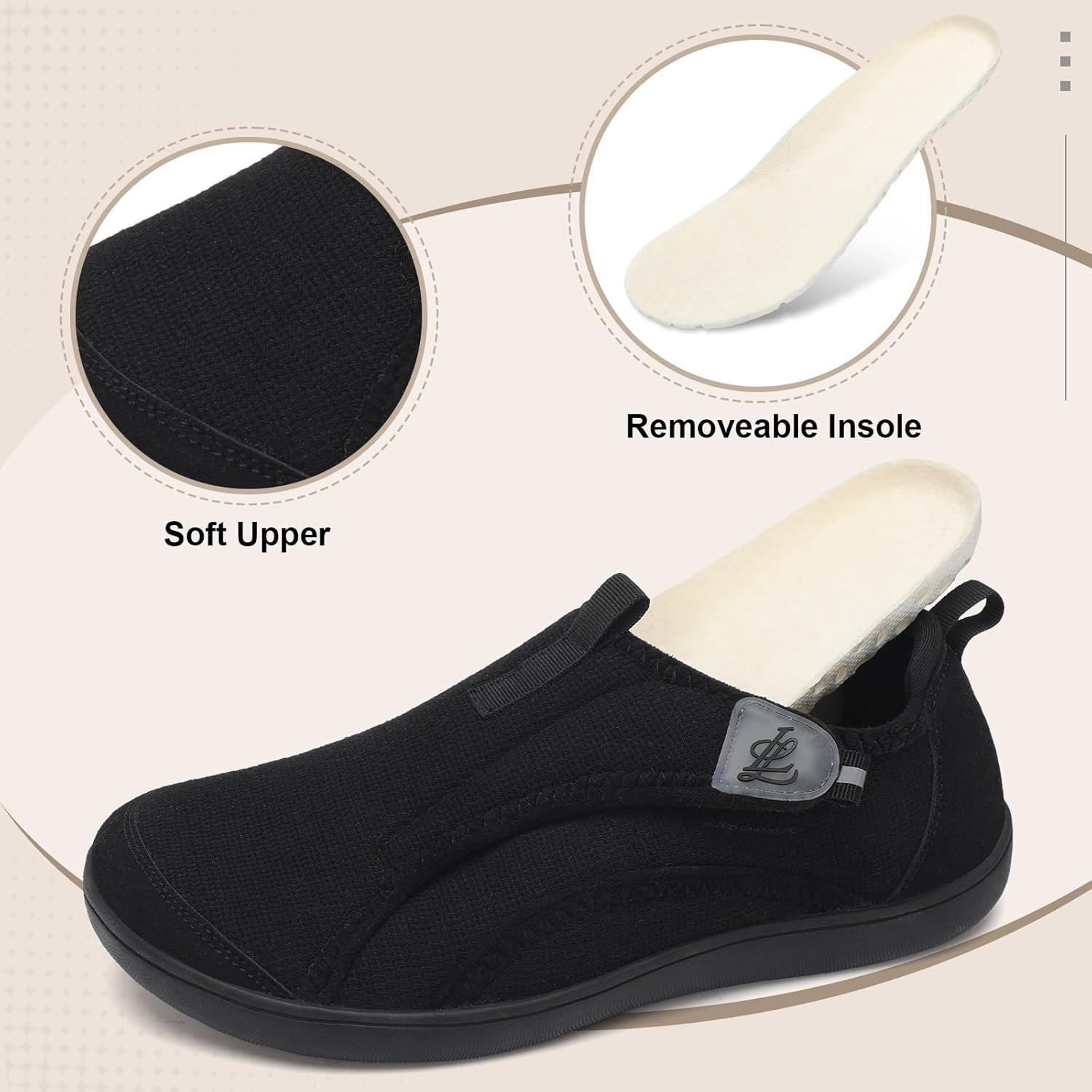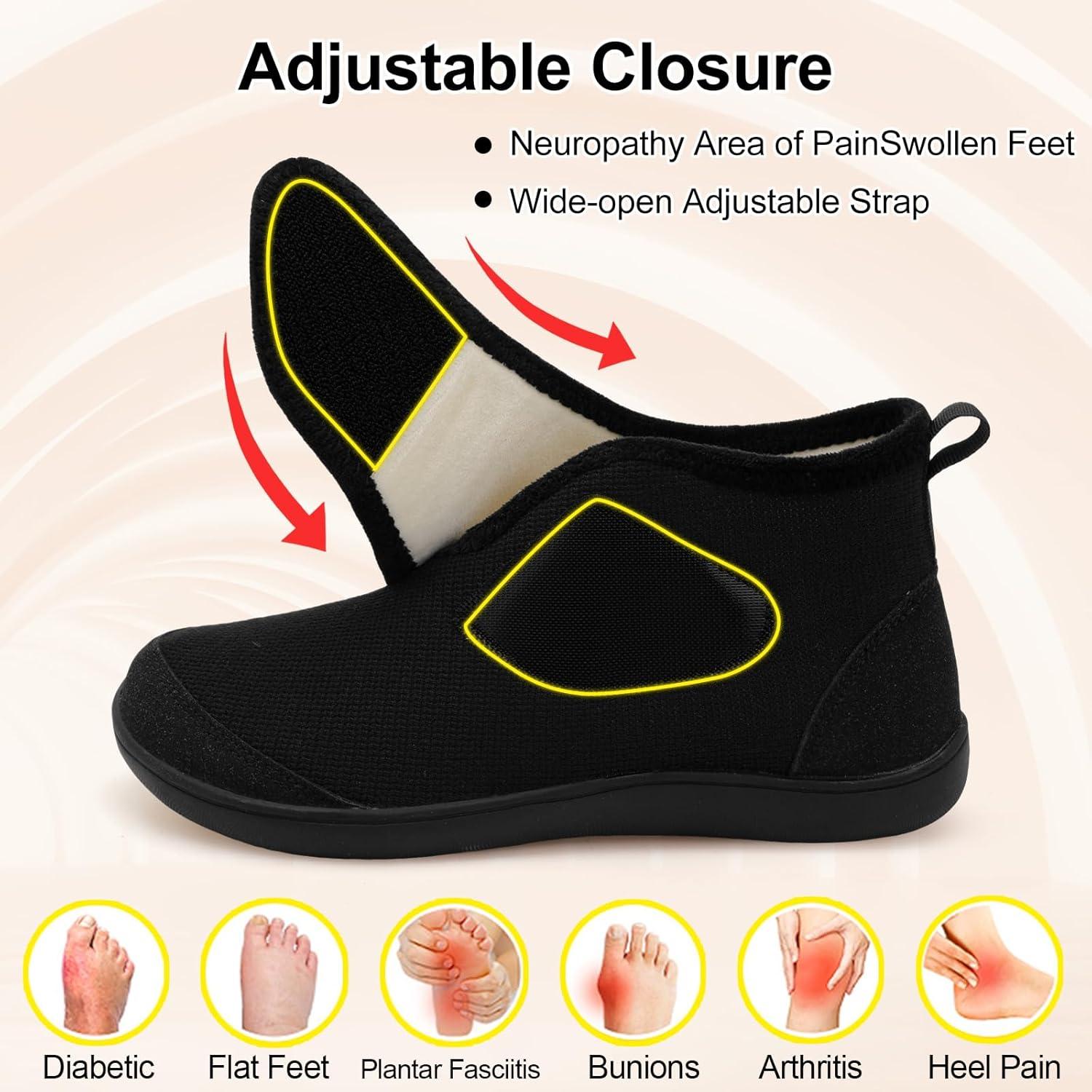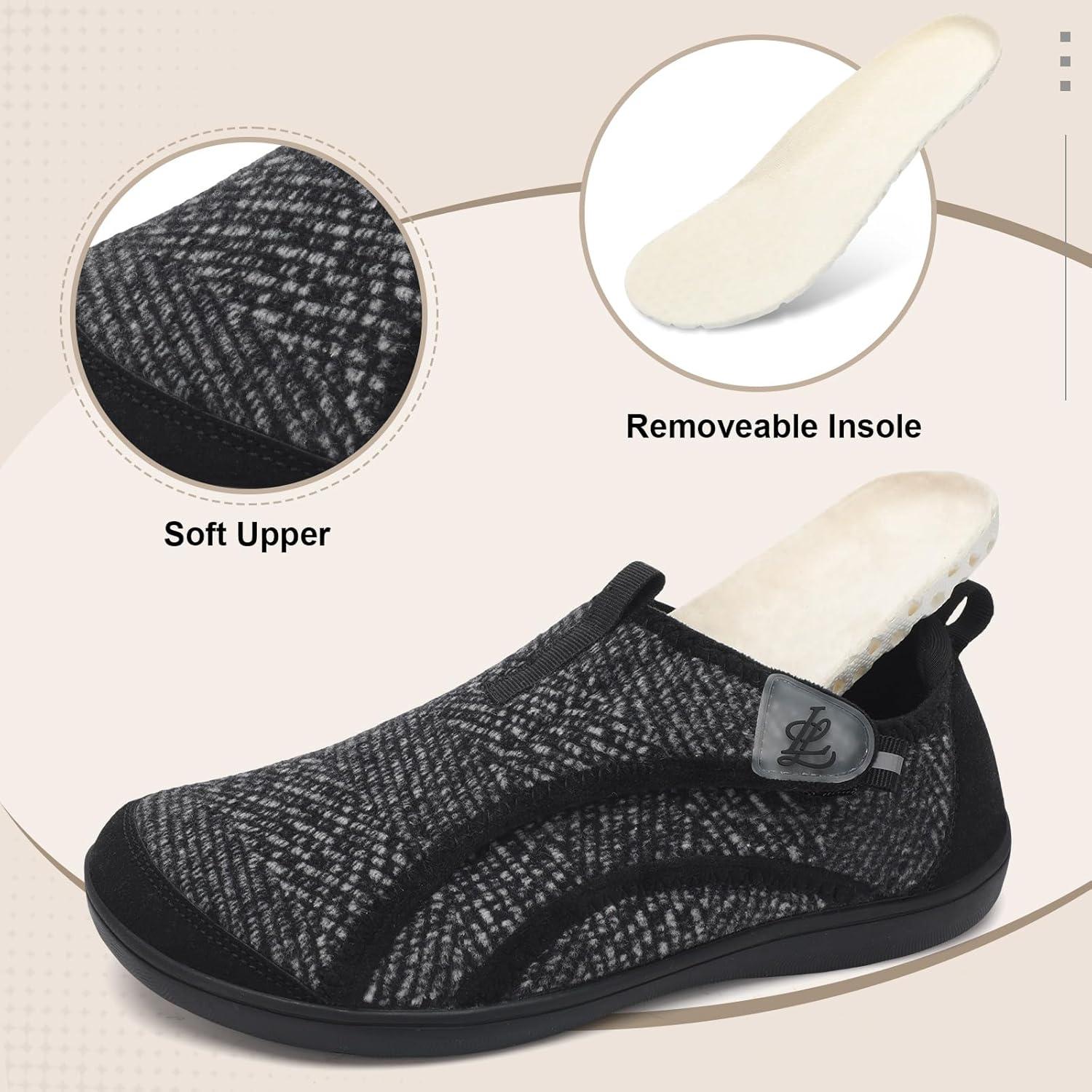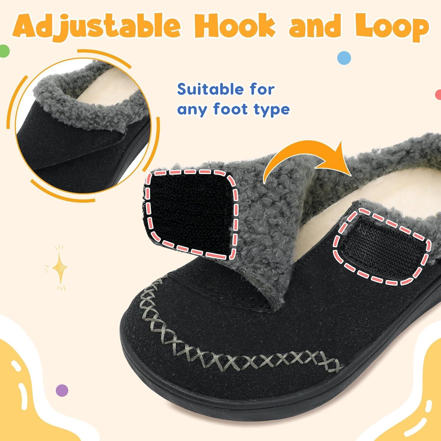 LeIsfIt Mens Slippers Wide House Shoes Adjustable Diabetic Slippers Warm Soft House Slipper for Swollen Edema Feet Indoor Outdoor Warm Shoes(Black)