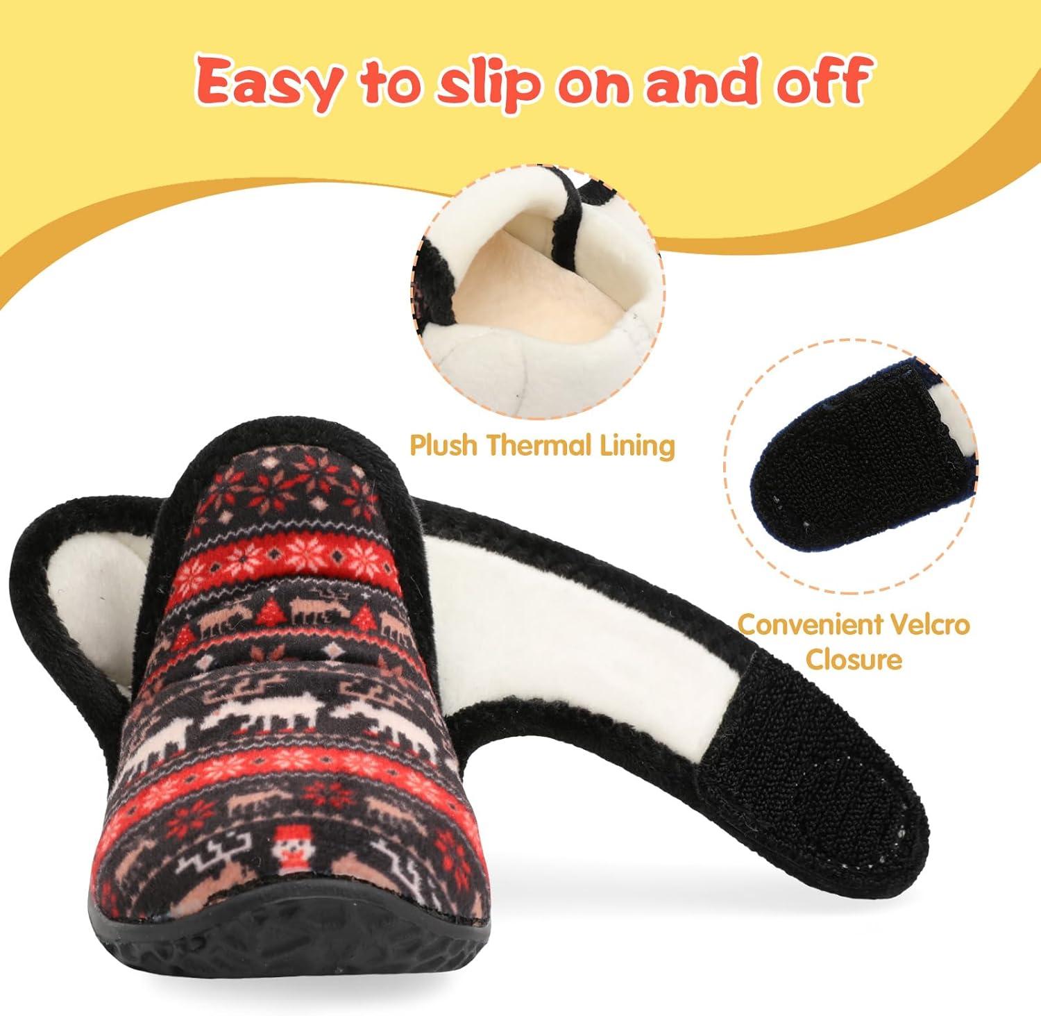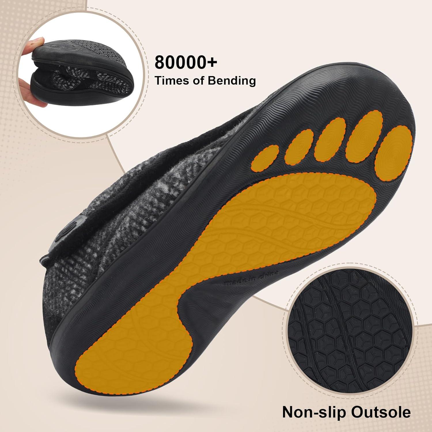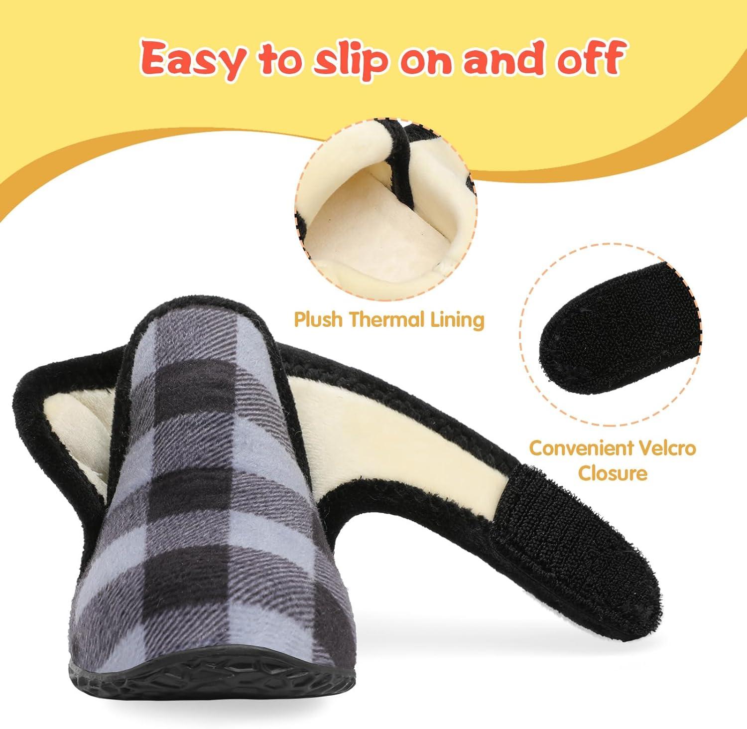 LeIsfIt Mens Slippers Wide House Shoes Adjustable Diabetic Slippers Warm Soft House Slipper for Swollen Edema Feet Indoor Outdoor Warm Shoes(Blackpattern)