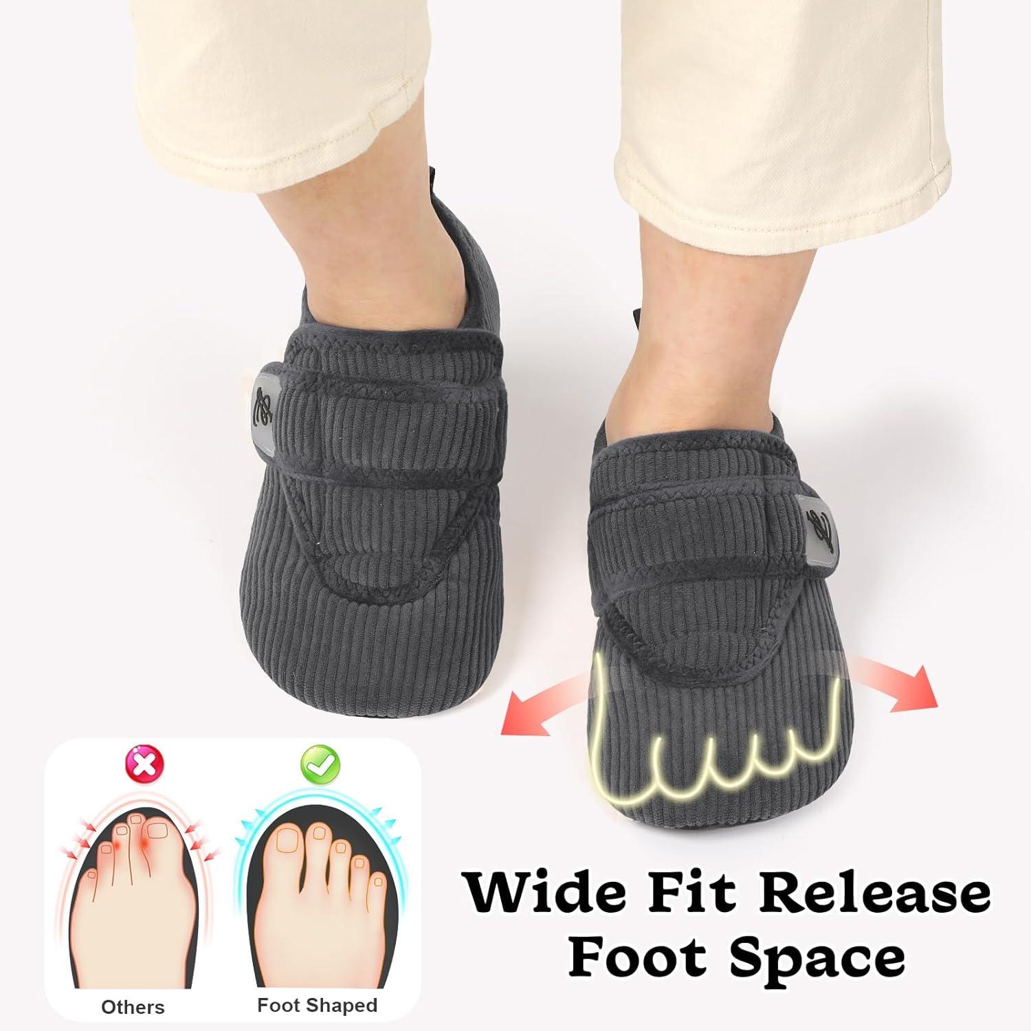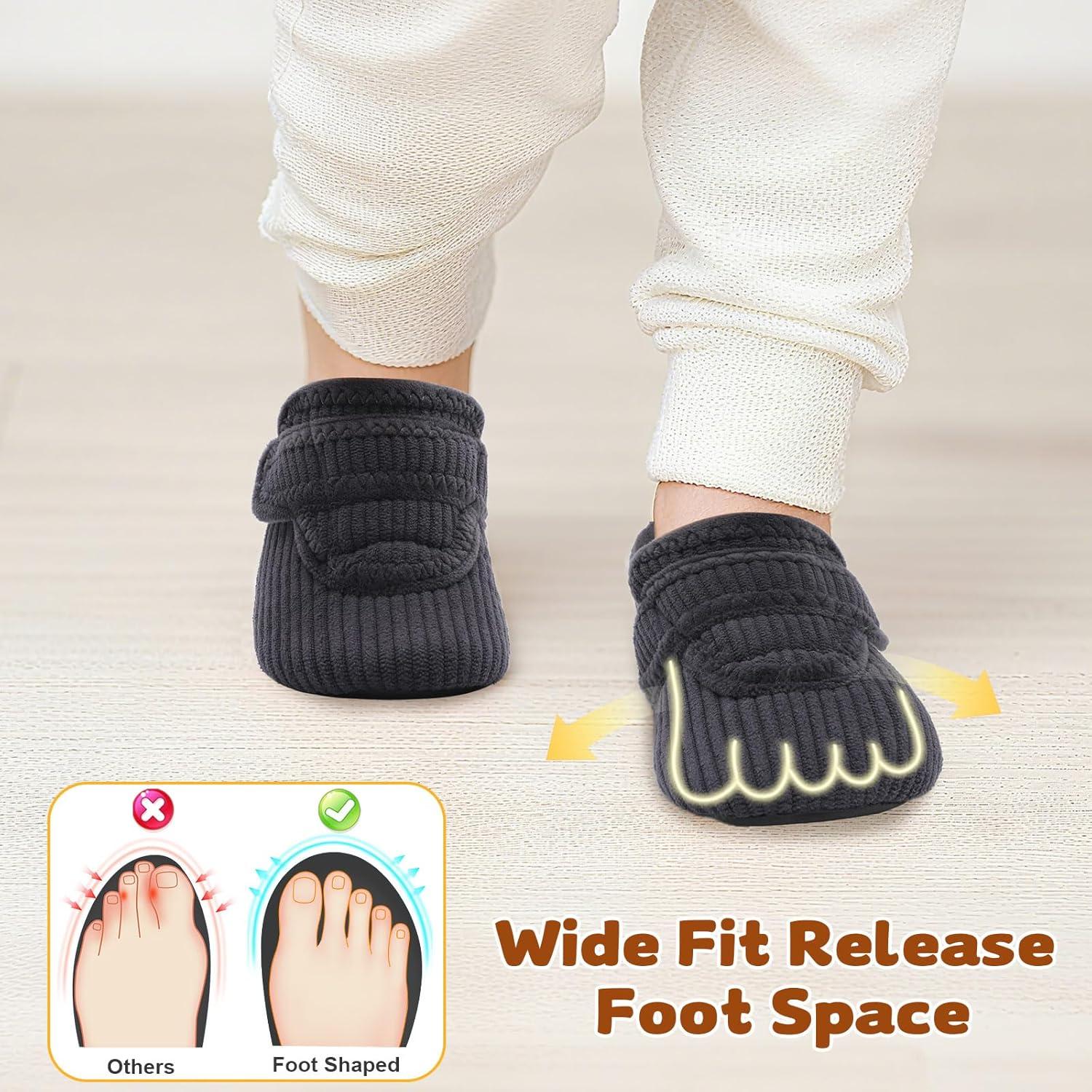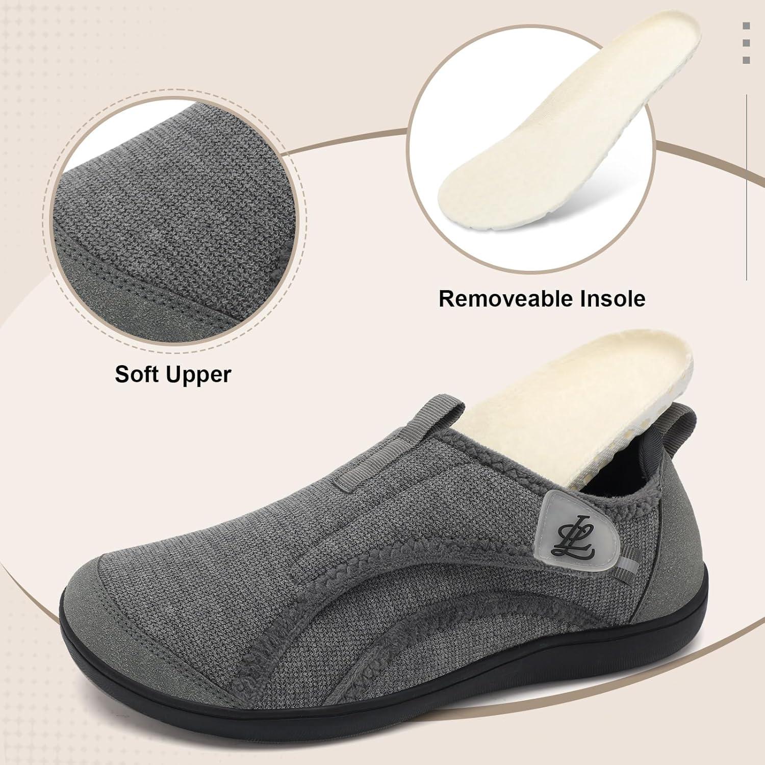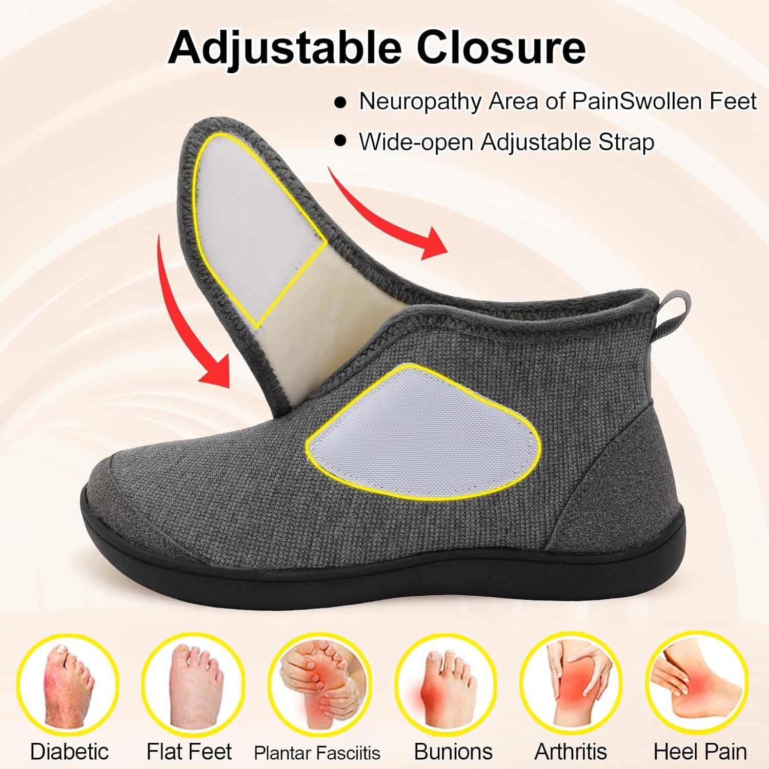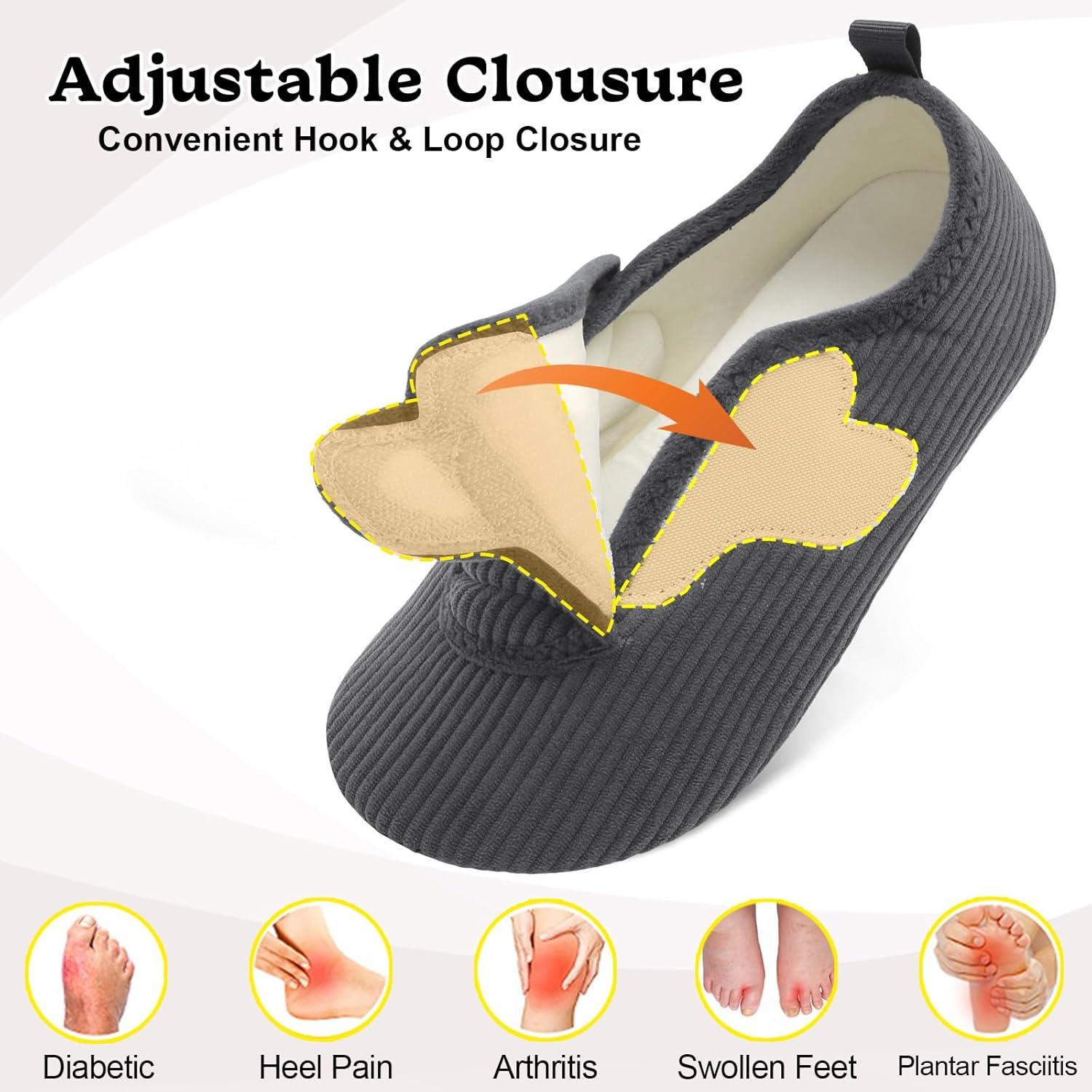 LeIsfIt Mens Slippers Wide House Shoes Adjustable Diabetic Slippers Warm Soft House Slipper for Swollen Edema Feet Indoor Outdoor Warm Shoes(Darkgrey)