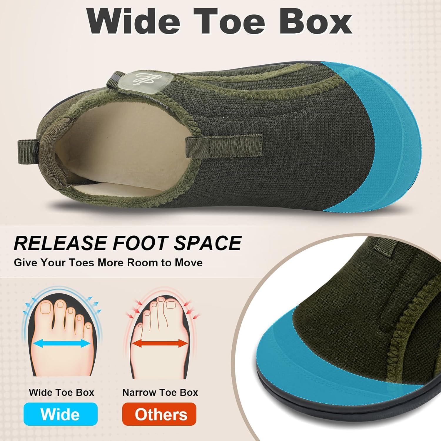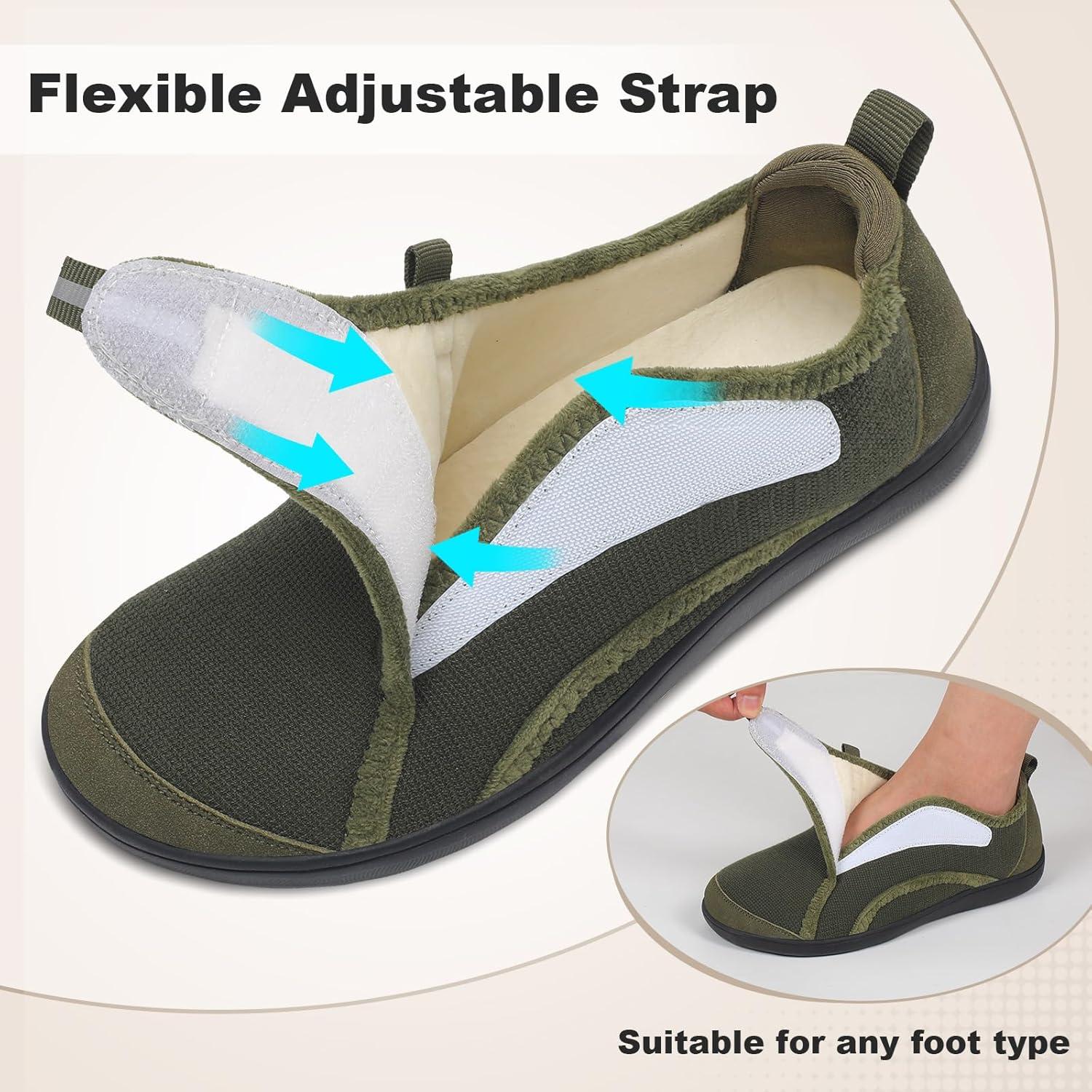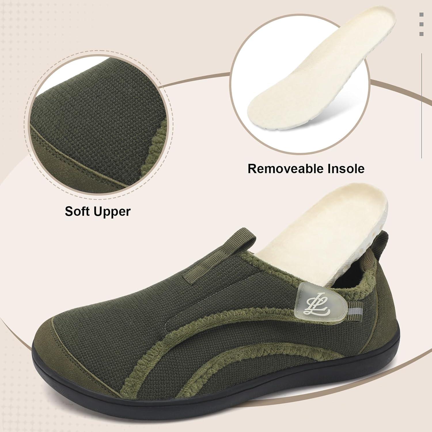 LeIsfIt Mens Slippers Wide House Shoes Adjustable Diabetic Slippers Warm Soft House Slipper for Swollen Edema Feet Indoor Outdoor Warm Shoes(Green)