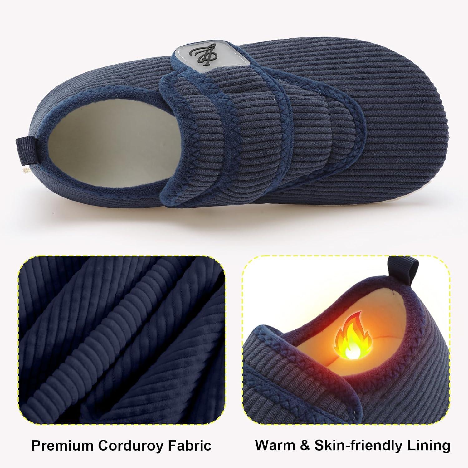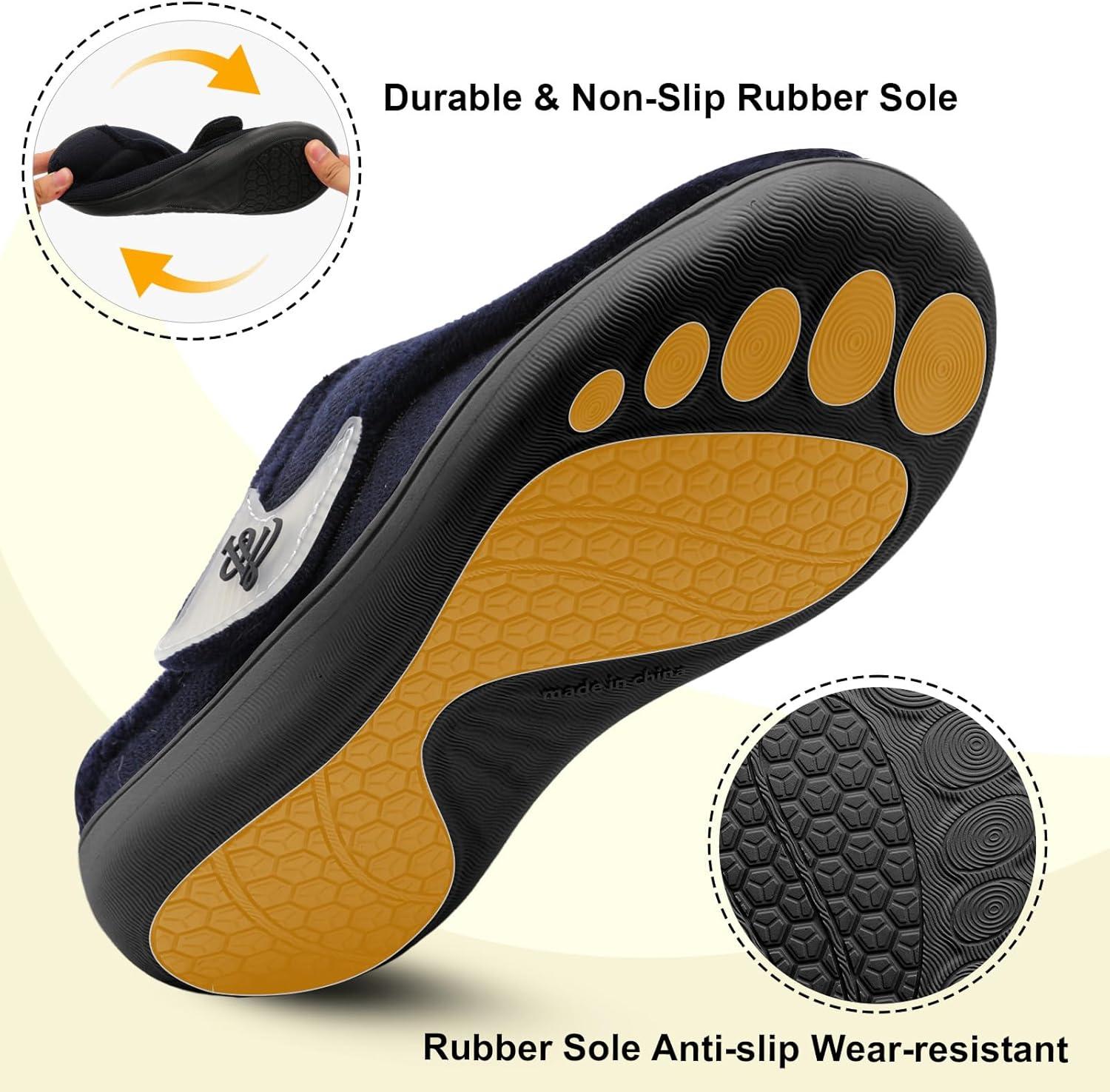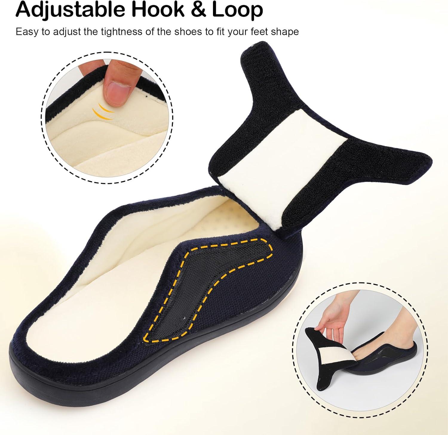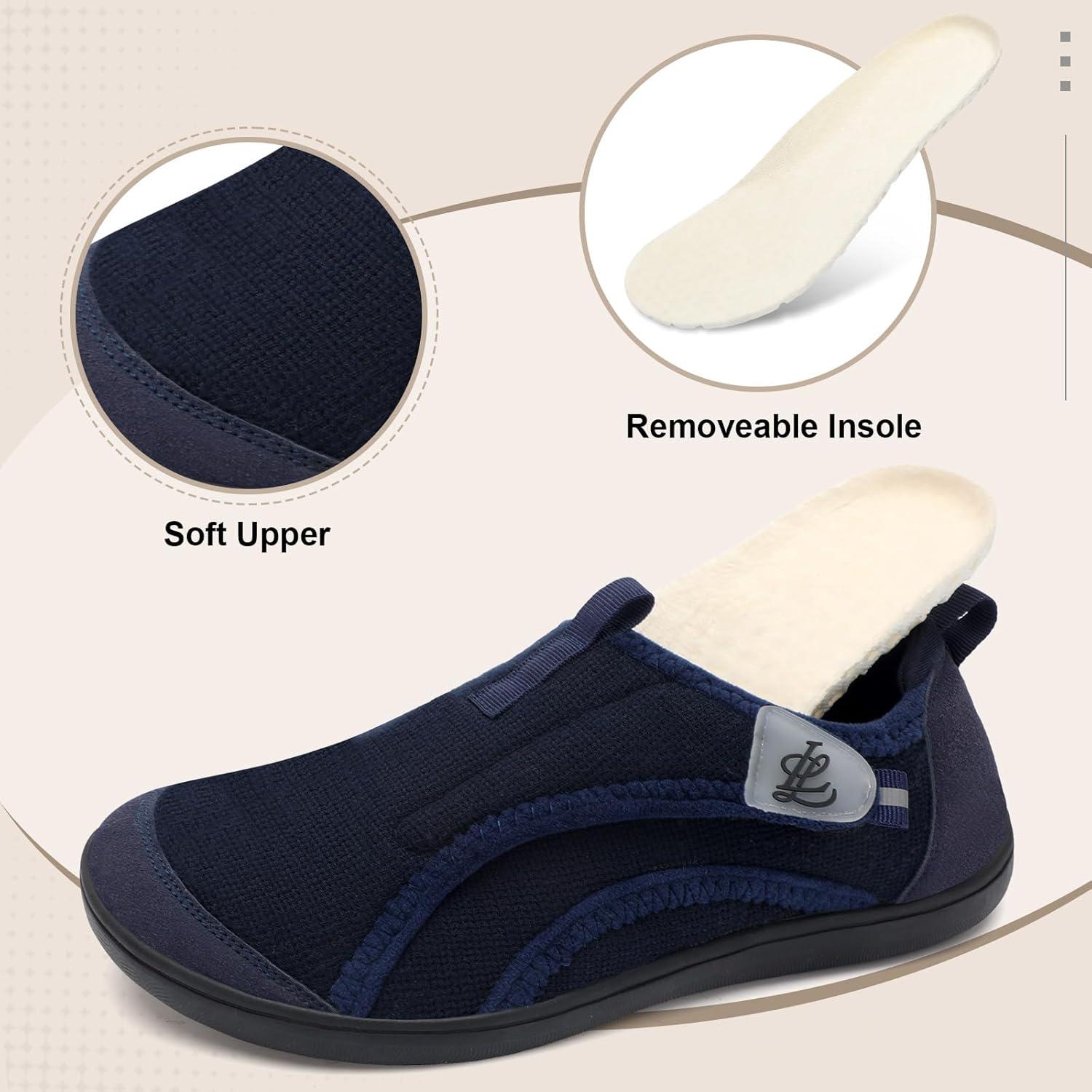 LeIsfIt Mens Slippers Wide House Shoes Adjustable Diabetic Slippers Warm Soft House Slipper for Swollen Edema Feet Indoor Outdoor Warm Shoes(Navy)