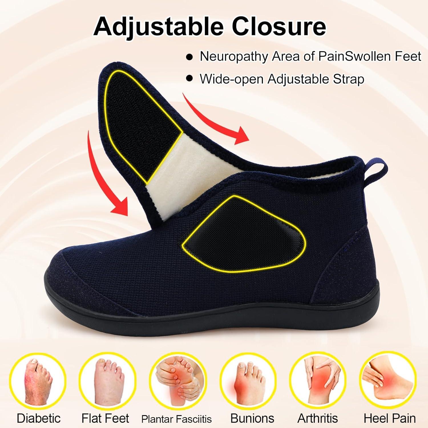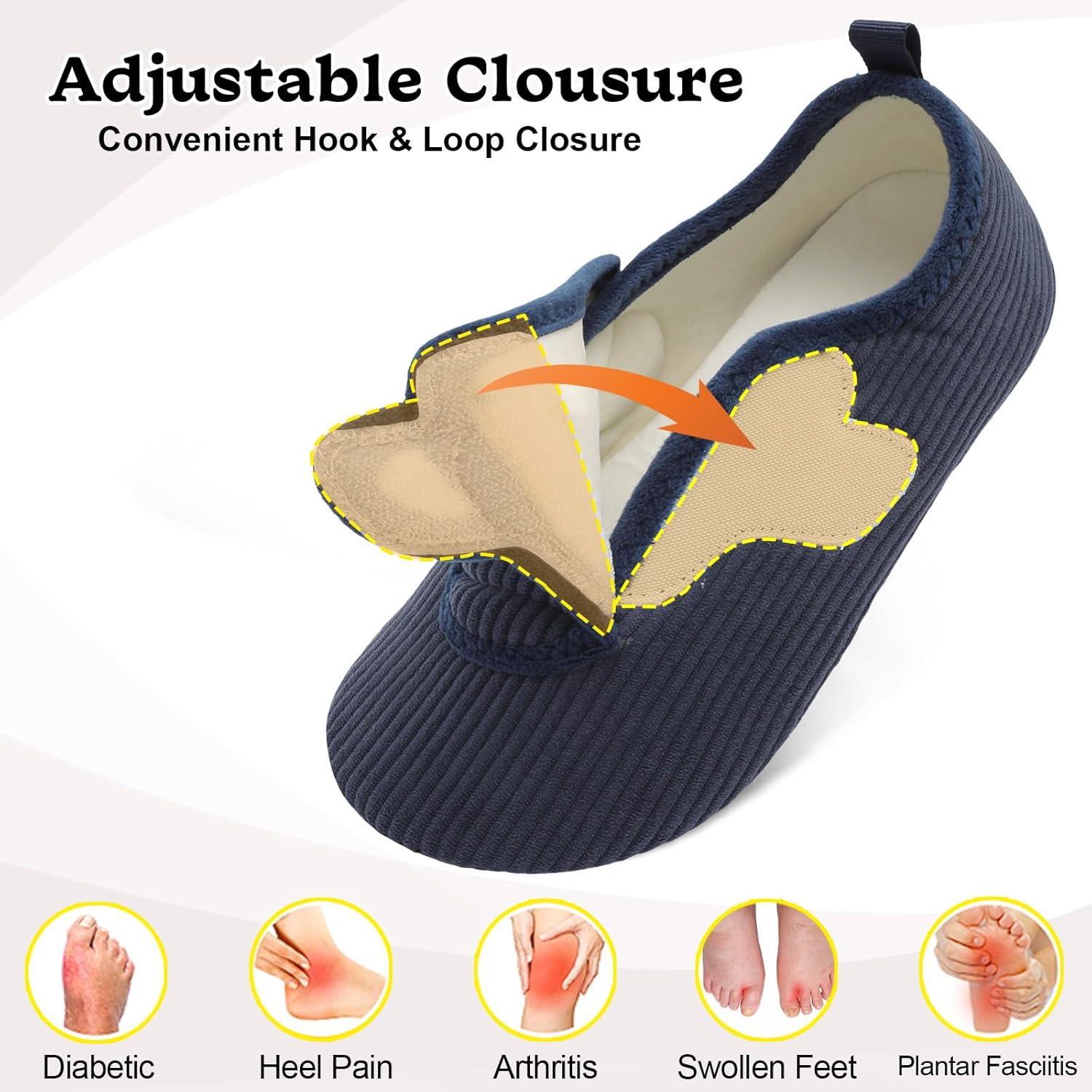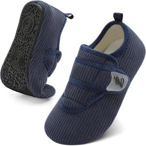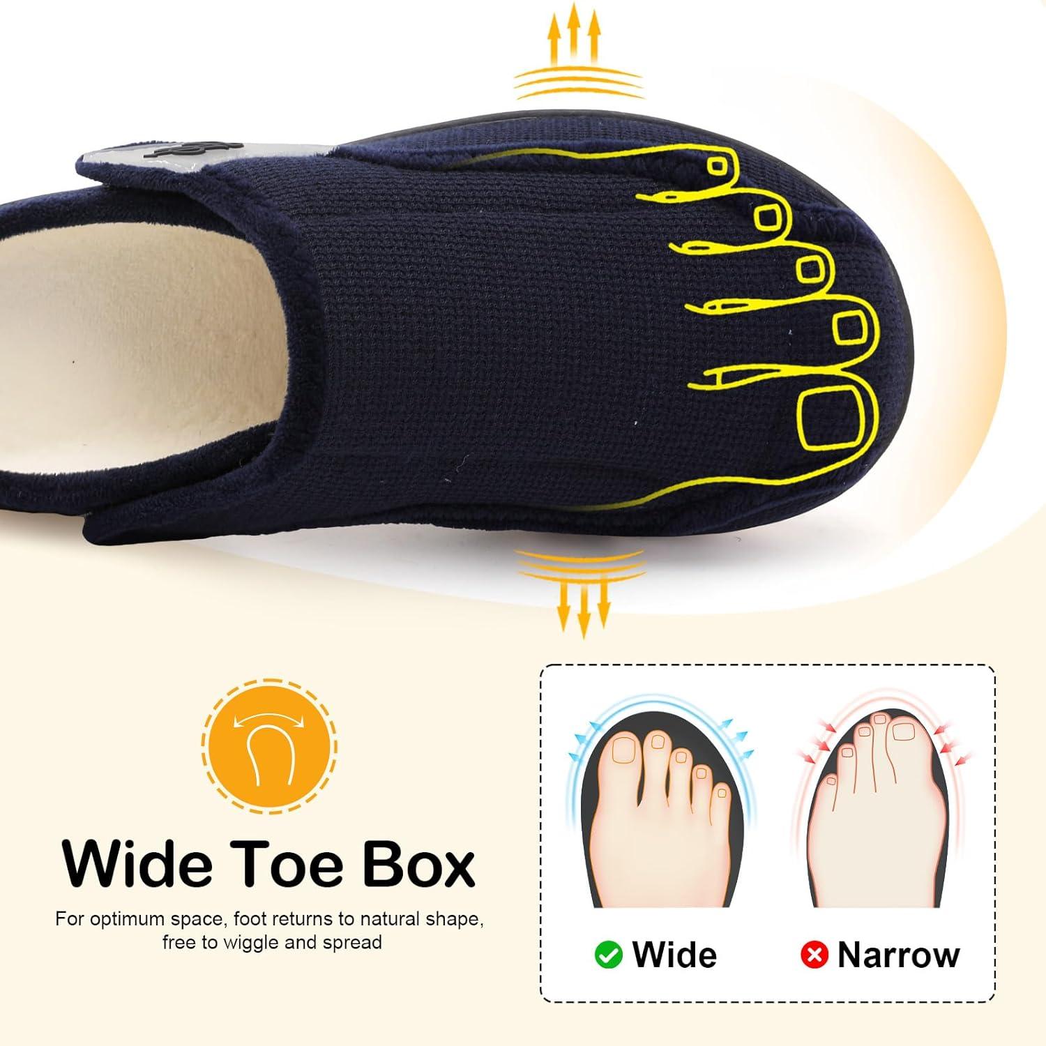 LeIsfIt Mens Slippers Wide House Shoes Adjustable Diabetic Slippers Warm Soft House Slipper for Swollen Edema Feet Indoor Outdoor Warm Shoes(Navy)