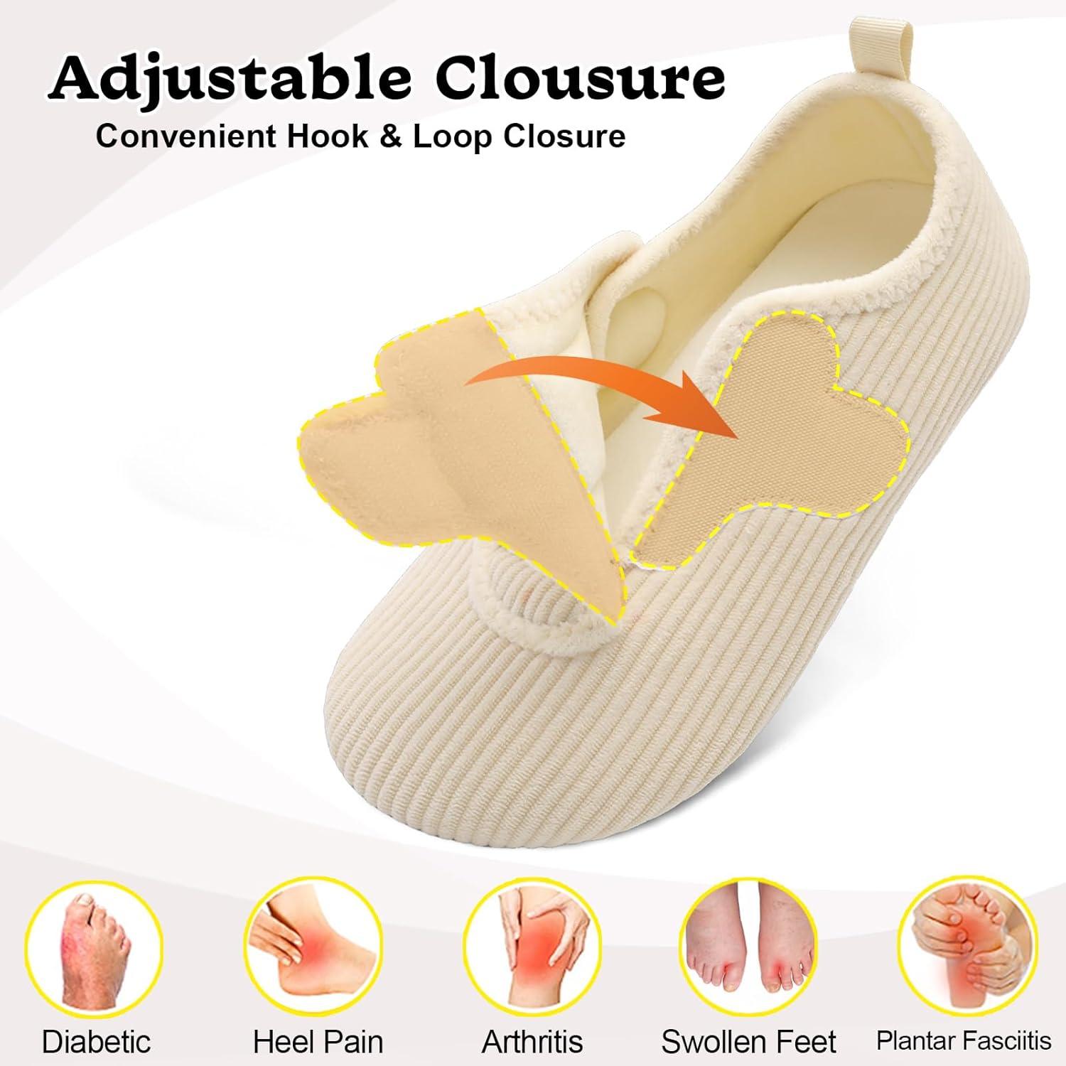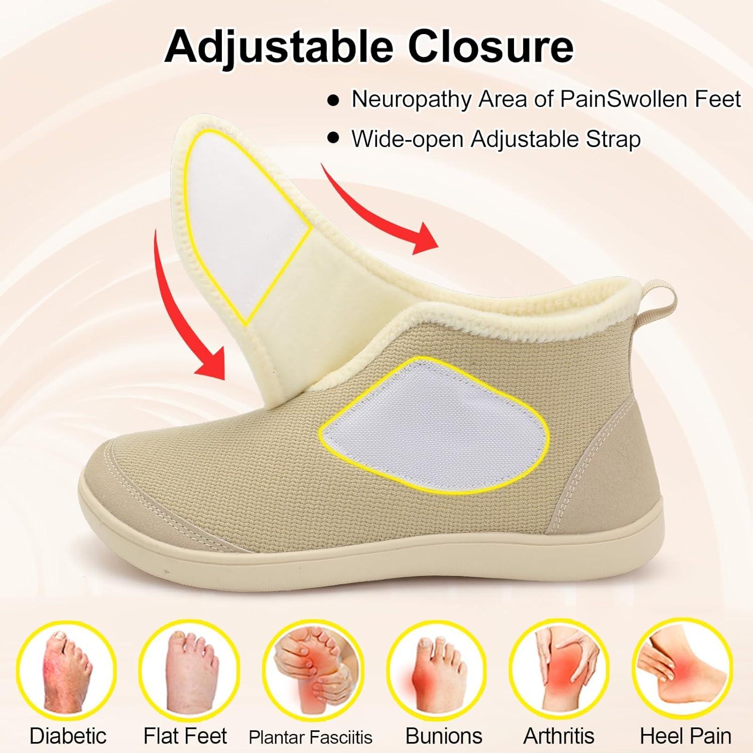 LeIsfIt Slipper Boots for Women Wide Warm House Shoes Non-slip Diabetic Winter Shoes Adjustable Bootie Slippers for Indoor & Outdoor(Beige)