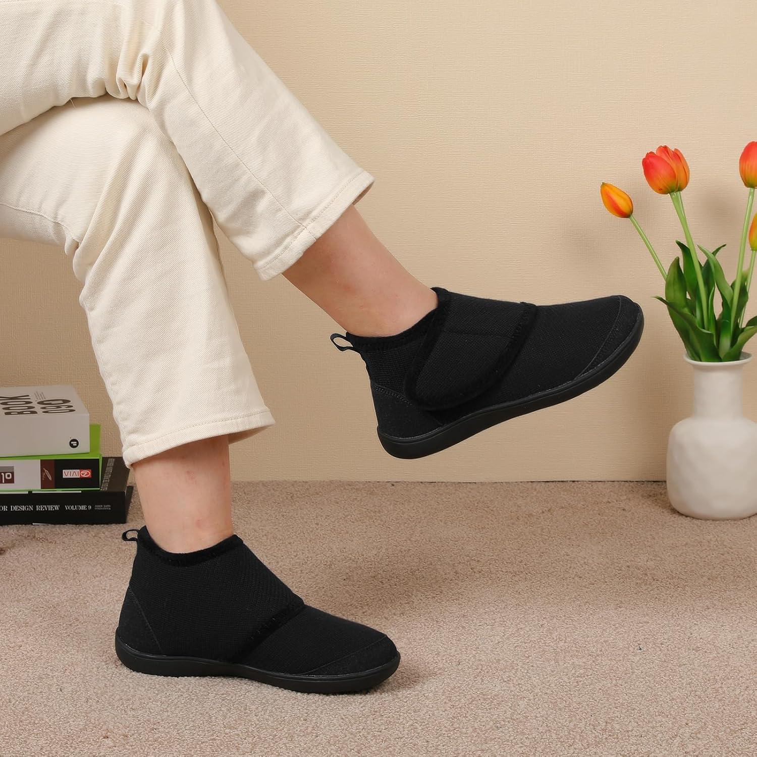LeIsfIt Slipper Boots for Women Wide Warm House Shoes Non-slip Diabetic Winter Shoes Adjustable Bootie Slippers for Indoor & Outdoor(Black)