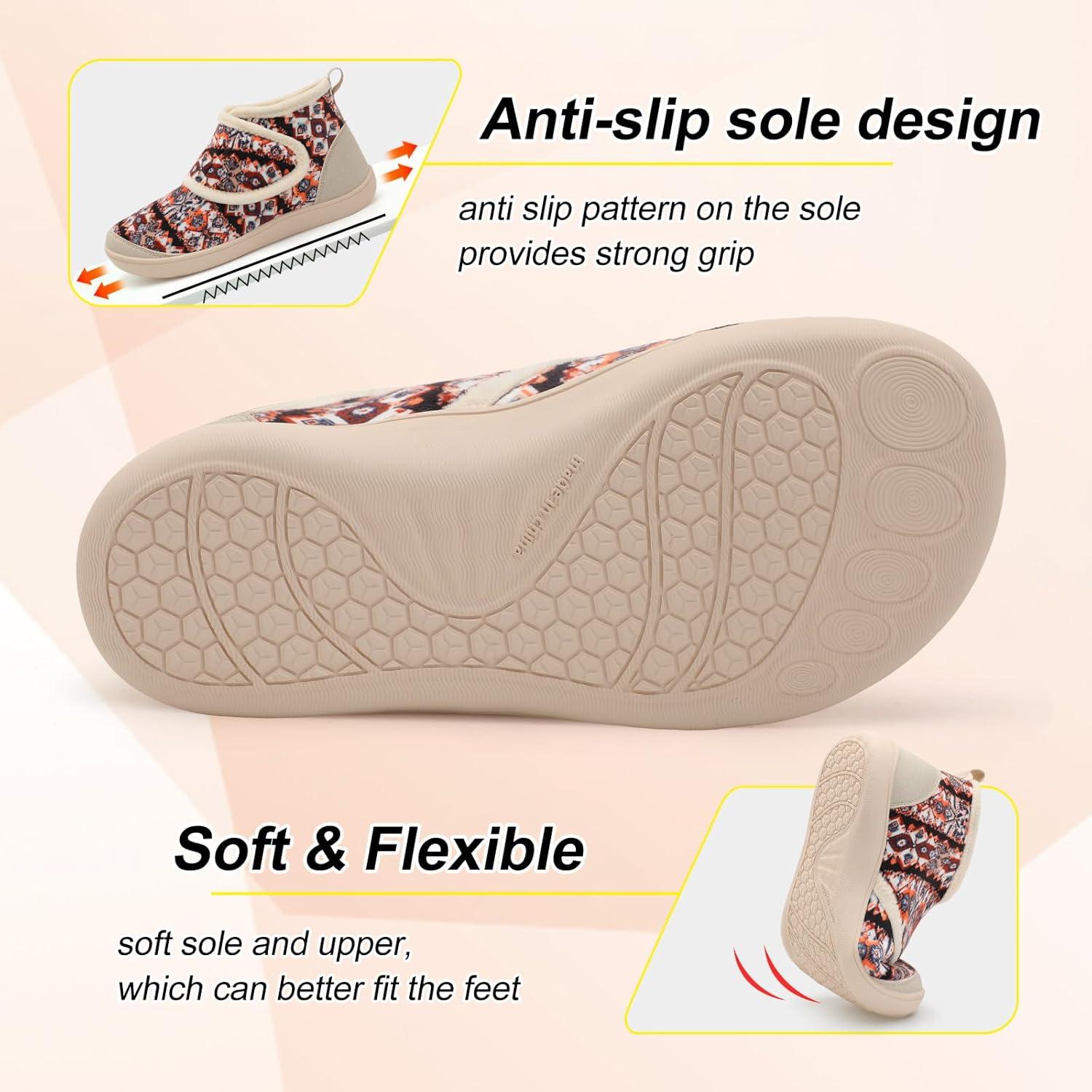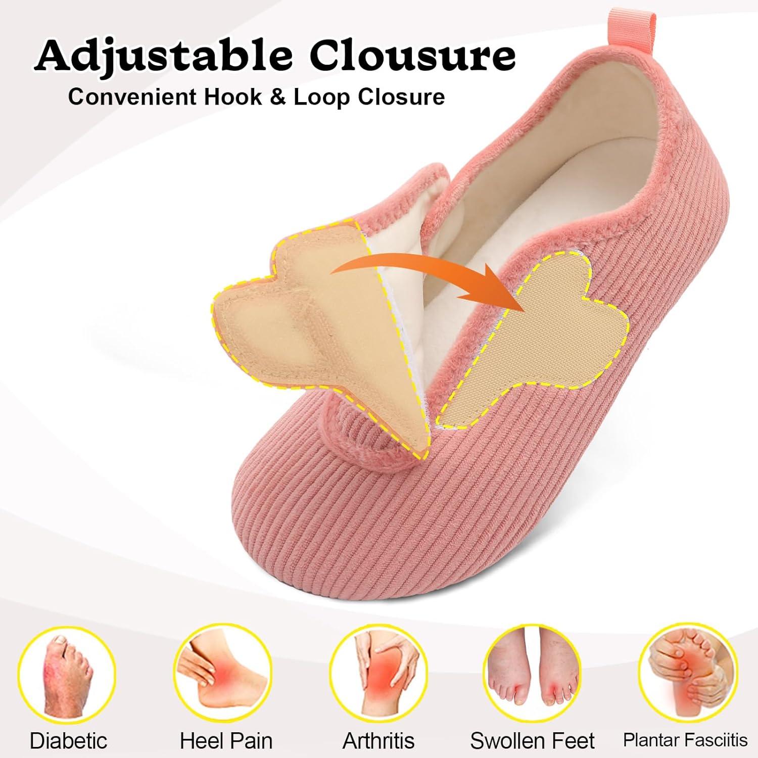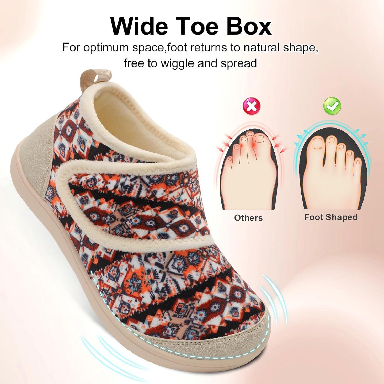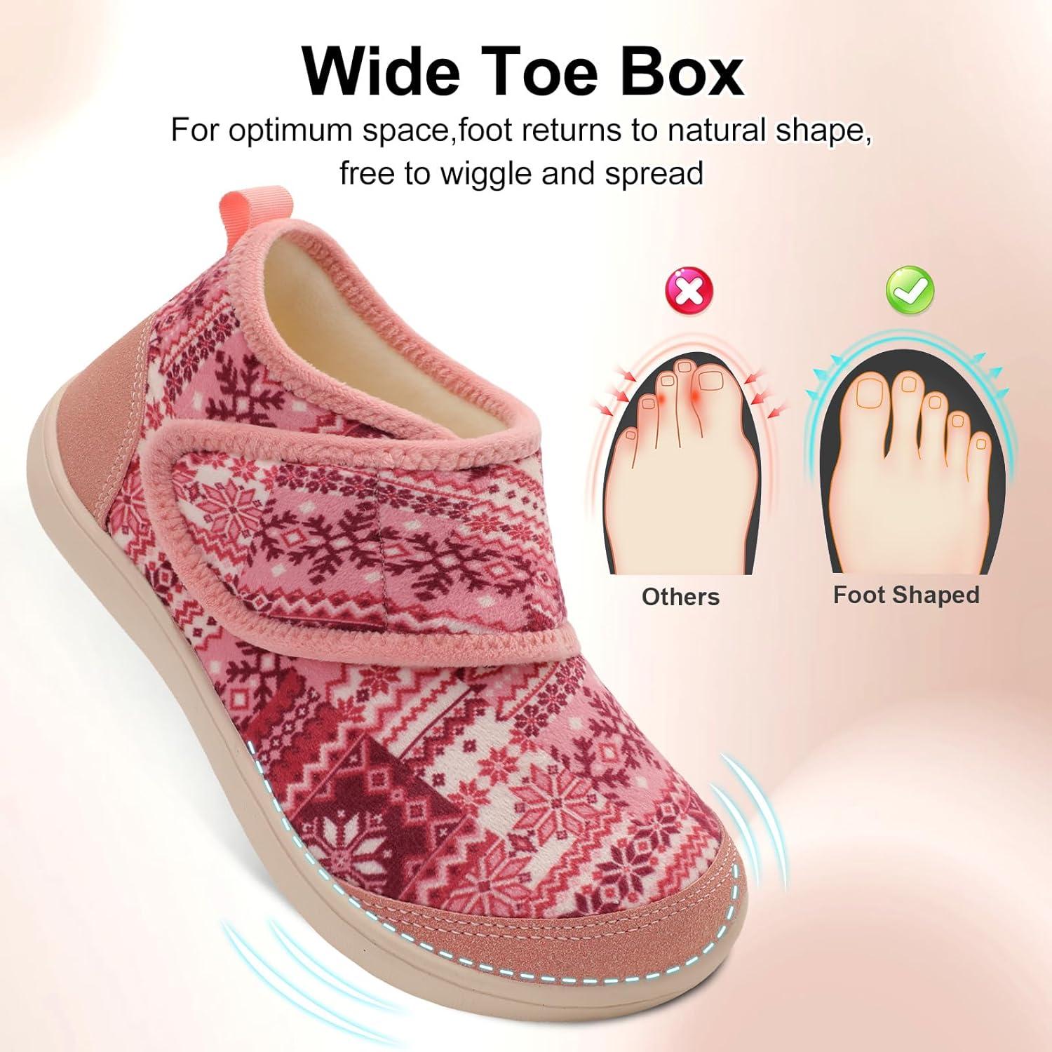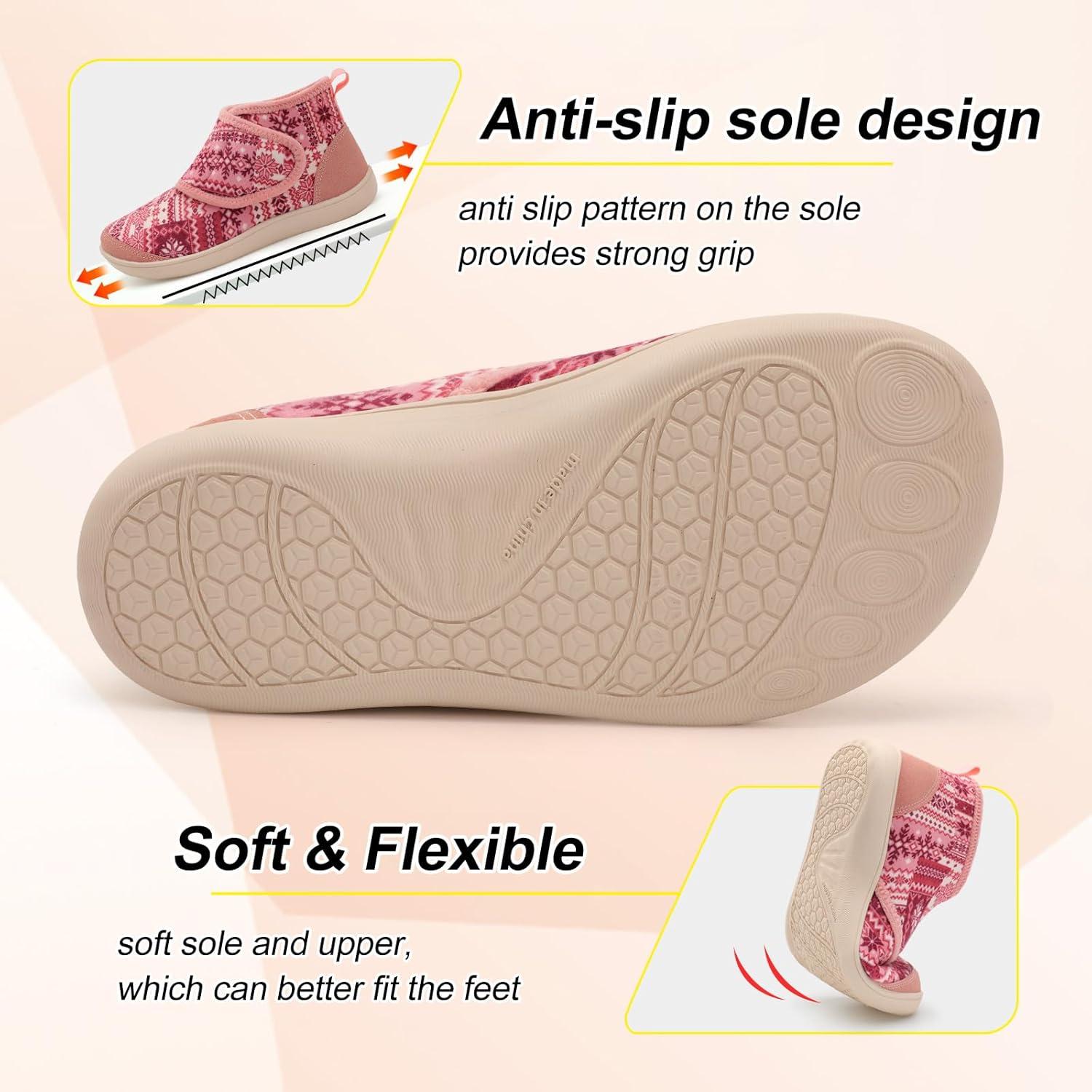 LeIsfIt Slipper Boots for Women Wide Warm House Shoes Non-slip Diabetic Winter Shoes Adjustable Bootie Slippers for Indoor & Outdoor(Pinkbohemian)