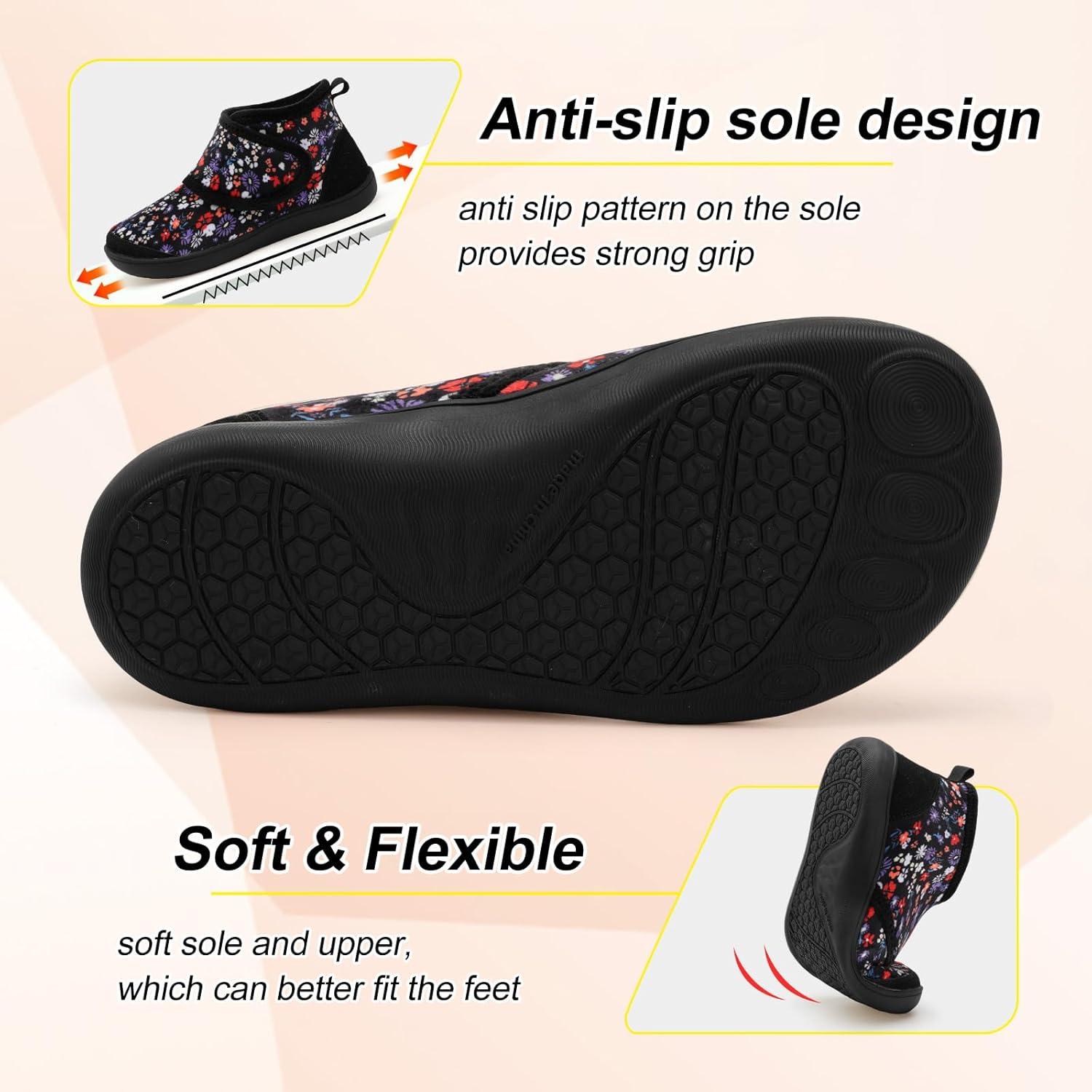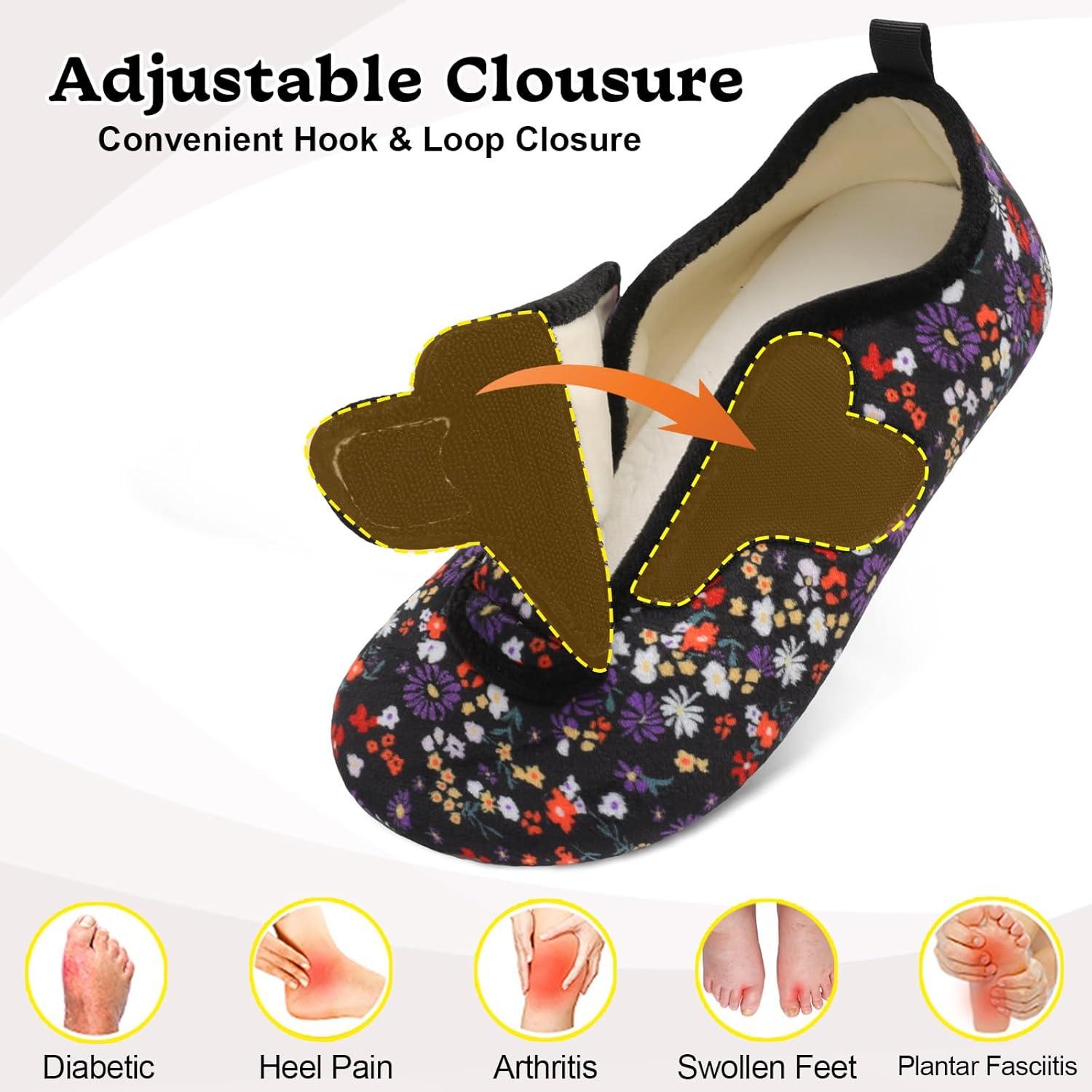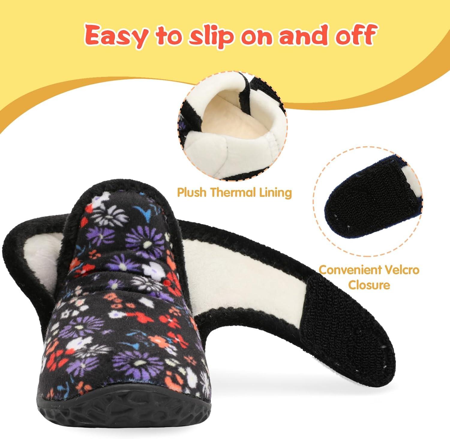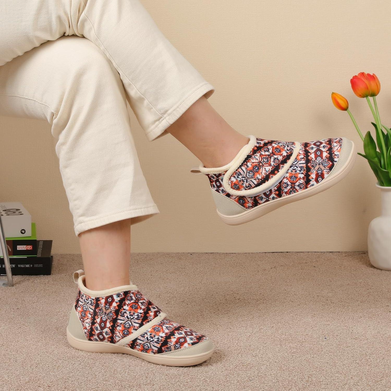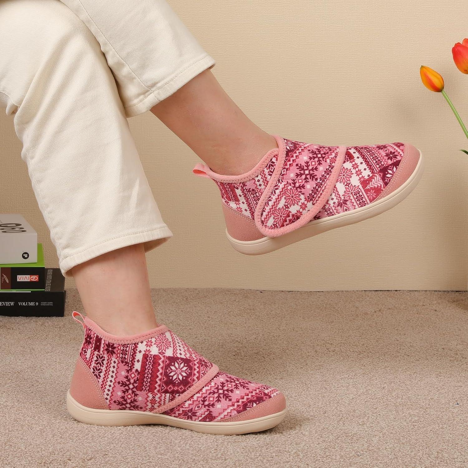 LeIsfIt Slipper Boots for Women Wide Warm House Shoes Non-slip Diabetic Winter Shoes Adjustable Bootie Slippers for Indoor & Outdoor(Redflower)
