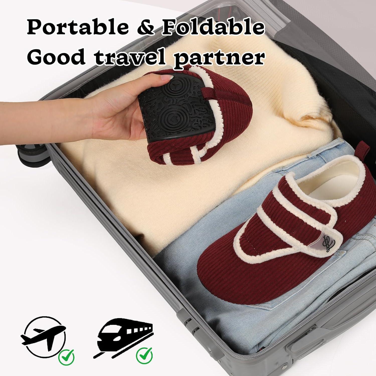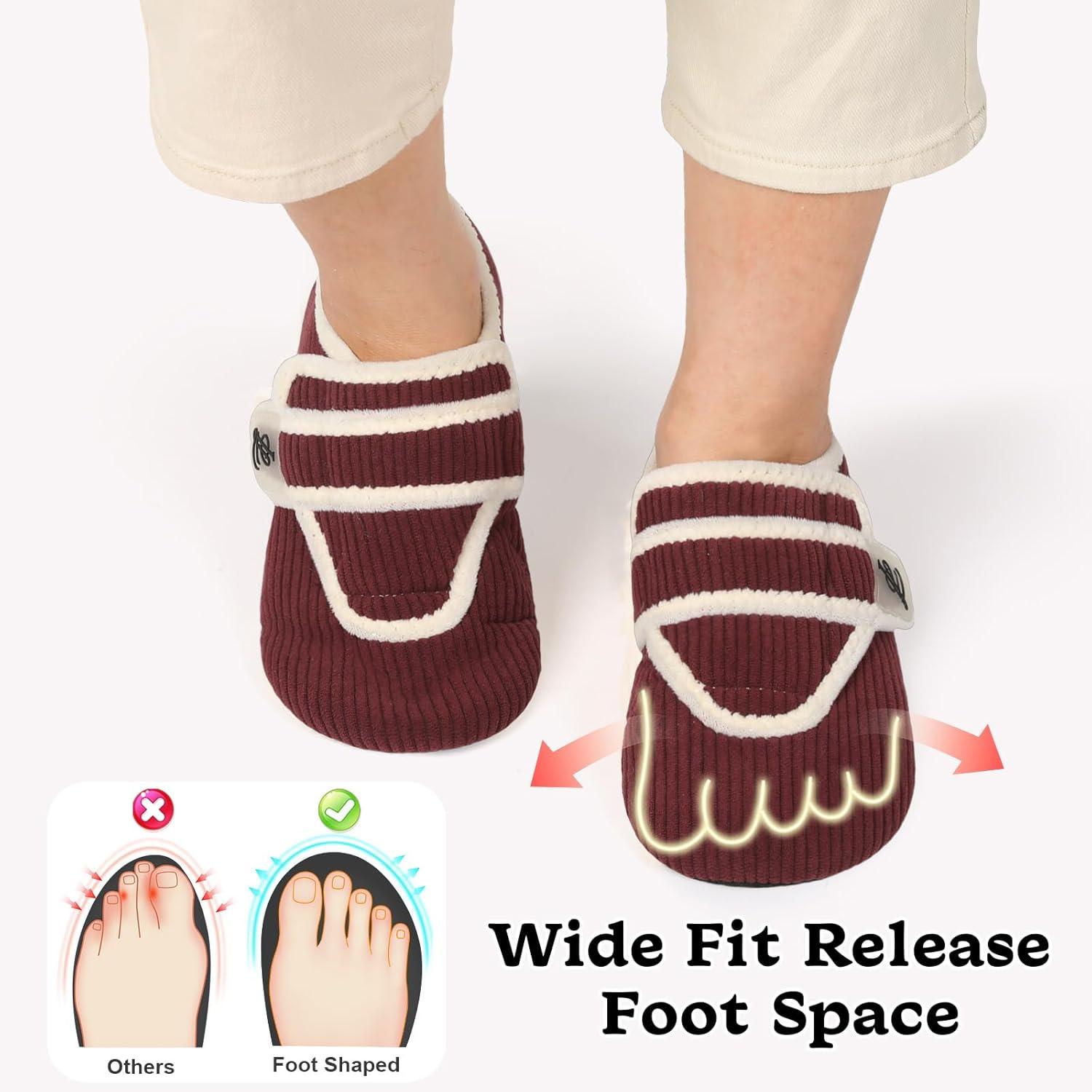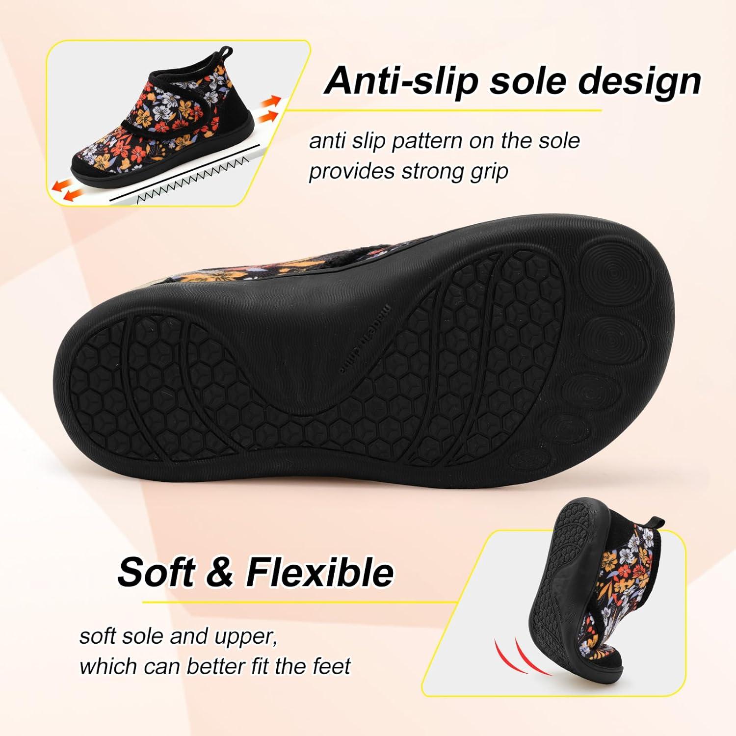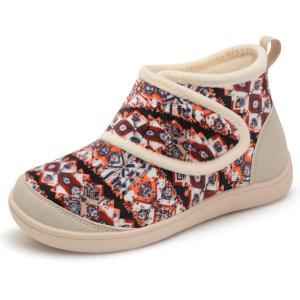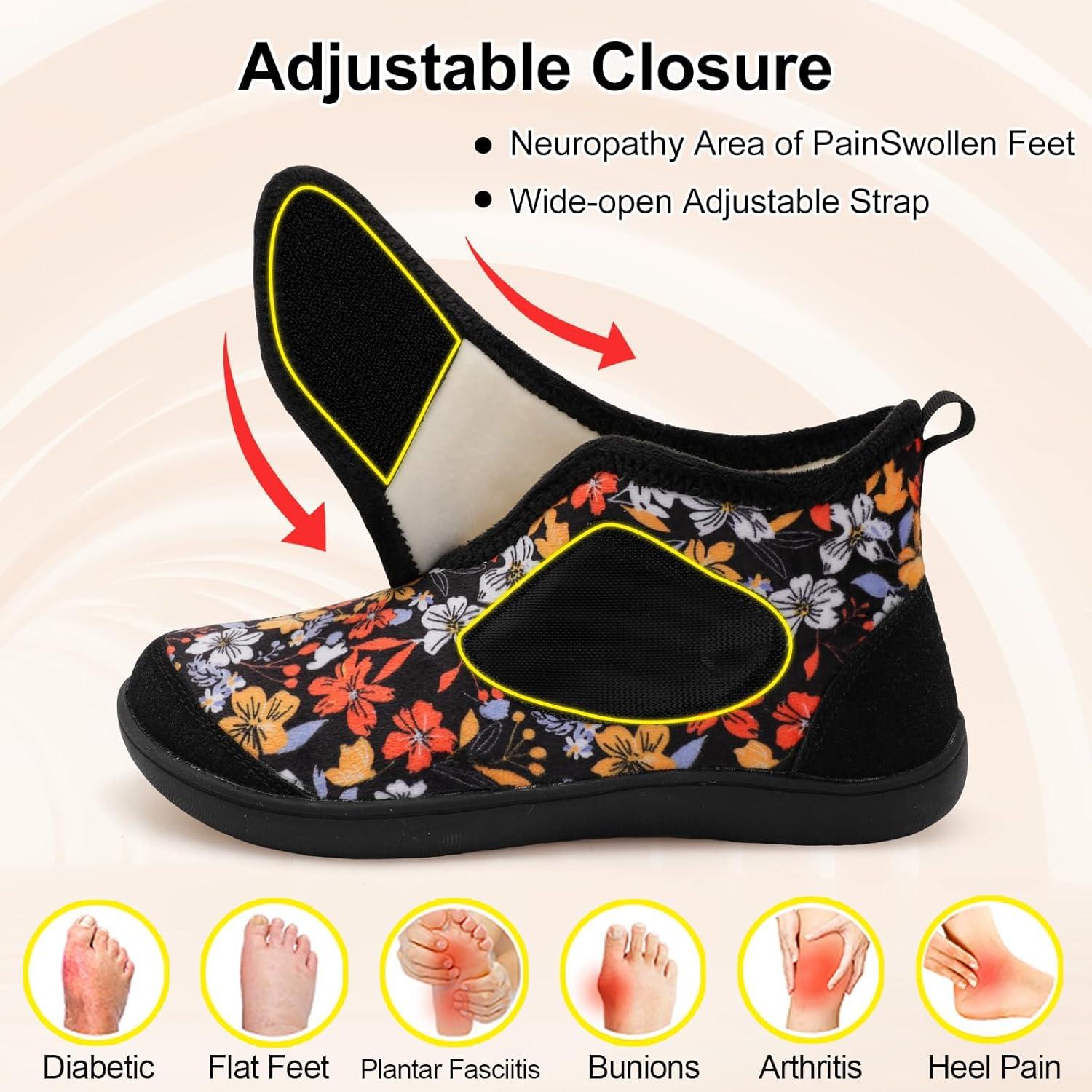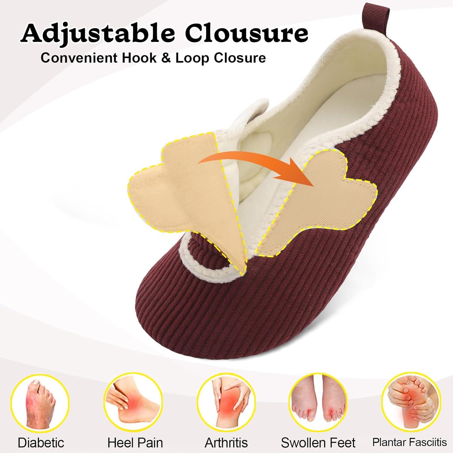 LeIsfIt Slipper Boots for Women Wide Warm House Shoes Non-slip Diabetic Winter Shoes Adjustable Bootie Slippers for Indoor & Outdoor(Redflower)