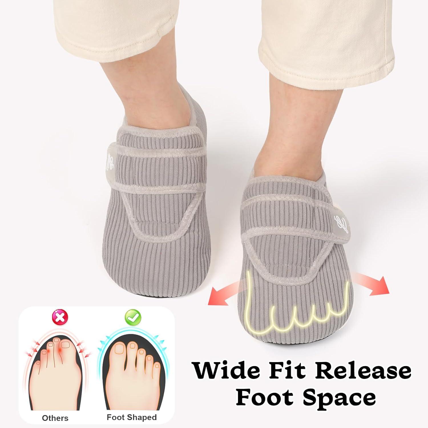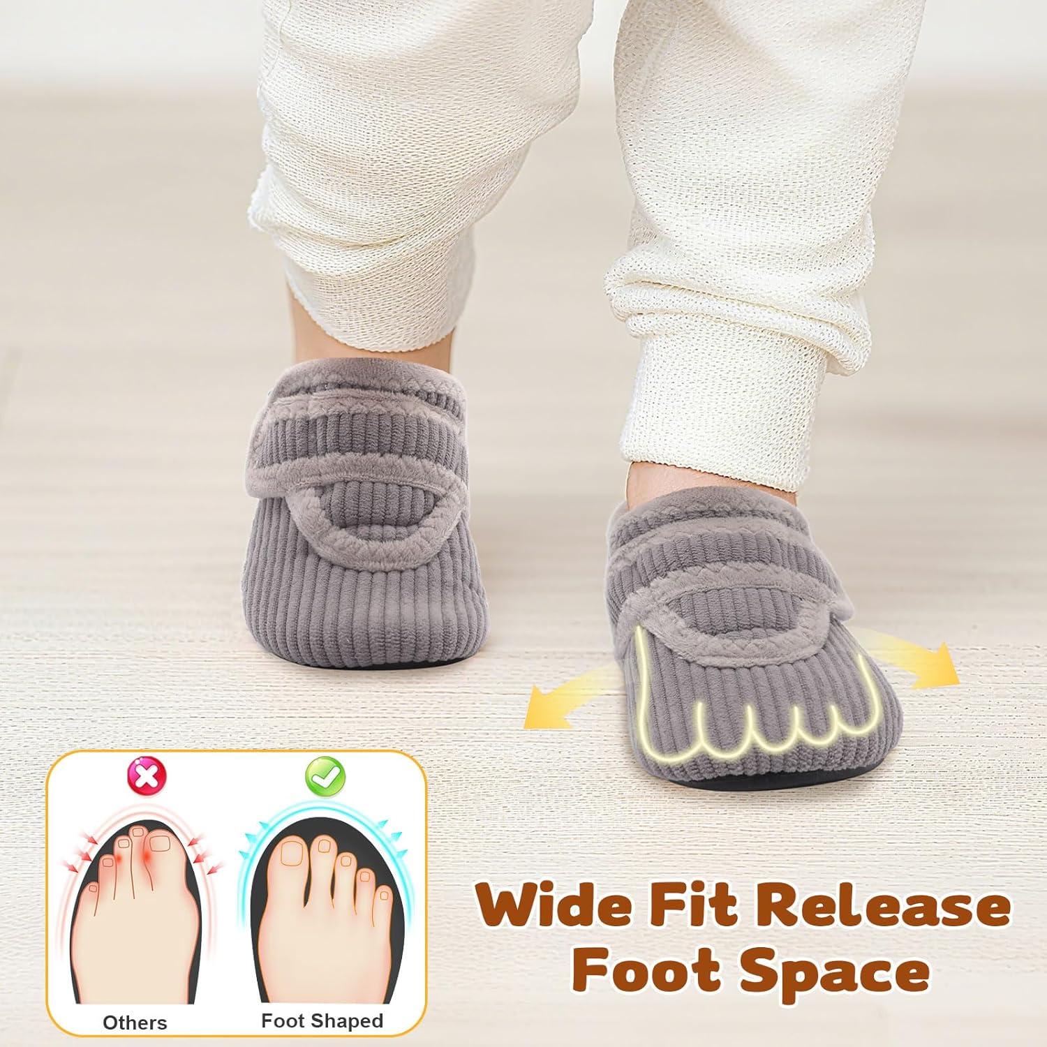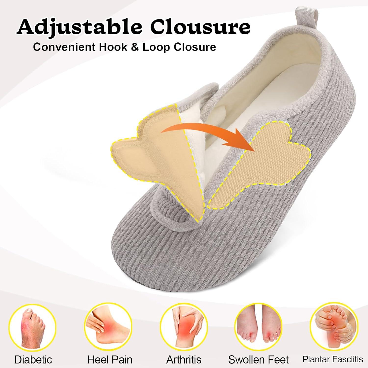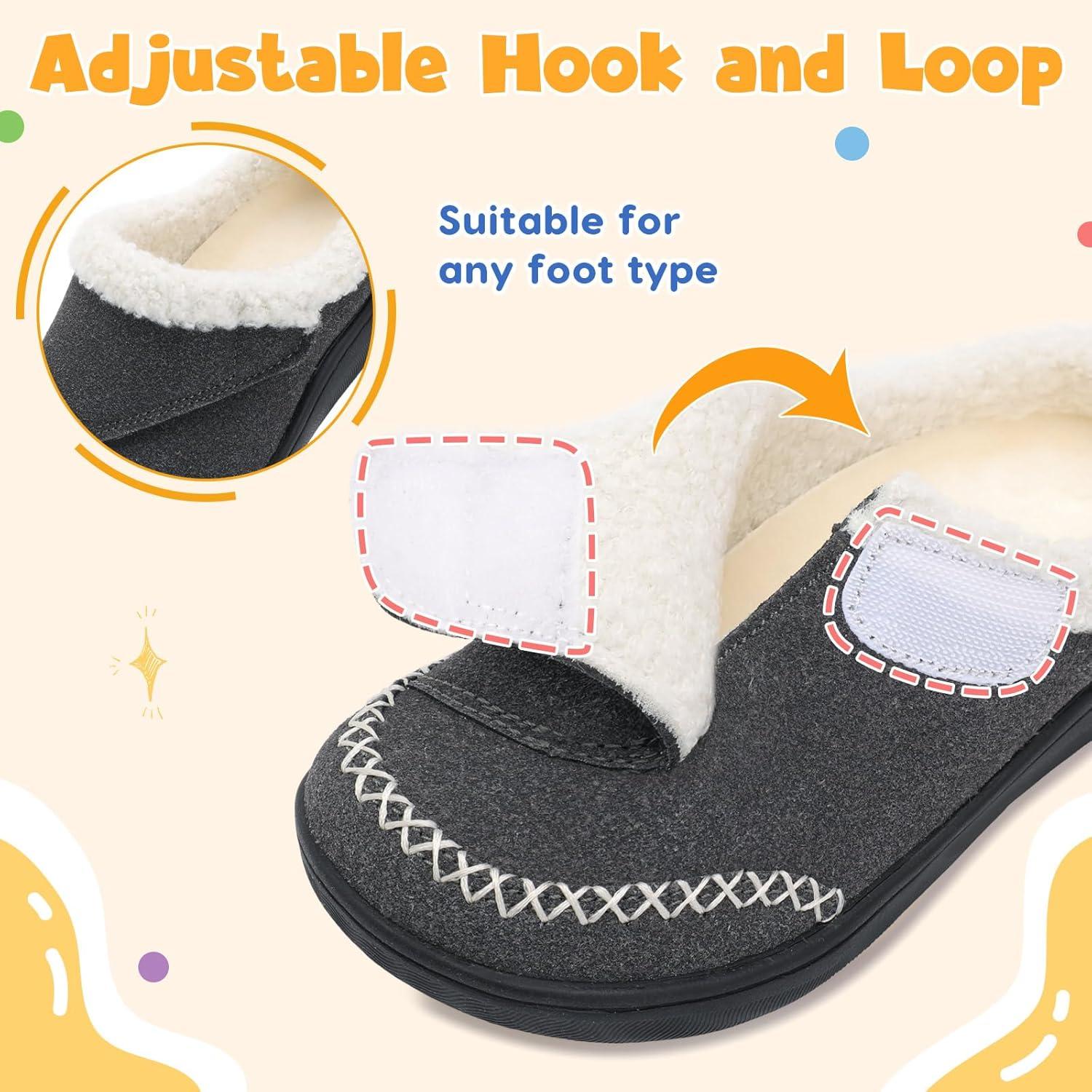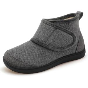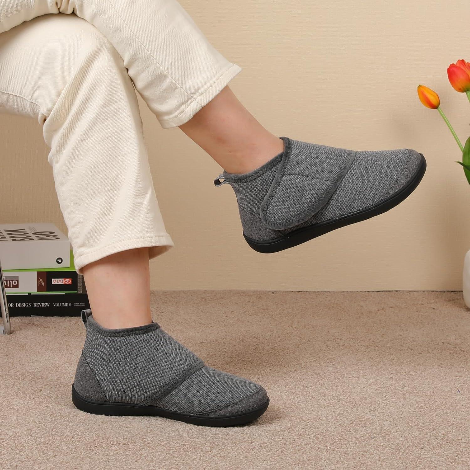 LeIsfIt Slipper Boots for Women Wide Warm House Shoes Non-slip Diabetic Winter Shoes Adjustable Bootie Slippers for Indoor & Outdoor(Grey)