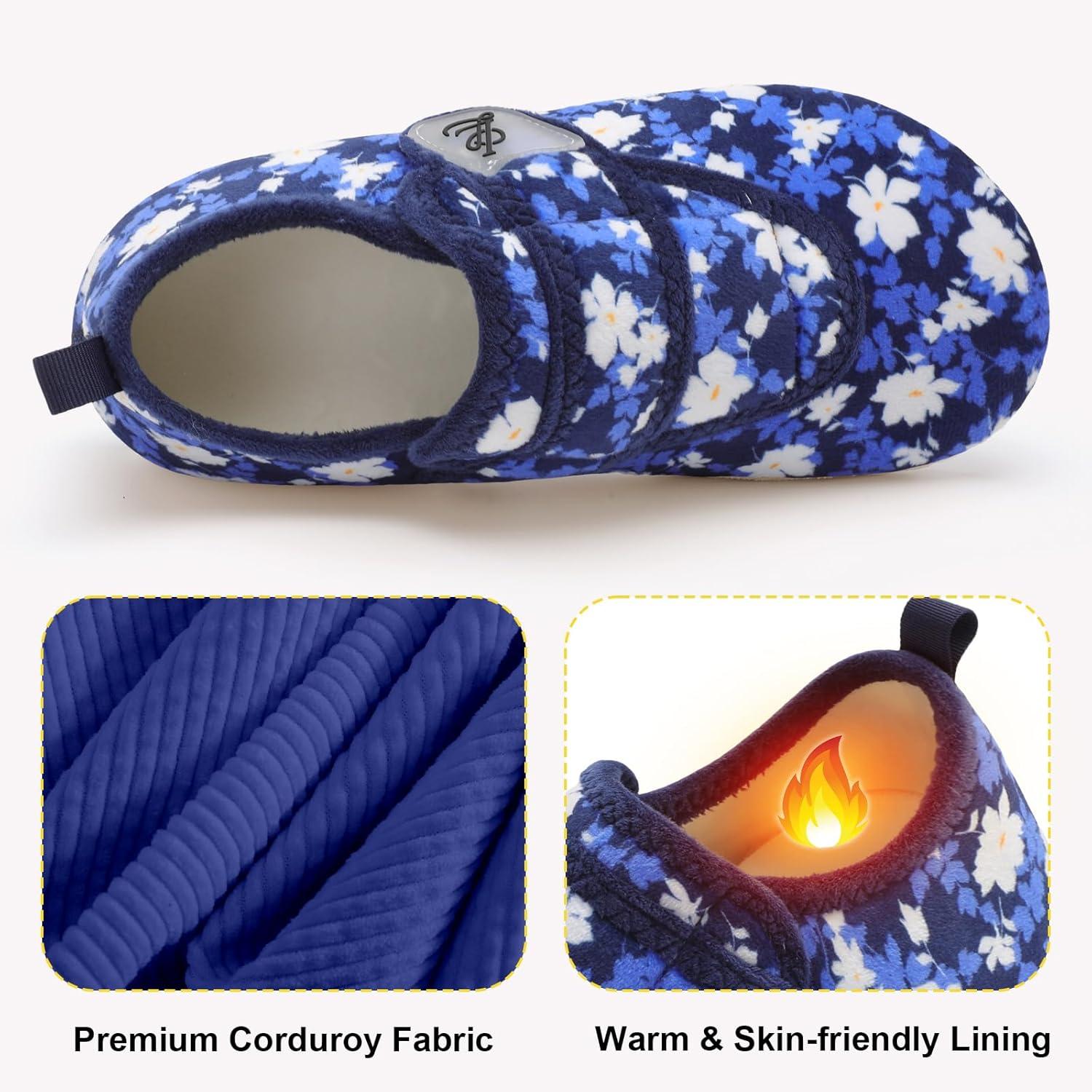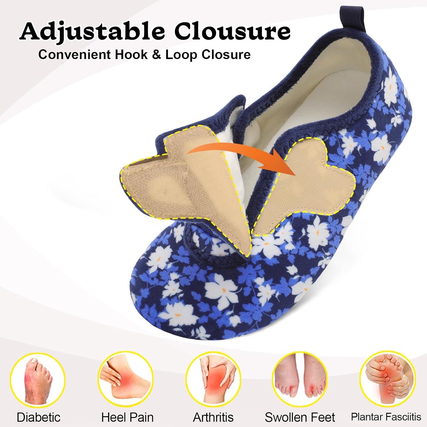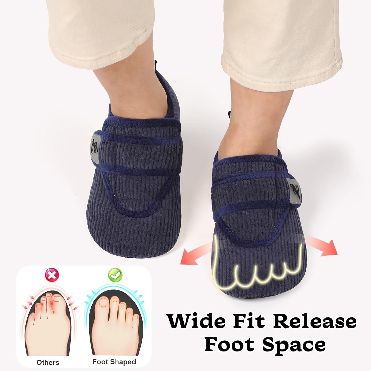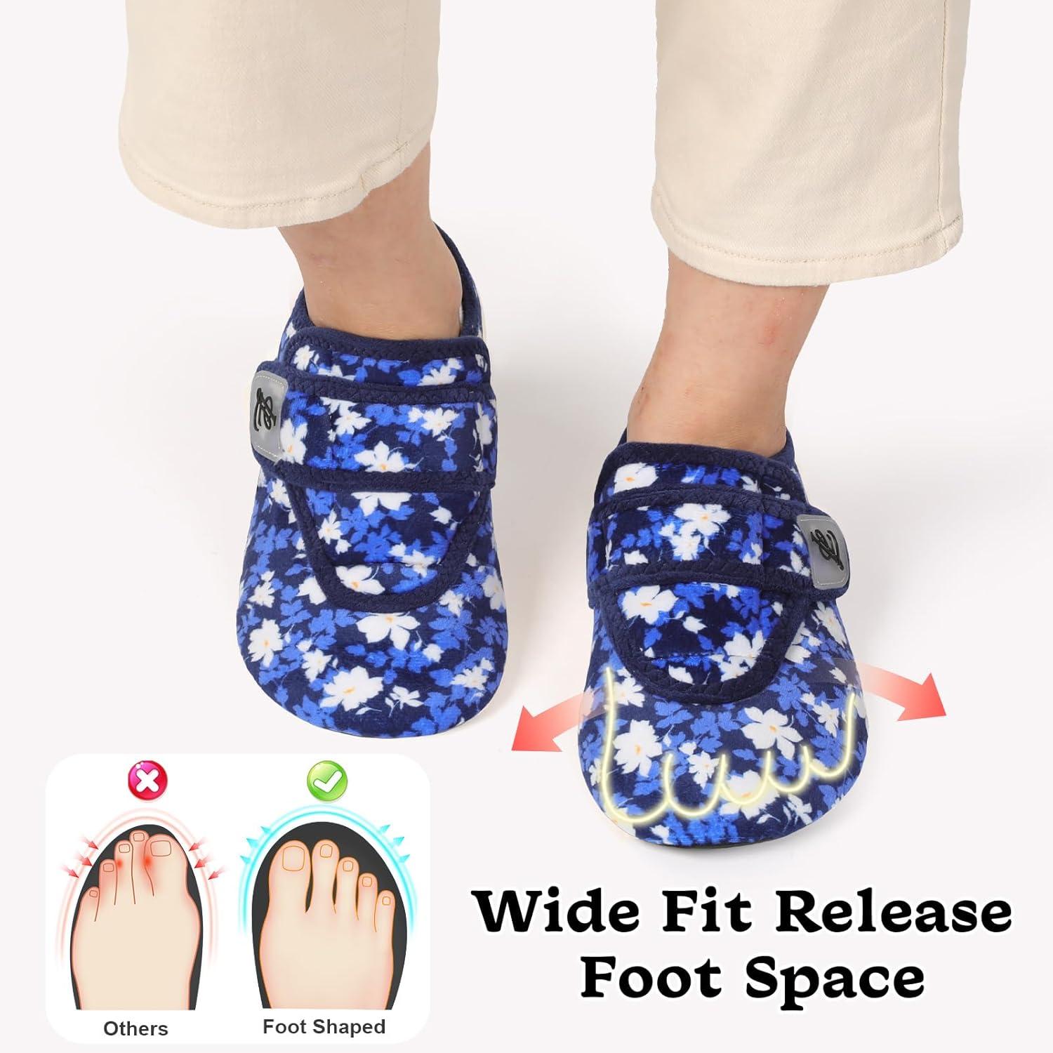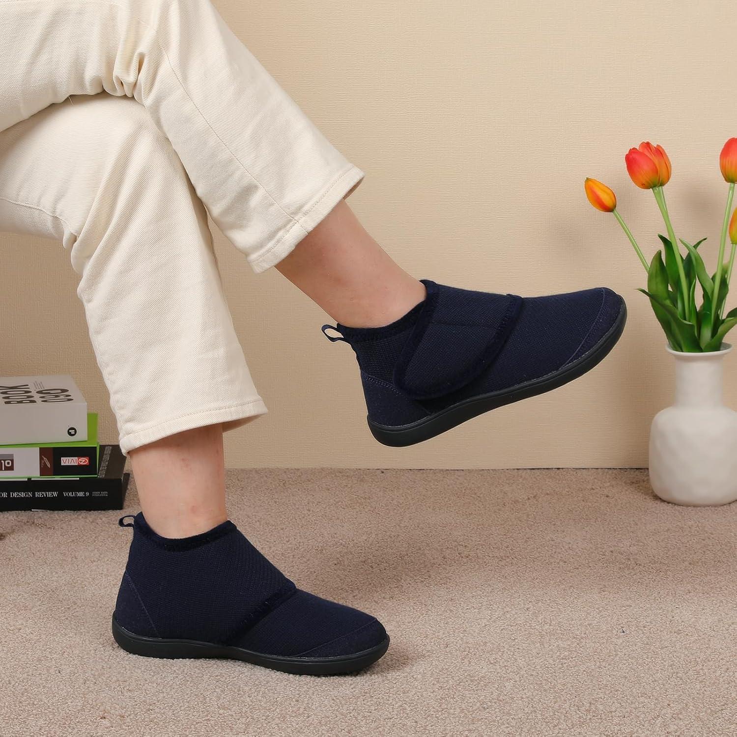 LeIsfIt Slippers for Women Extra Wide House Slippers Elderly Slip on House Shoes Non-Slip Indoor Outdoor Slipper Adjustable for Diabetic Swollen Feet(Navy)