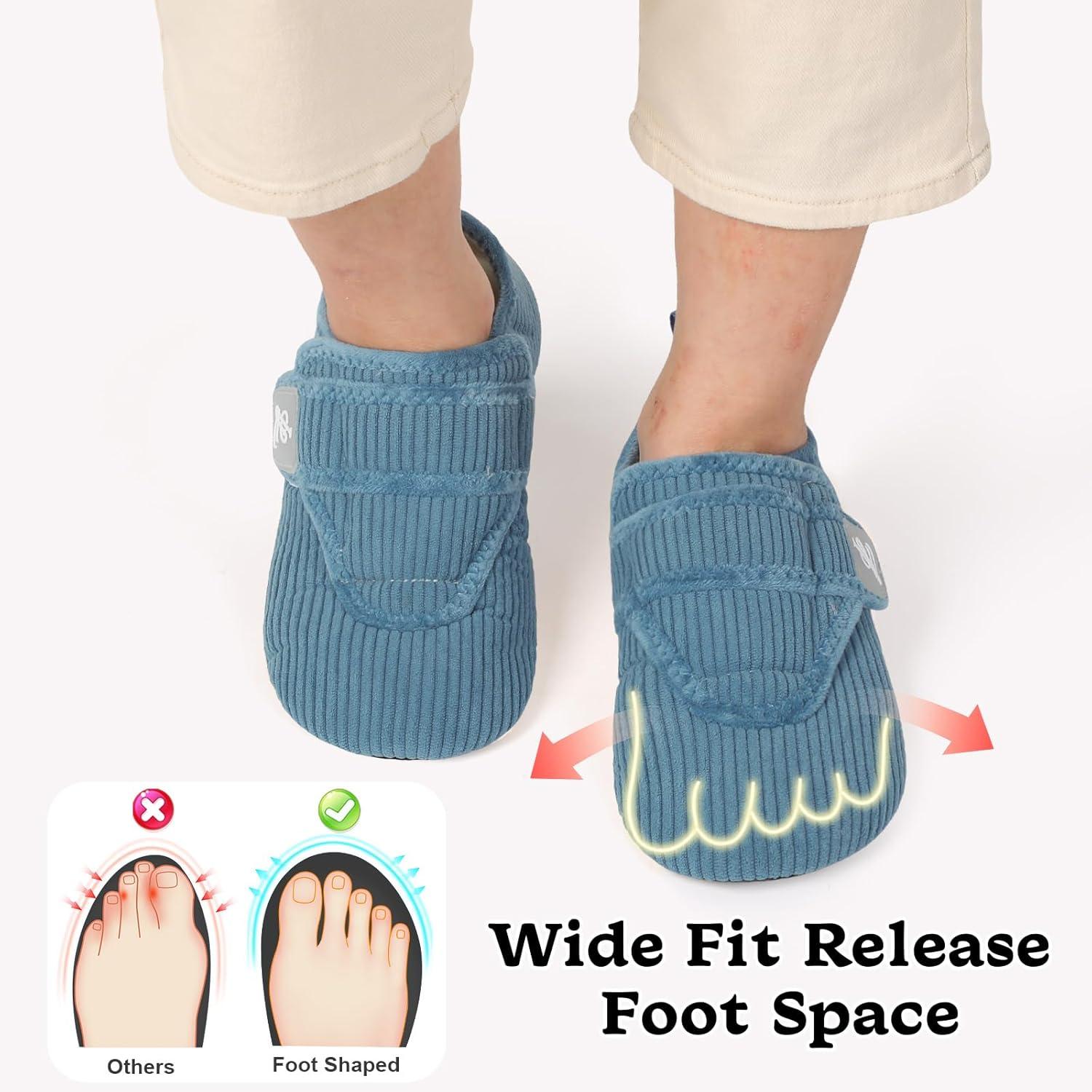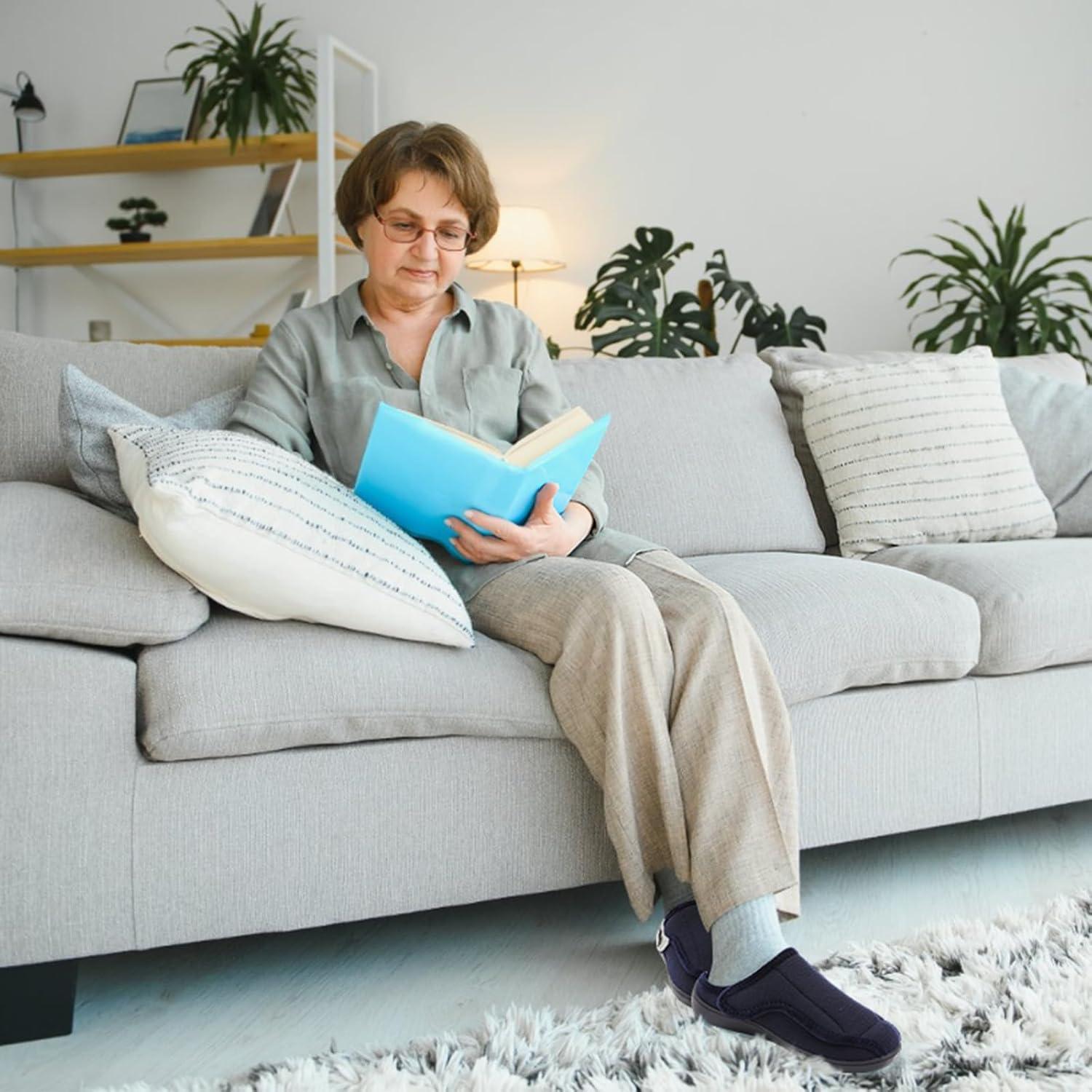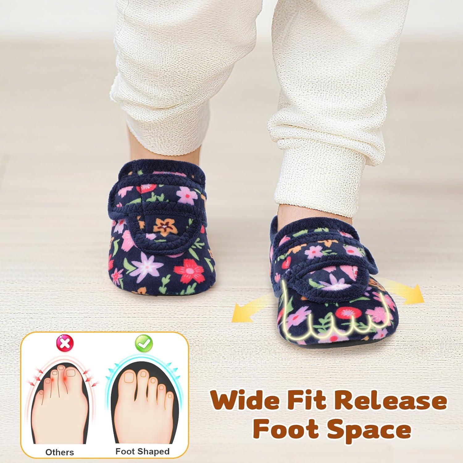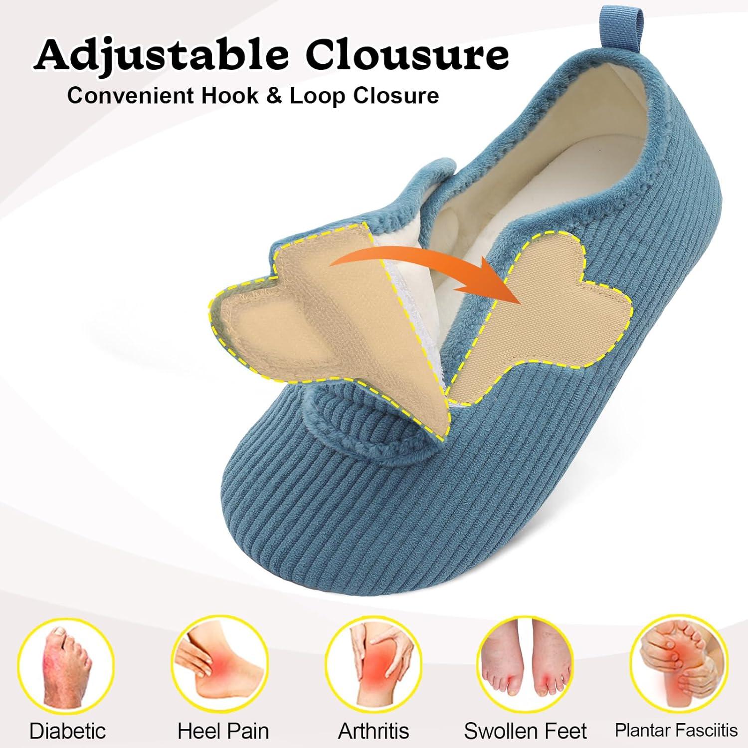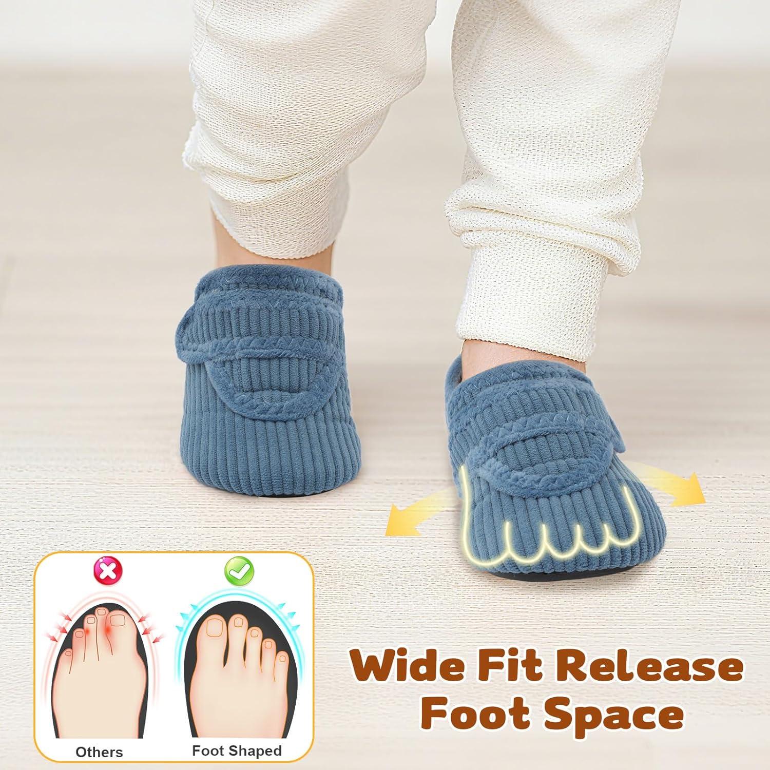 LeIsfIt Slippers for Women Extra Wide House Slippers Elderly Slip on House Shoes Non-Slip Indoor Outdoor Slipper Adjustable for Diabetic Swollen Feet(Navy)