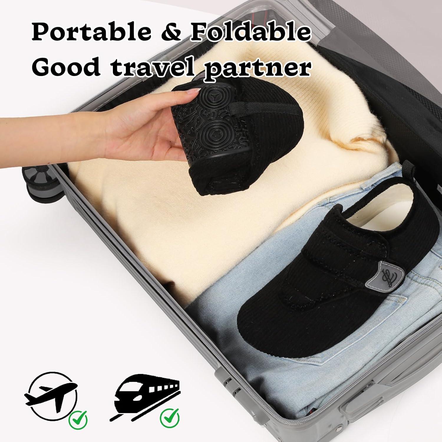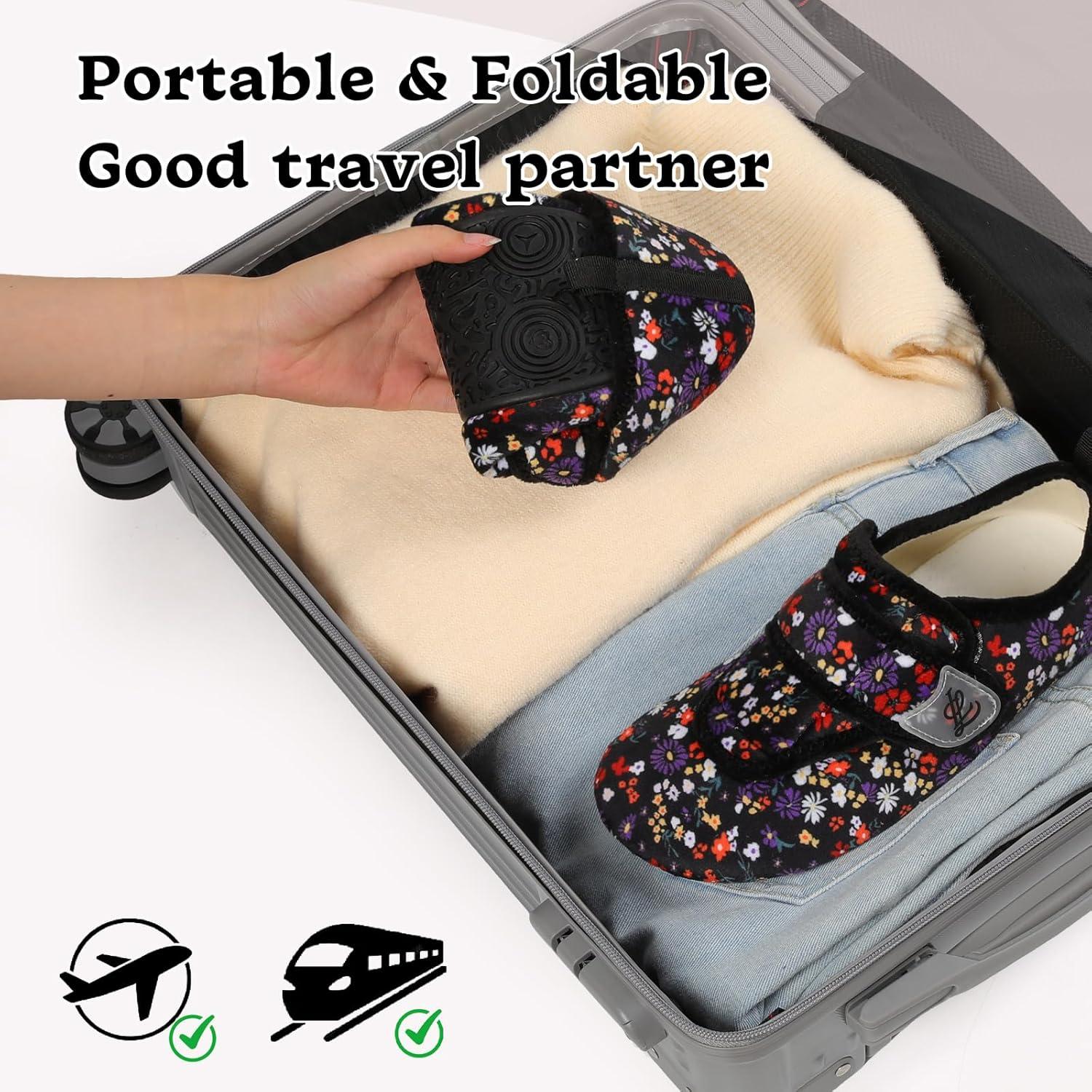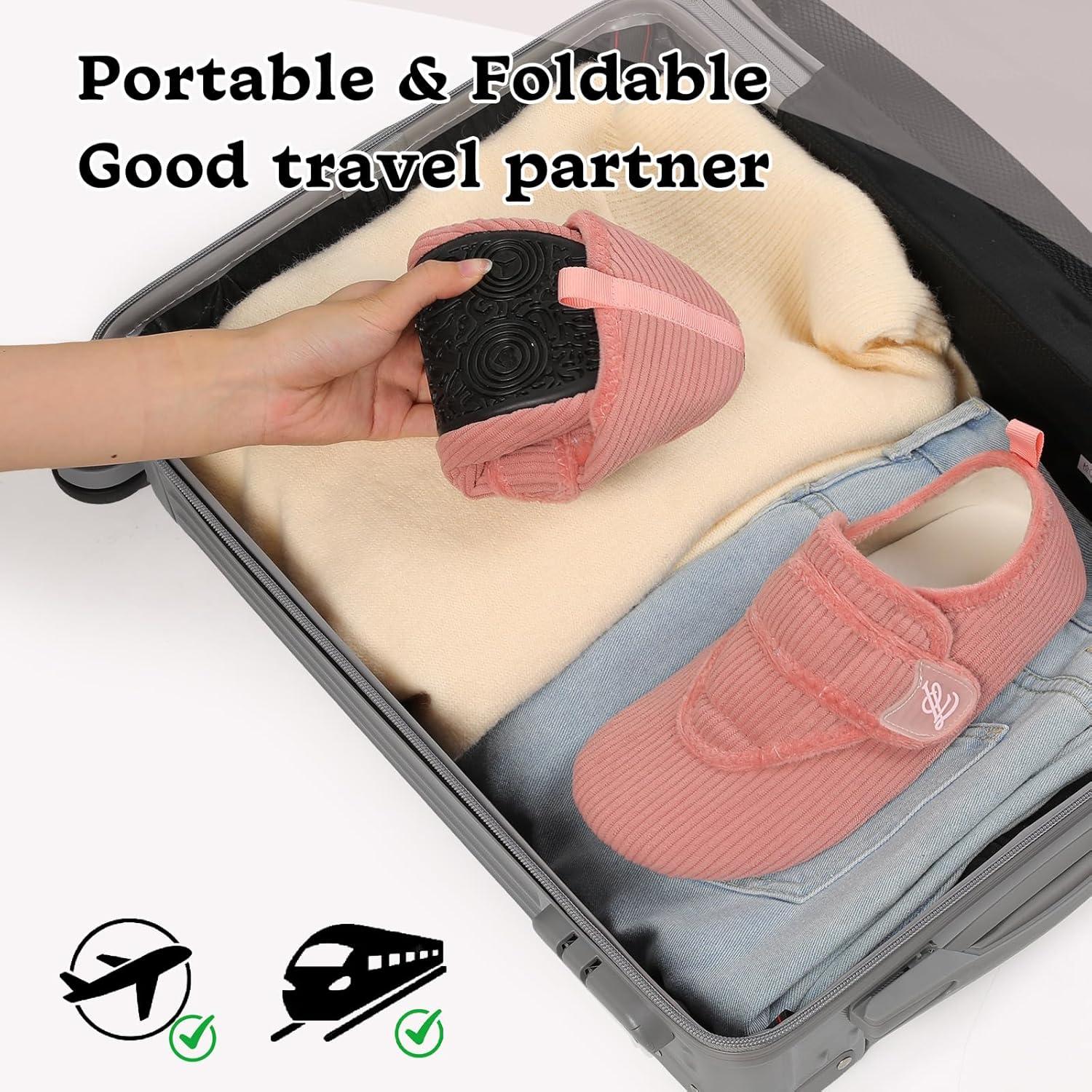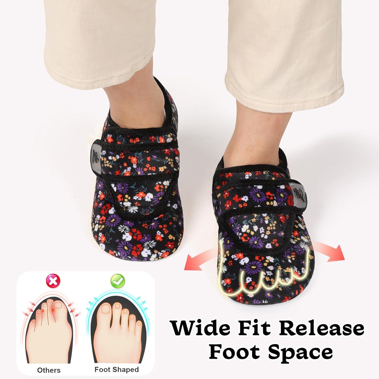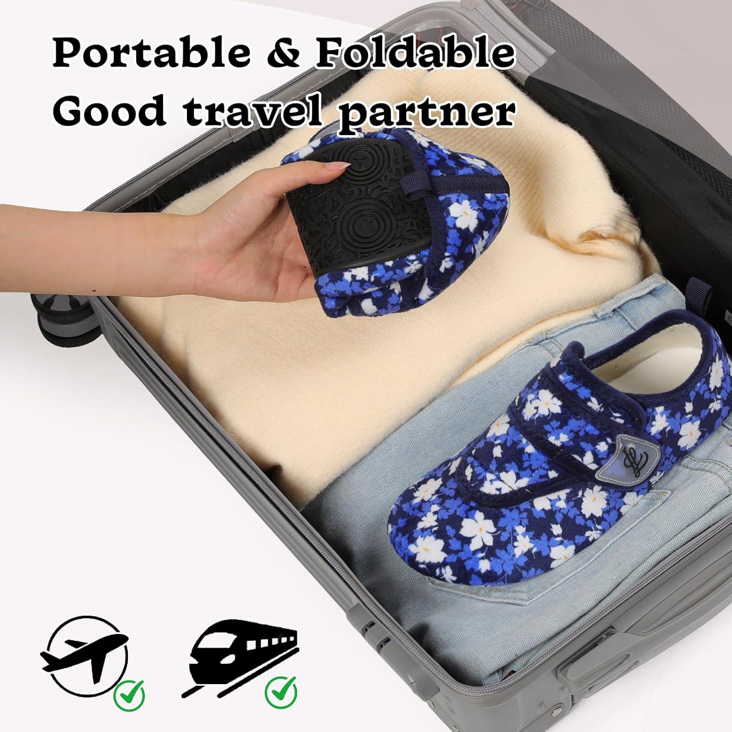 LeIsfIt Slippers for Women Extra Wide House Slippers Elderly Slip on House Shoes Non-Slip Indoor Outdoor Slipper Adjustable for Diabetic Swollen Feet(Navy)