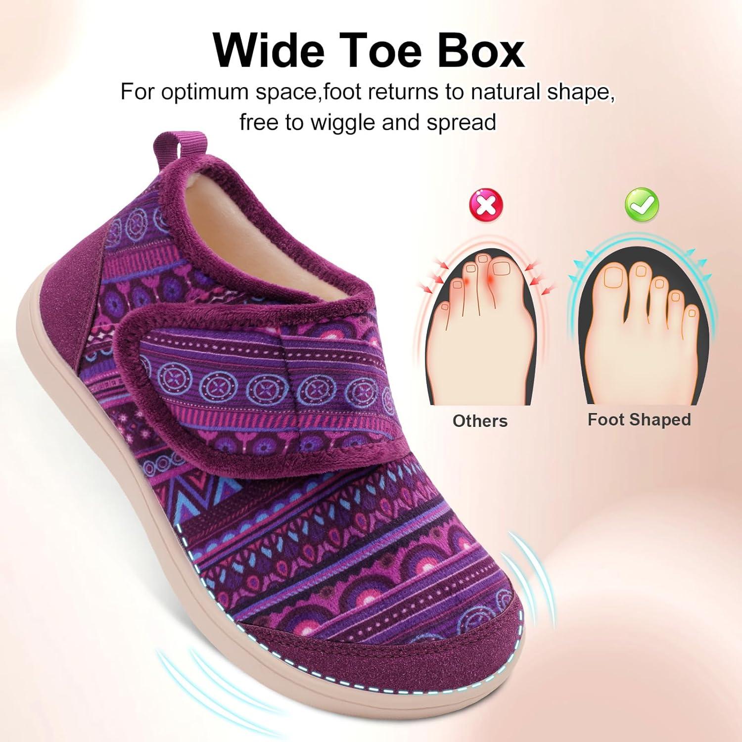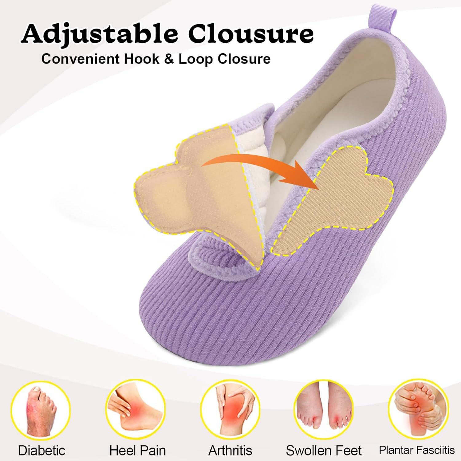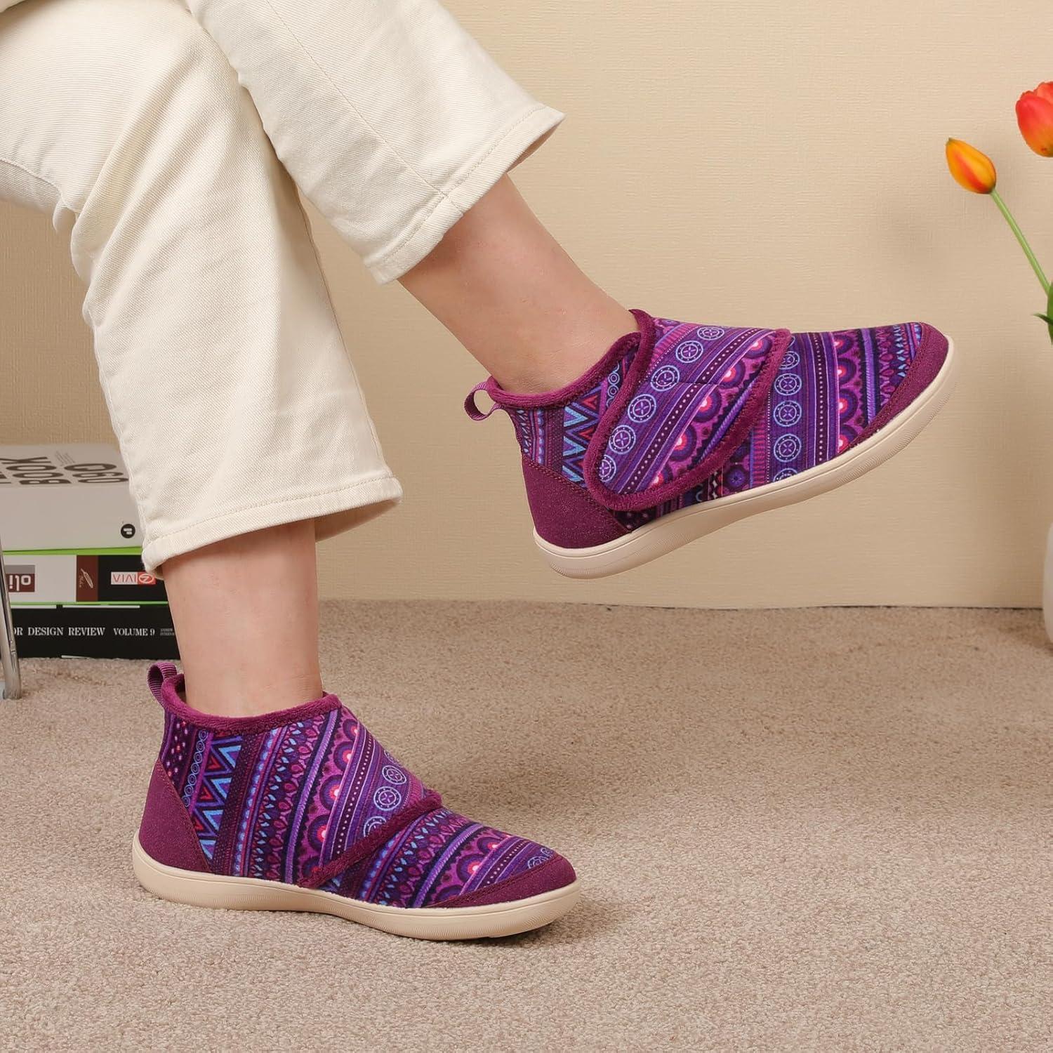 LeIsfIt Slipper Boots for Women Wide Warm House Shoes Non-slip Diabetic Winter Shoes Adjustable Bootie Slippers for Indoor & Outdoor(Purple)