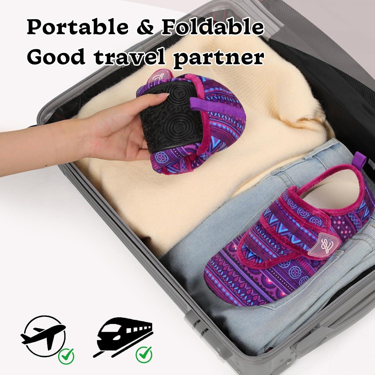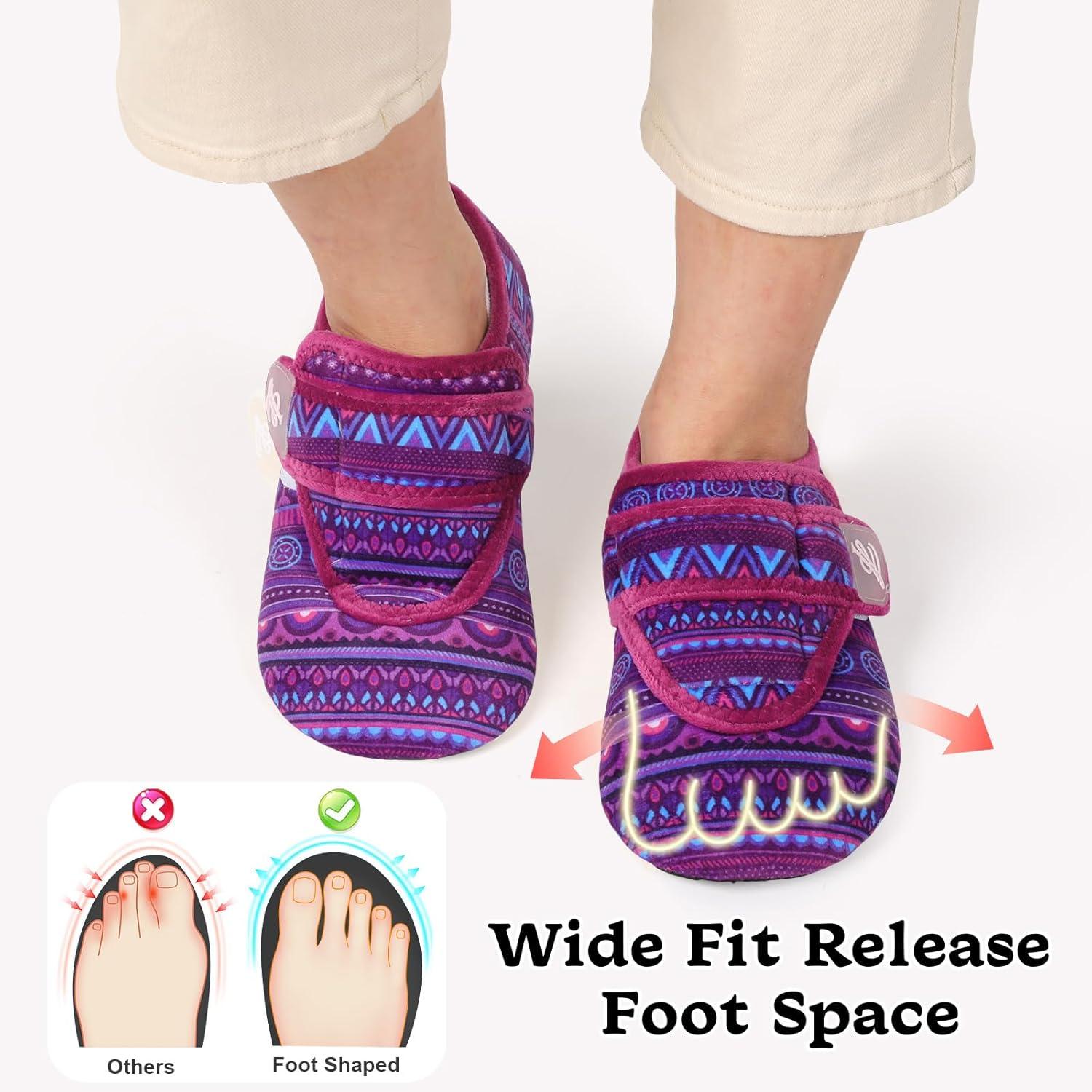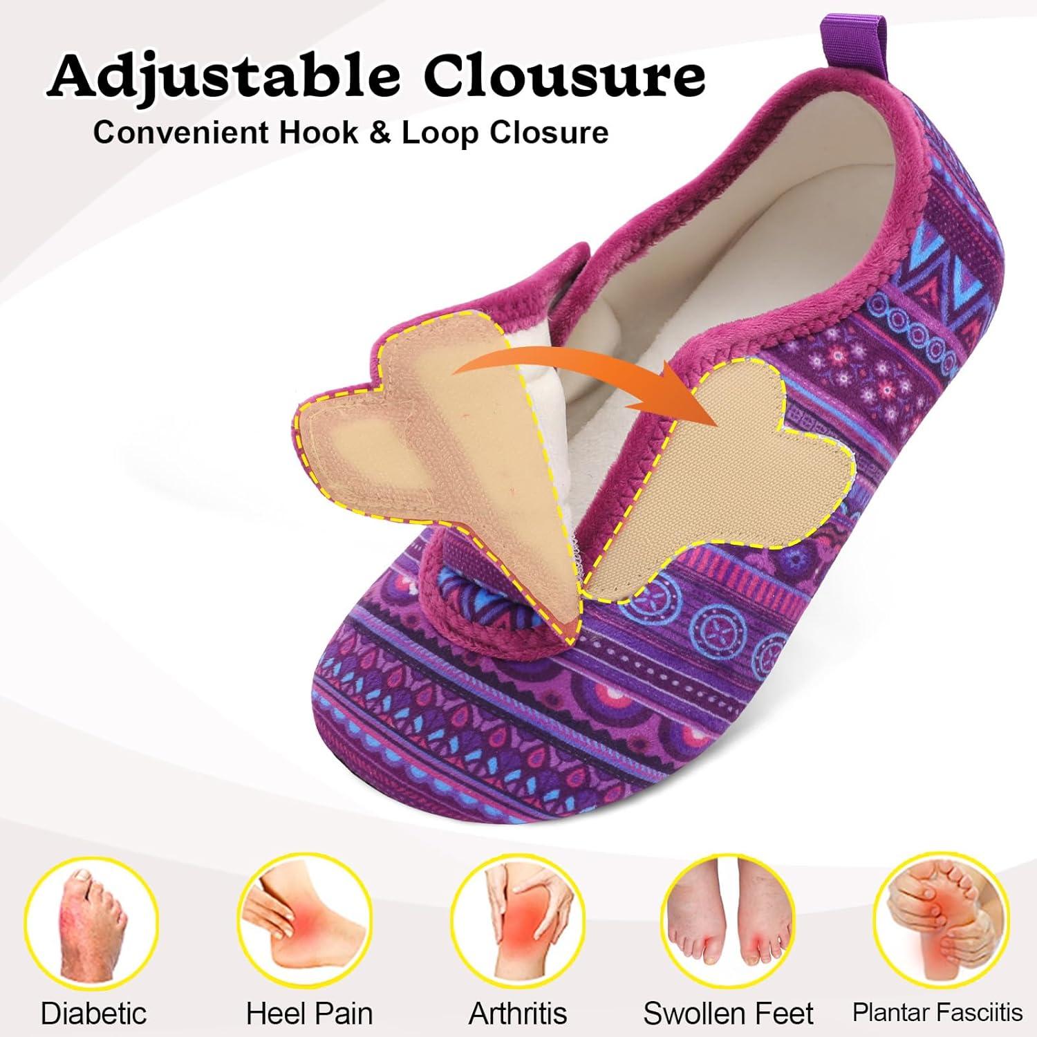 LeIsfIt Slipper Boots for Women Wide Warm House Shoes Non-slip Diabetic Winter Shoes Adjustable Bootie Slippers for Indoor & Outdoor(Purple)