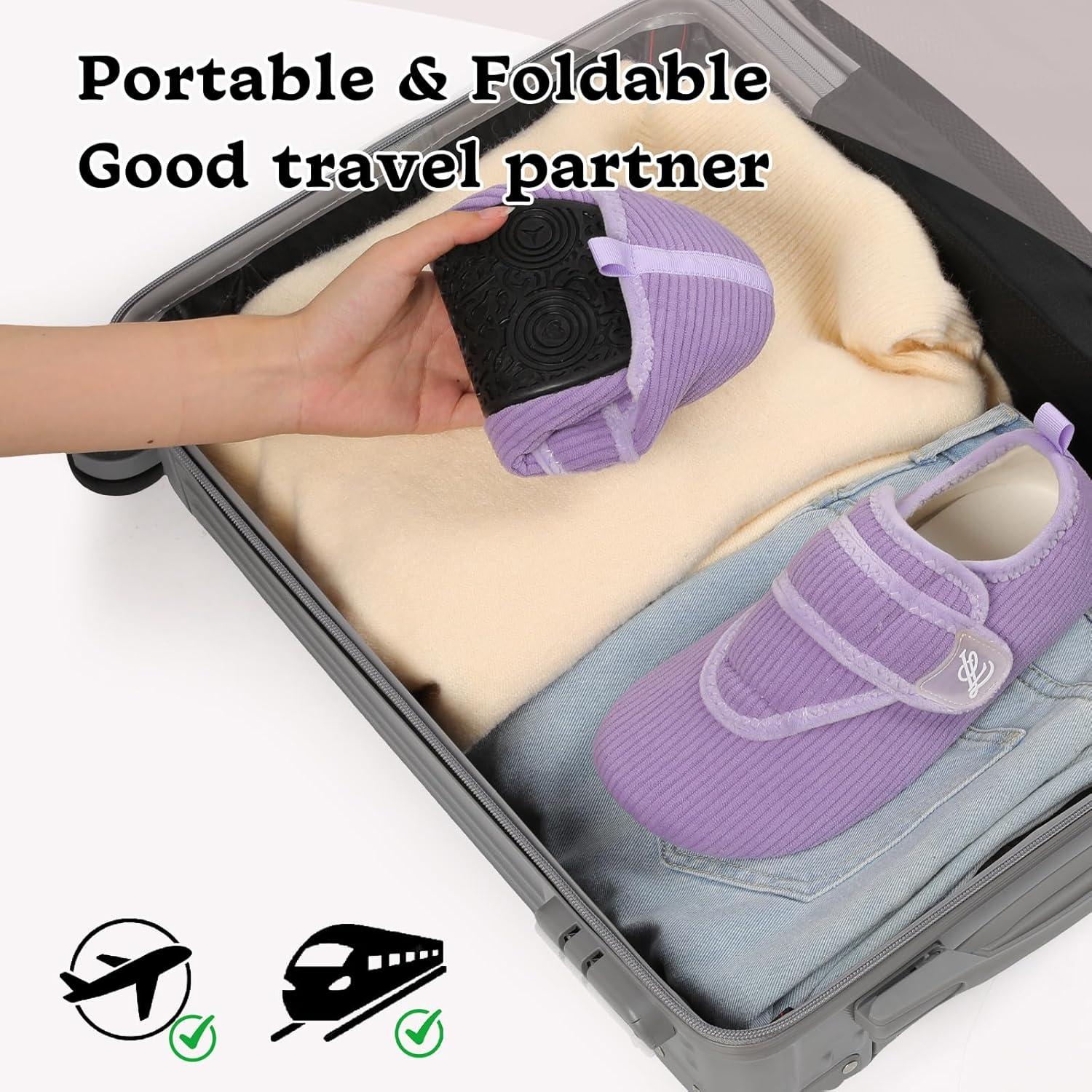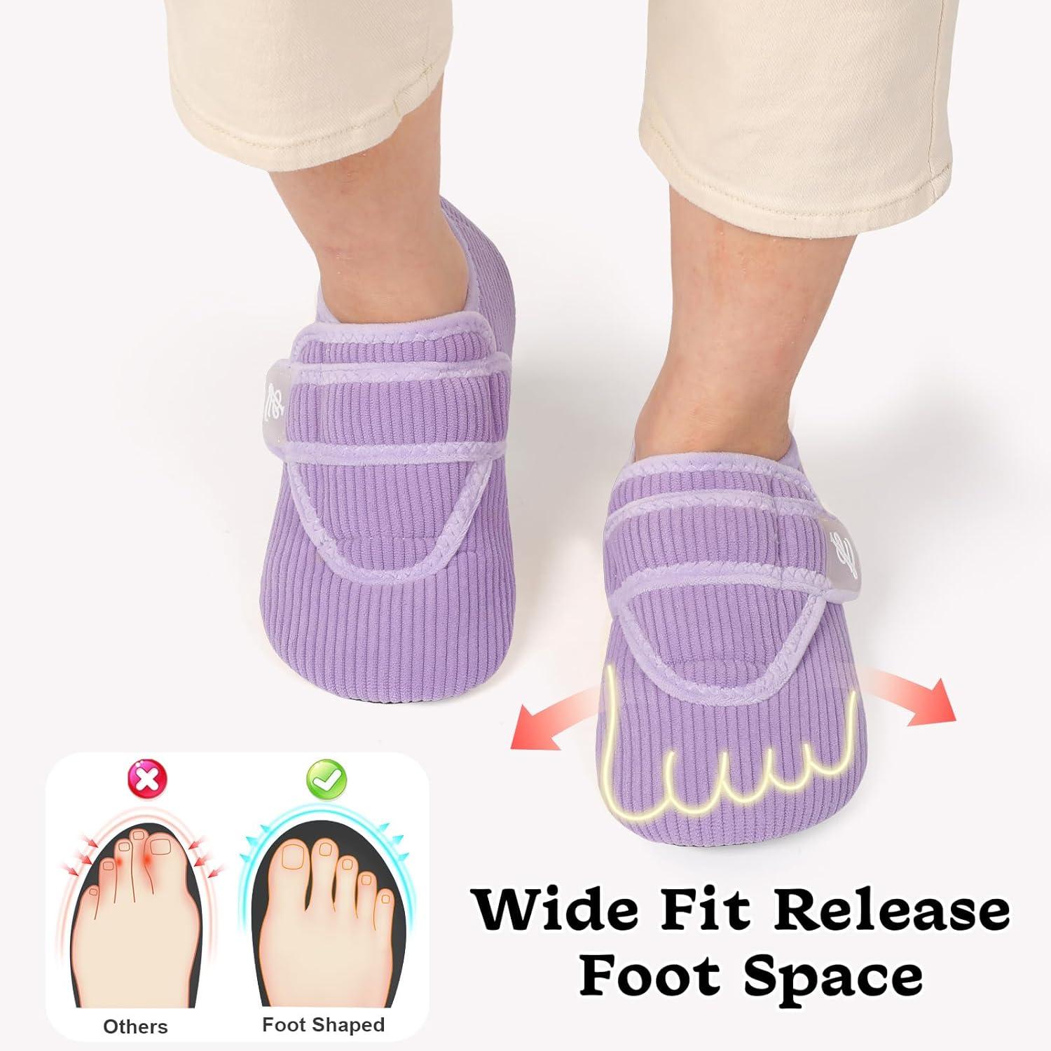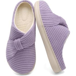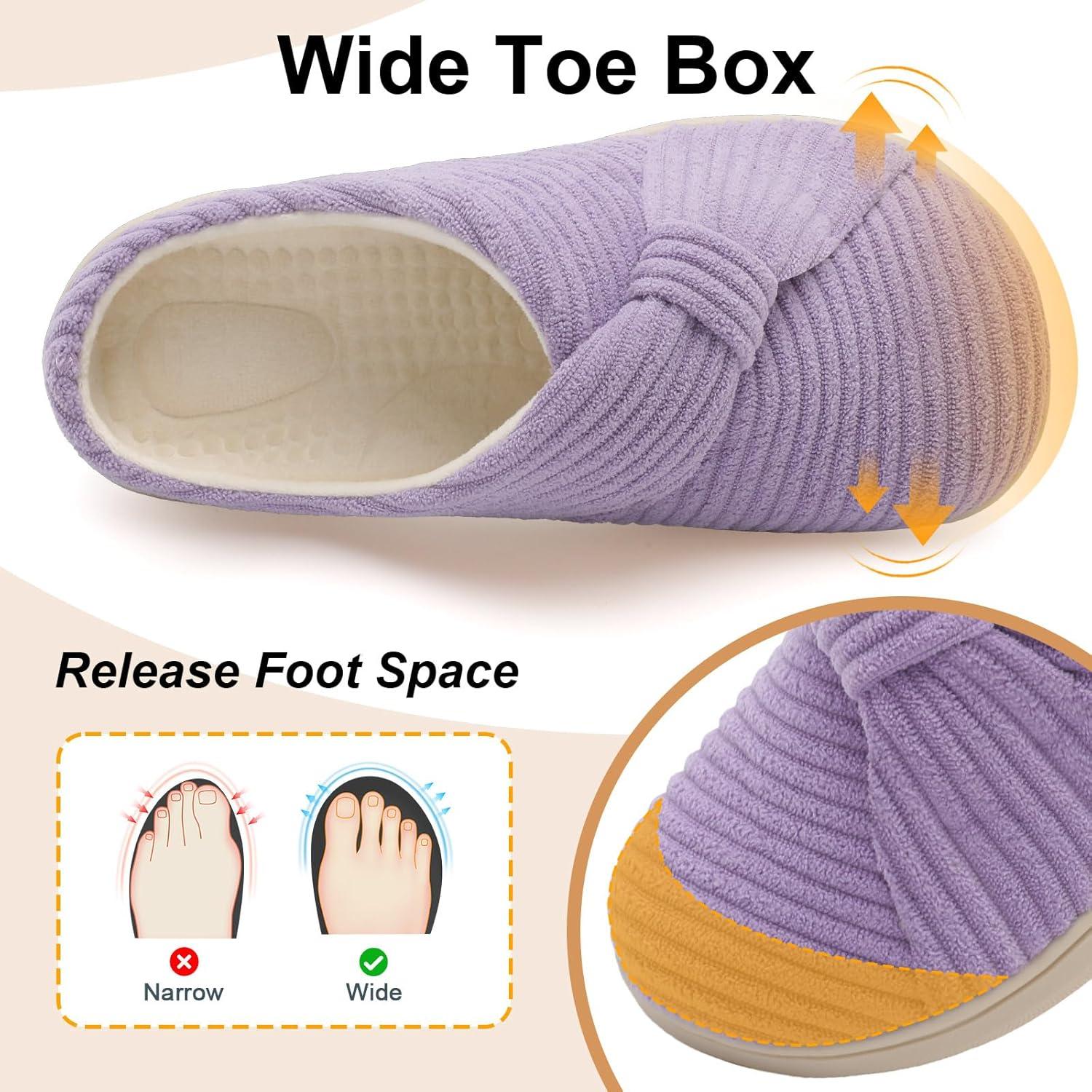 LeIsfIt Slippers for Women Wide Memory Foam House Slippers Corduroy Slip on Bedroom Slipper Non-slip Warm House Shoes Indoor and Outdoor(Purple)