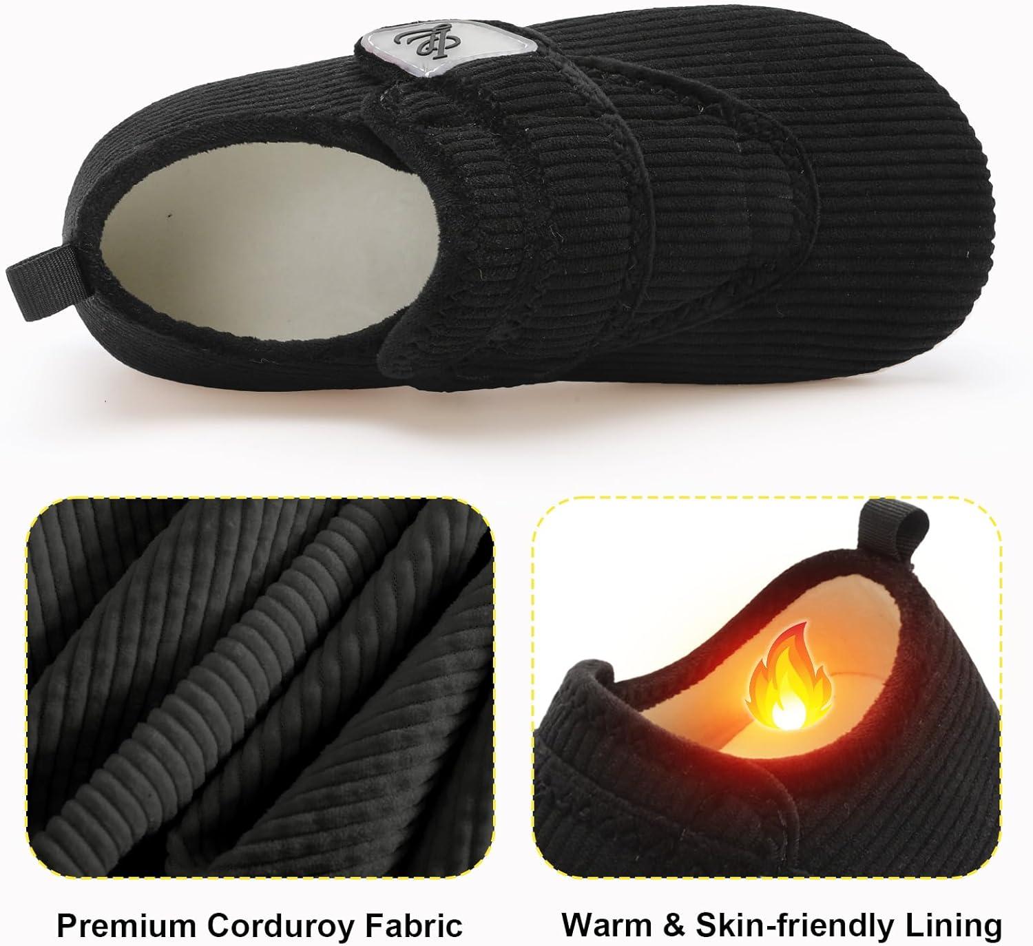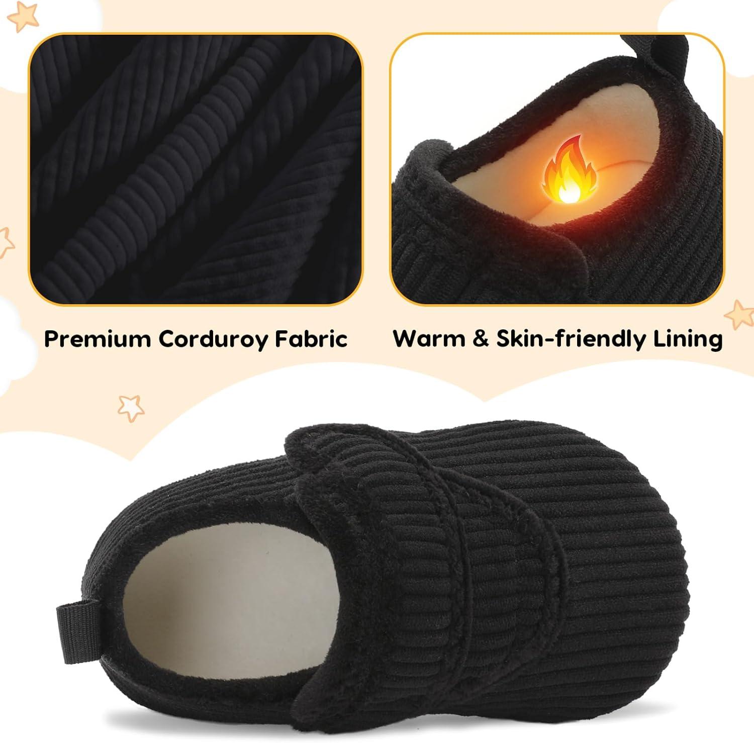 LeIsfIt Toddler Slippers Boys Girls House Shoes Soft Warm Kids House Slippers Slip on Cozy Bedroom Sock Shoes Non-slip Indoor Outdoor Slipper Shoe(Black)