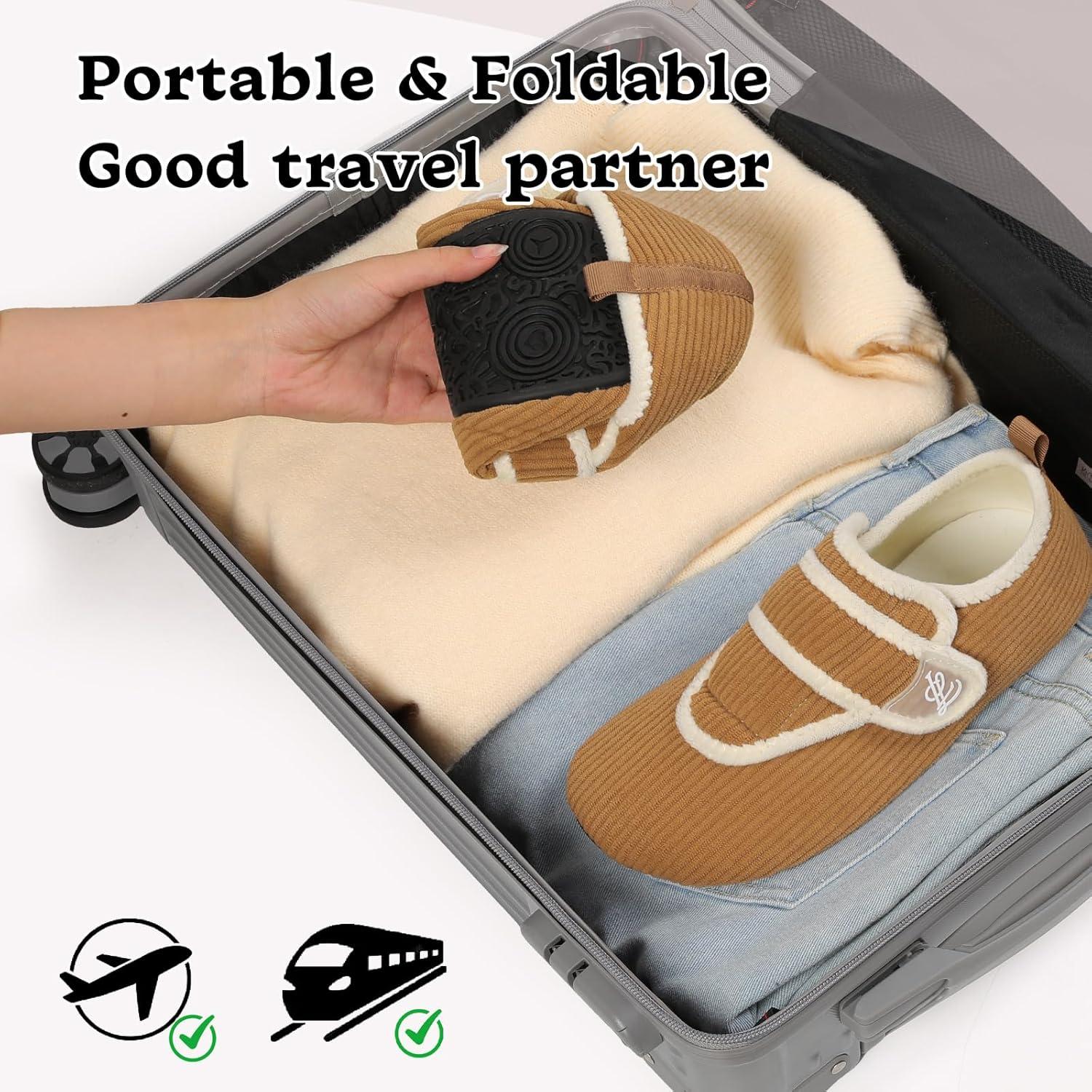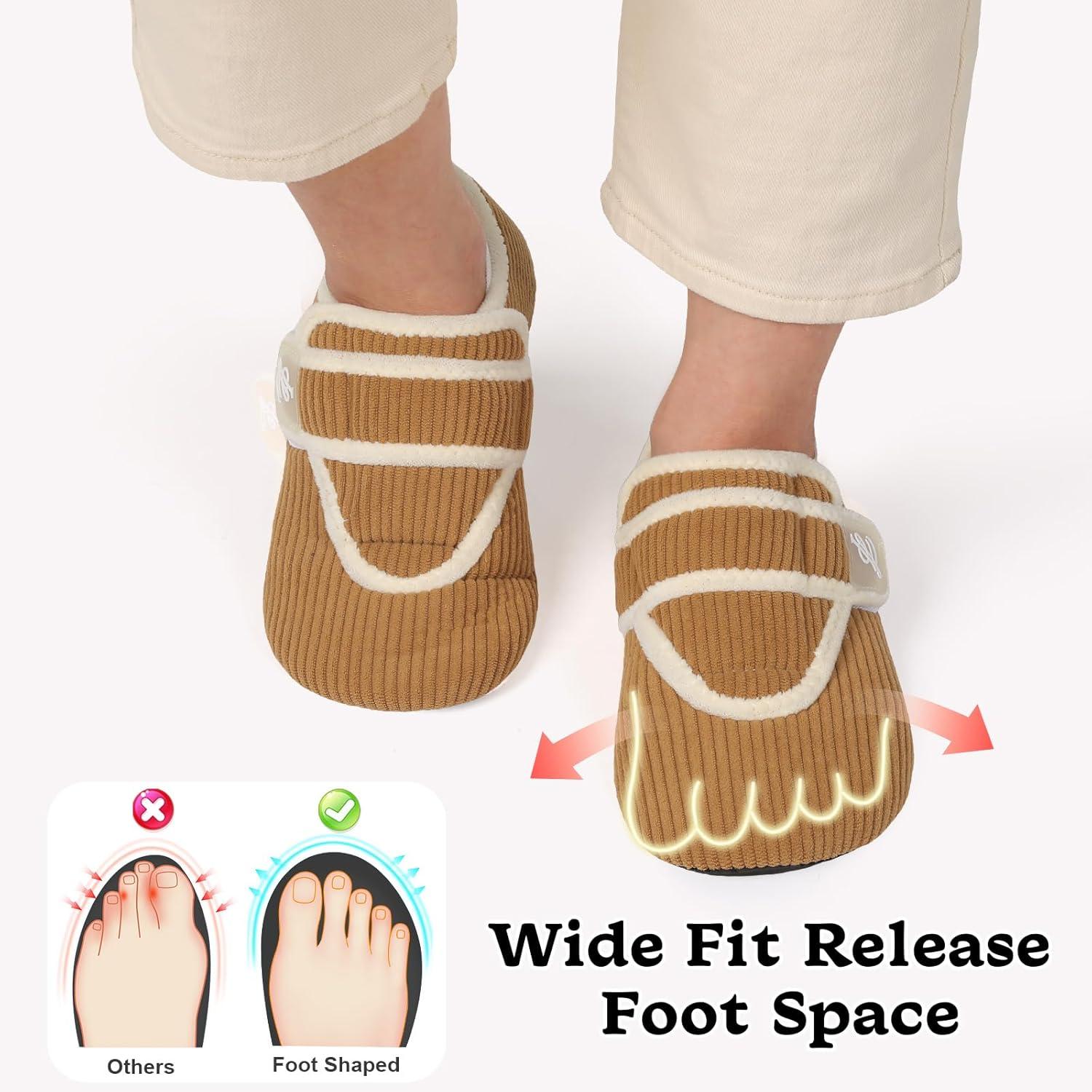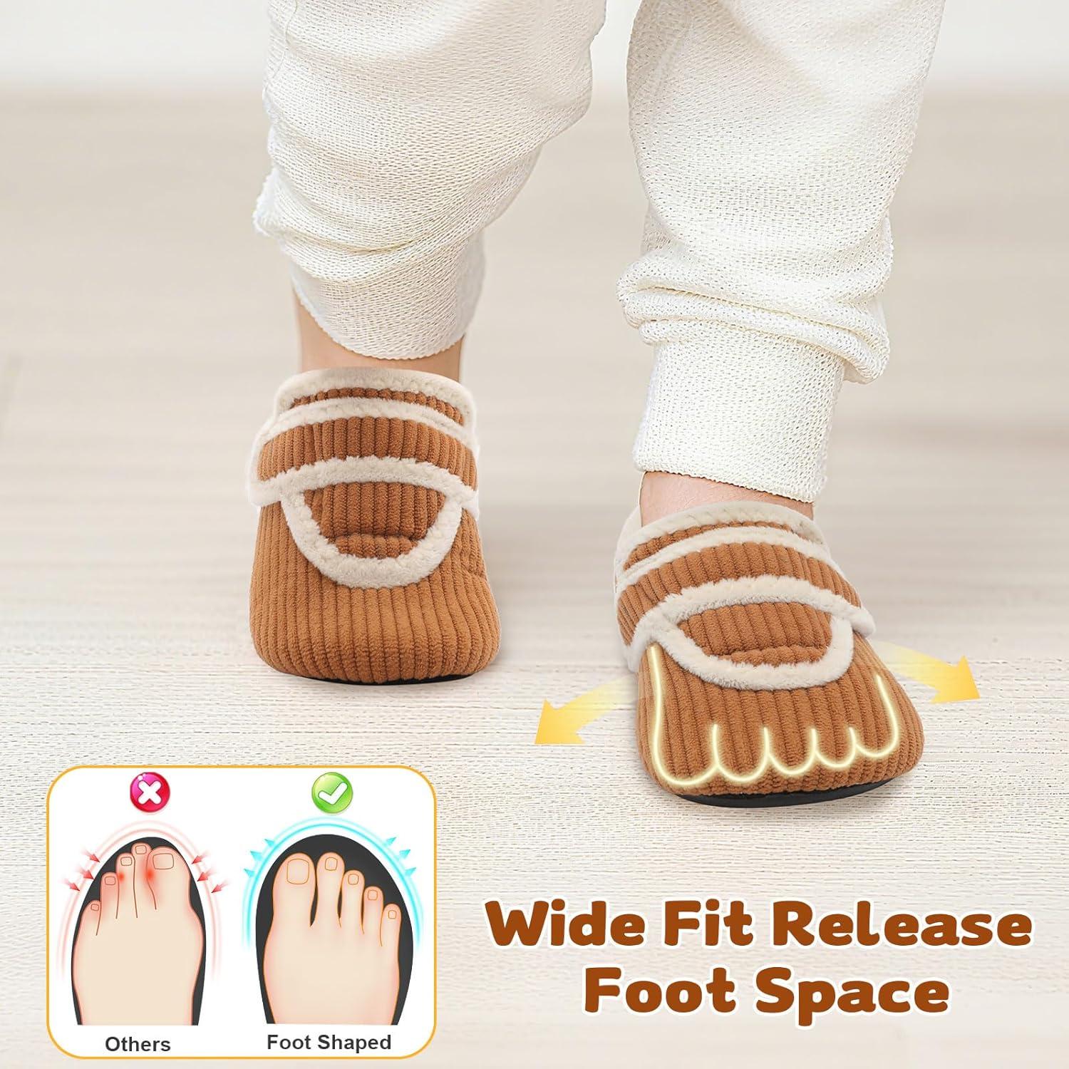 LeIsfIt Slippers for Women Wide Memory Foam House Slippers Corduroy Slip on Bedroom Slipper Non-slip Warm House Shoes Indoor and Outdoor(Brown)