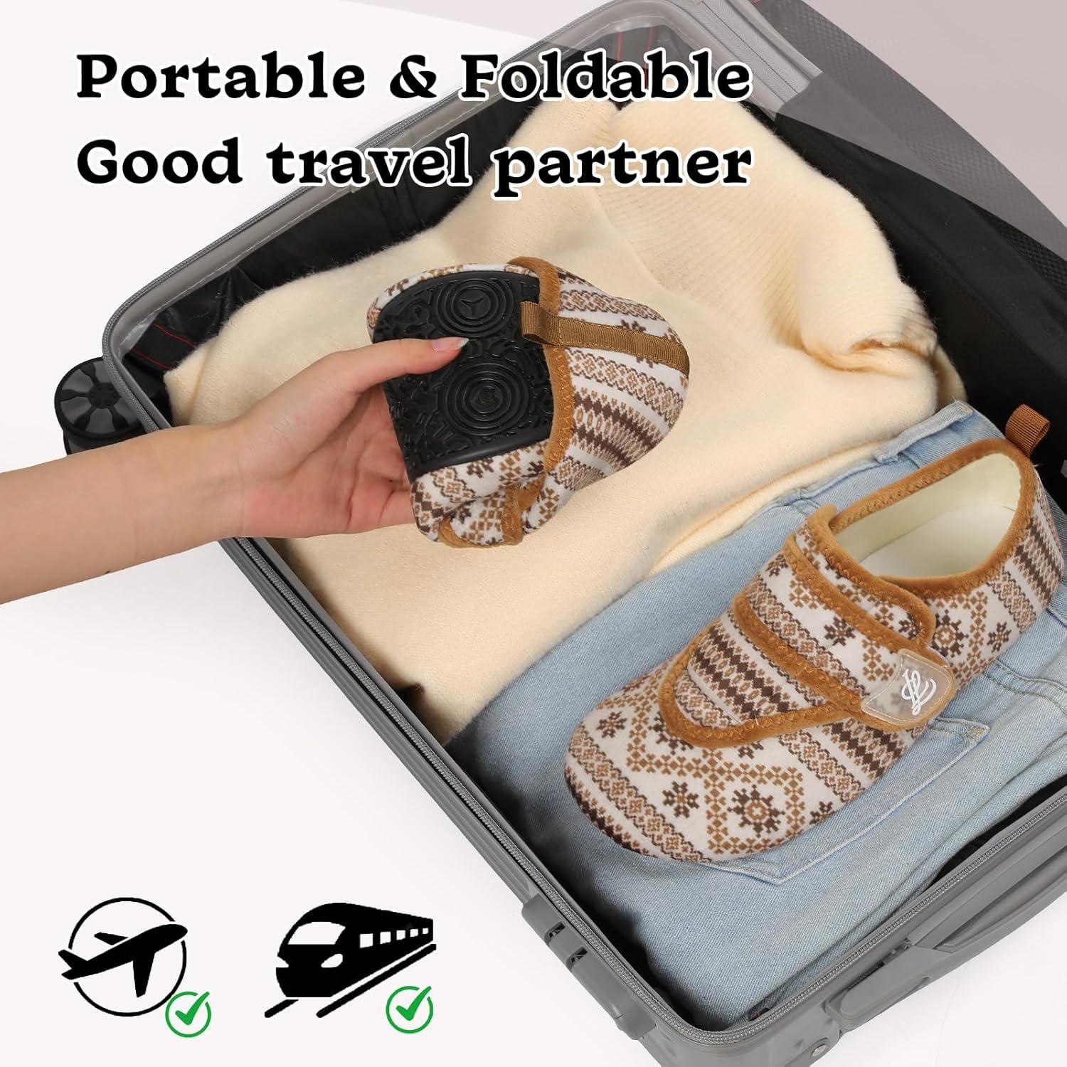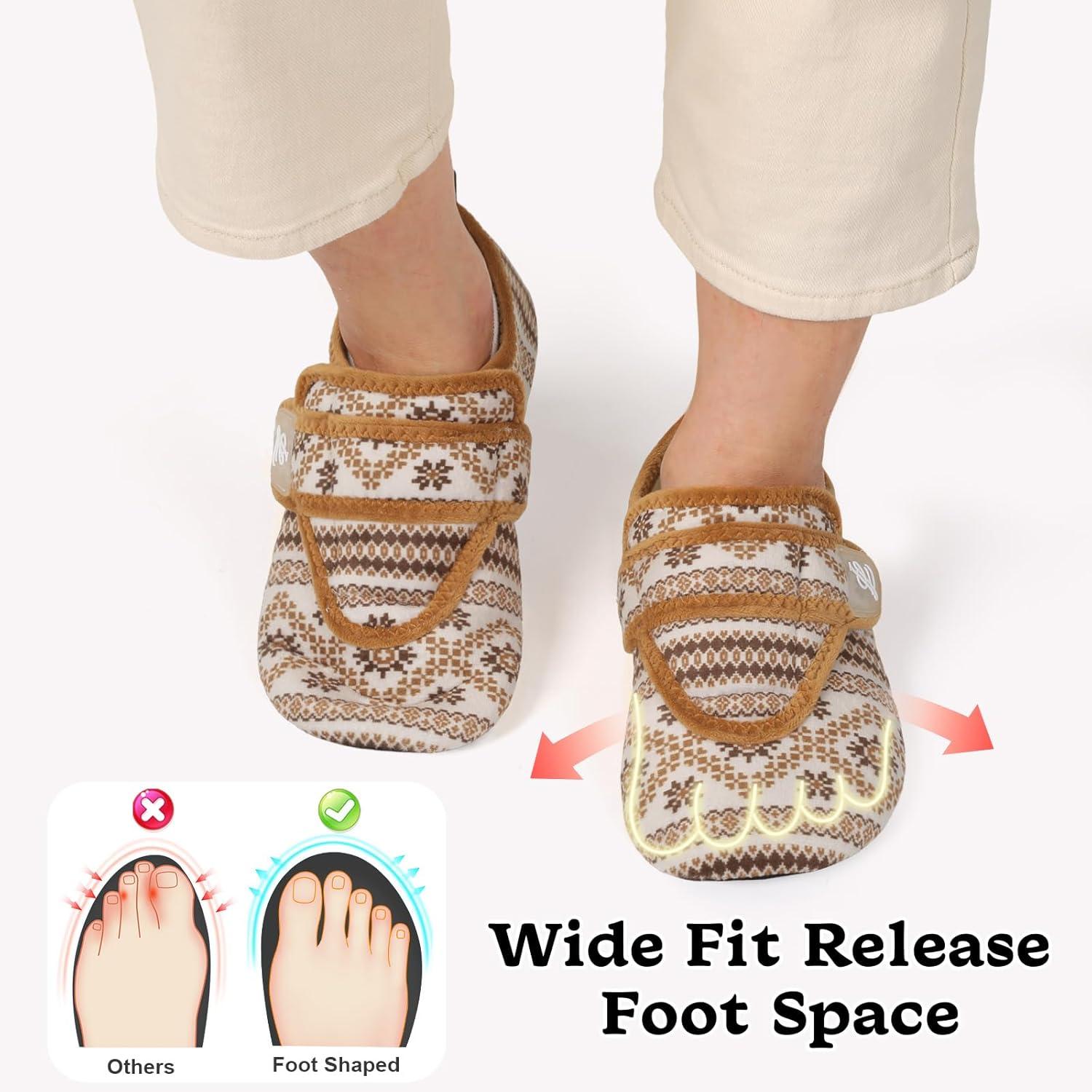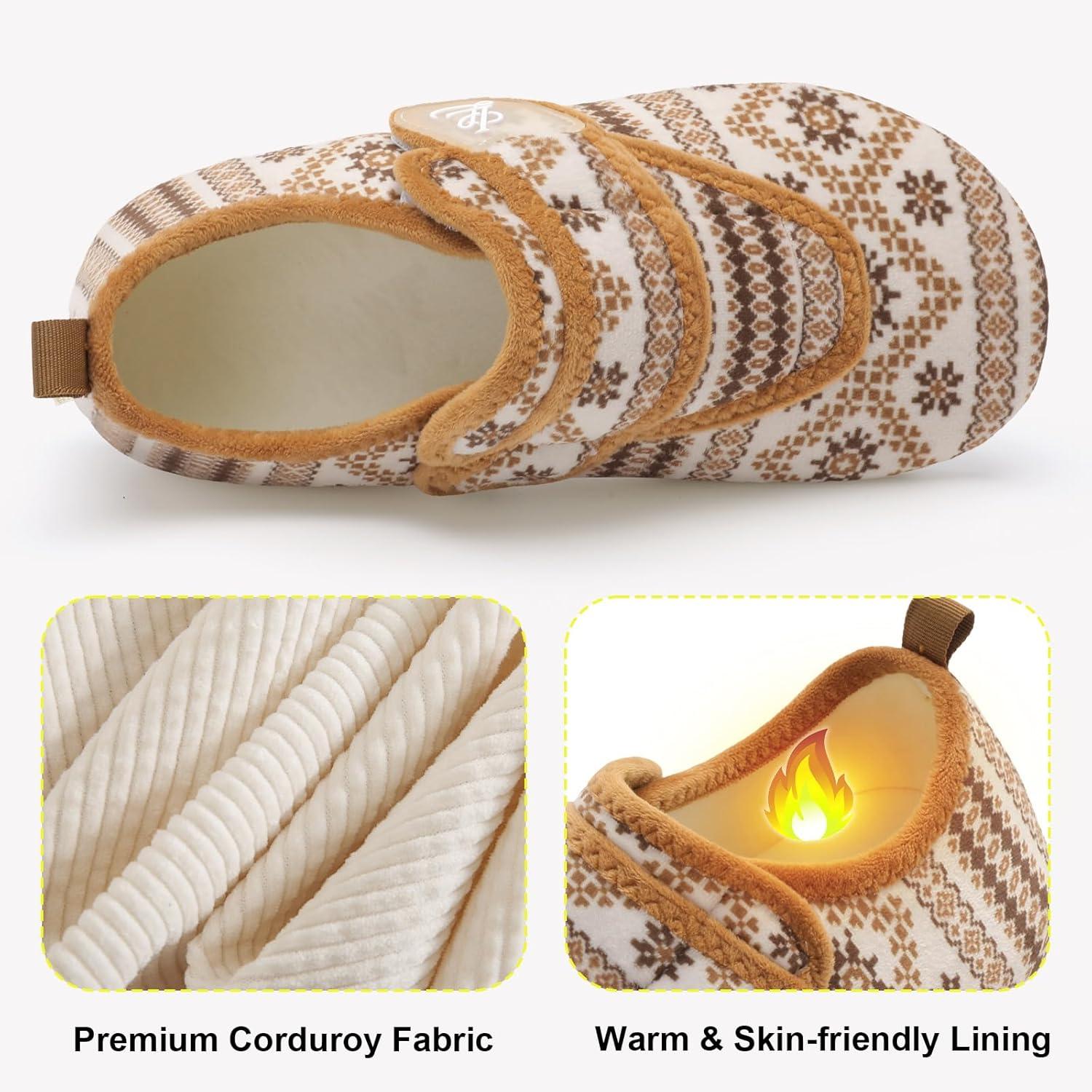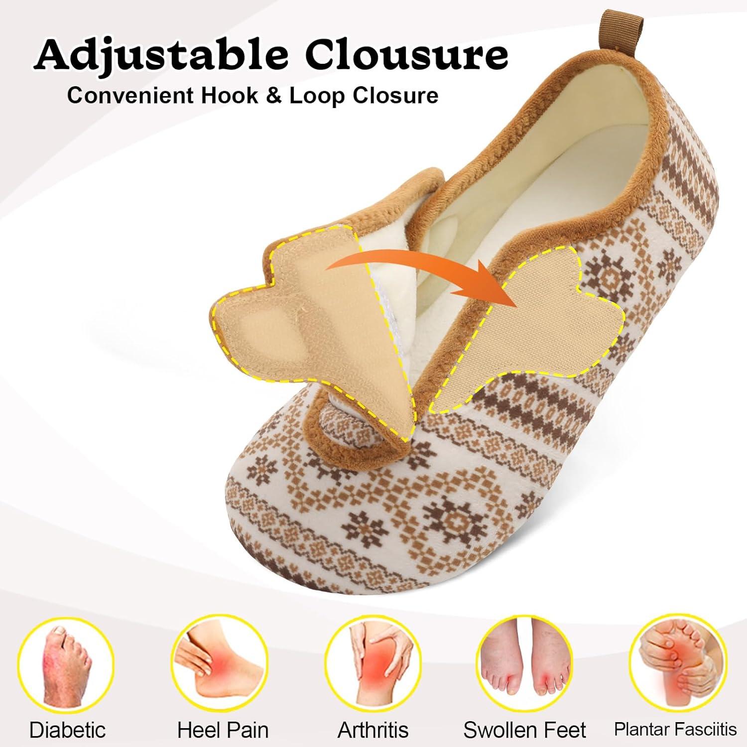 LeIsfIt Slipper Boots for Women Wide Warm House Shoes Non-slip Diabetic Winter Shoes Adjustable Bootie Slippers for Indoor & Outdoor(Brownbohemian)
