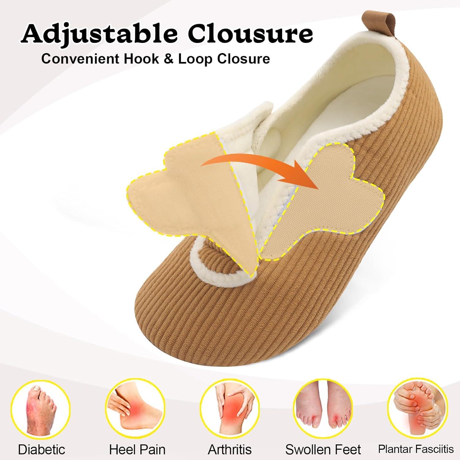 LeIsfIt Mens Slippers Wide House Shoes Adjustable Diabetic Slippers Warm Soft House Slipper for Swollen Edema Feet Indoor Outdoor Warm Shoes(Chocolate)