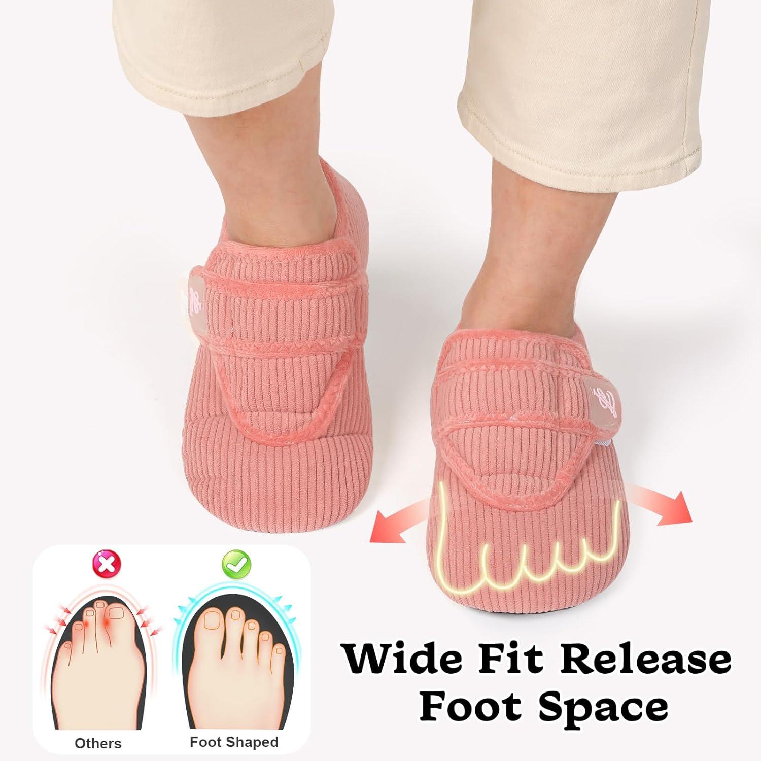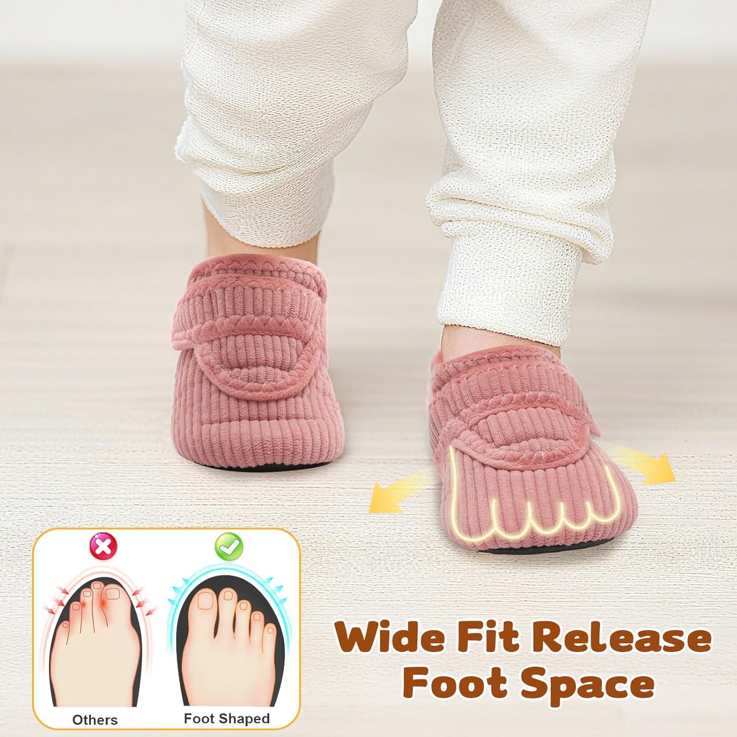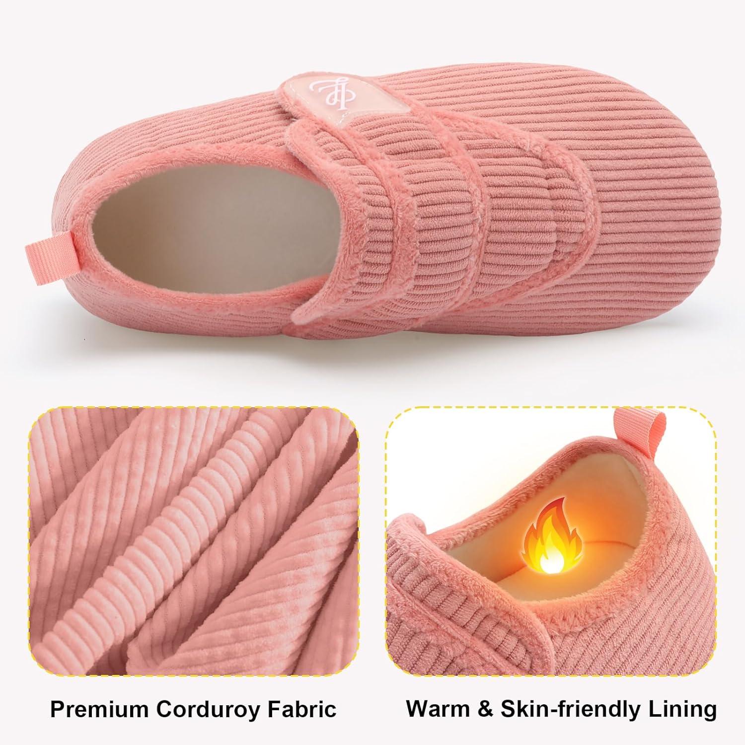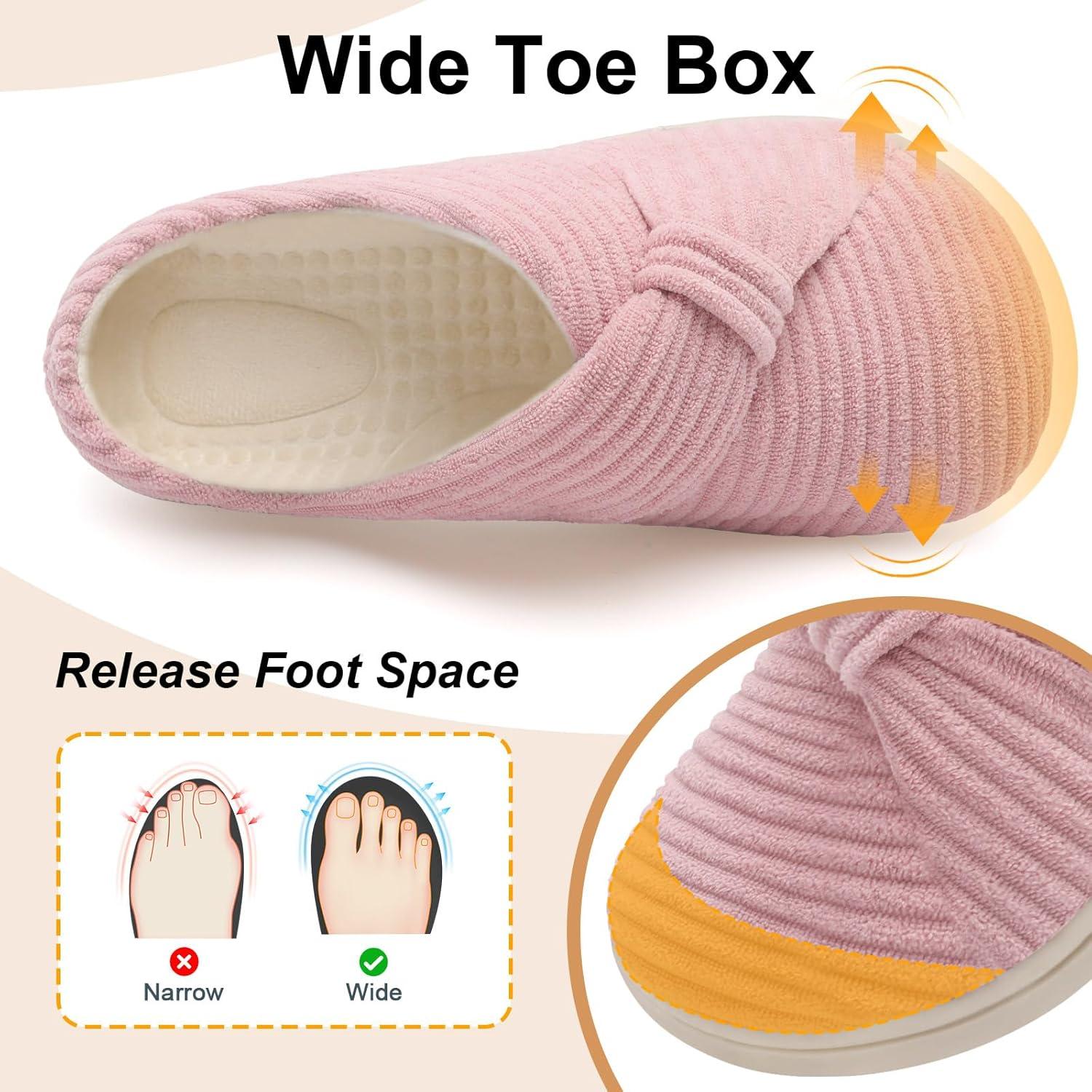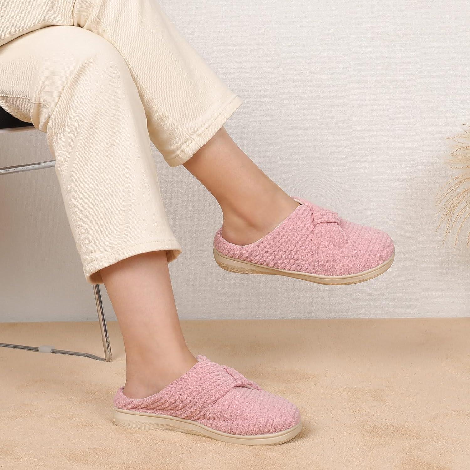 LeIsfIt Slippers for Women Wide Memory Foam House Slippers Corduroy Slip on Bedroom Slipper Non-slip Warm House Shoes Indoor and Outdoor(Pink)