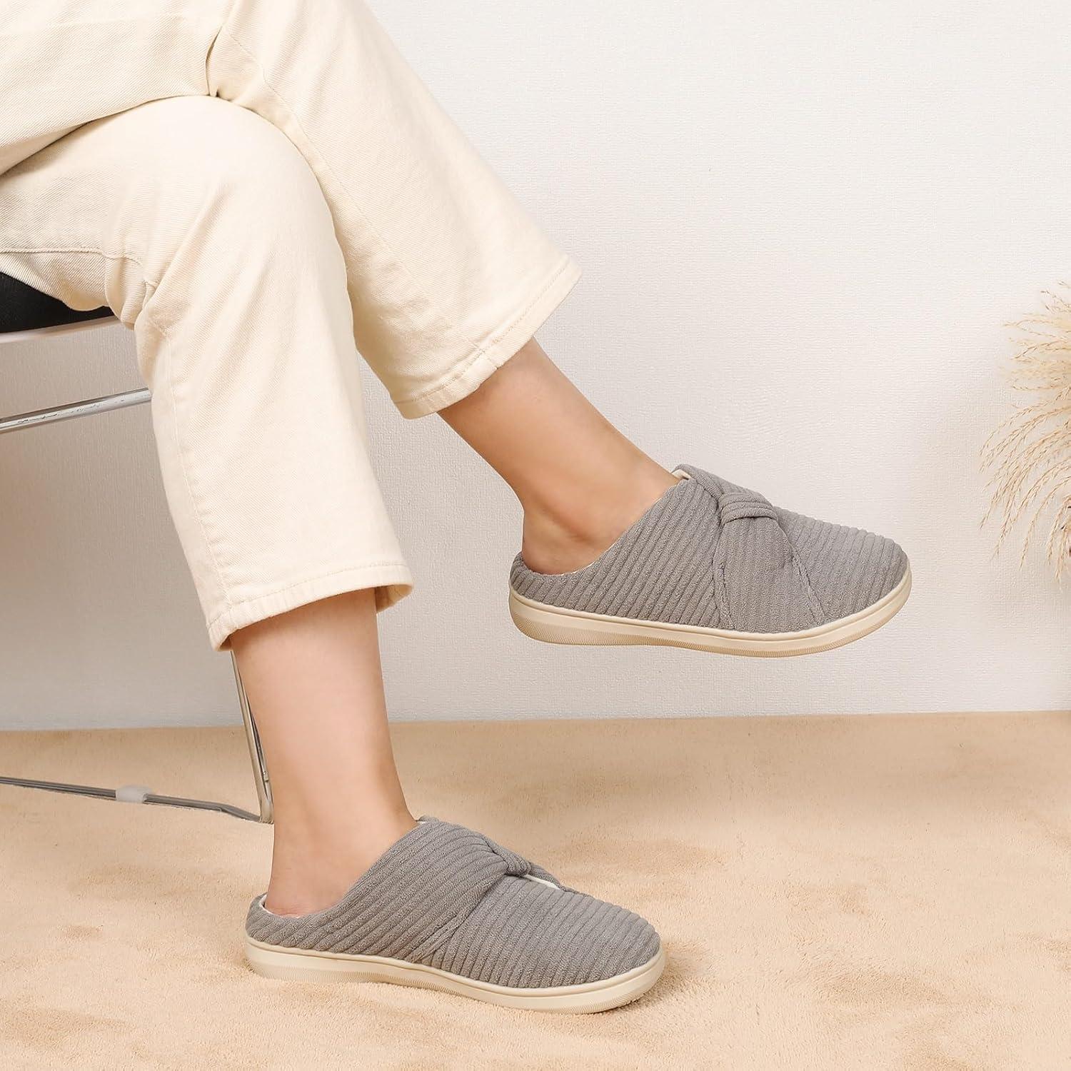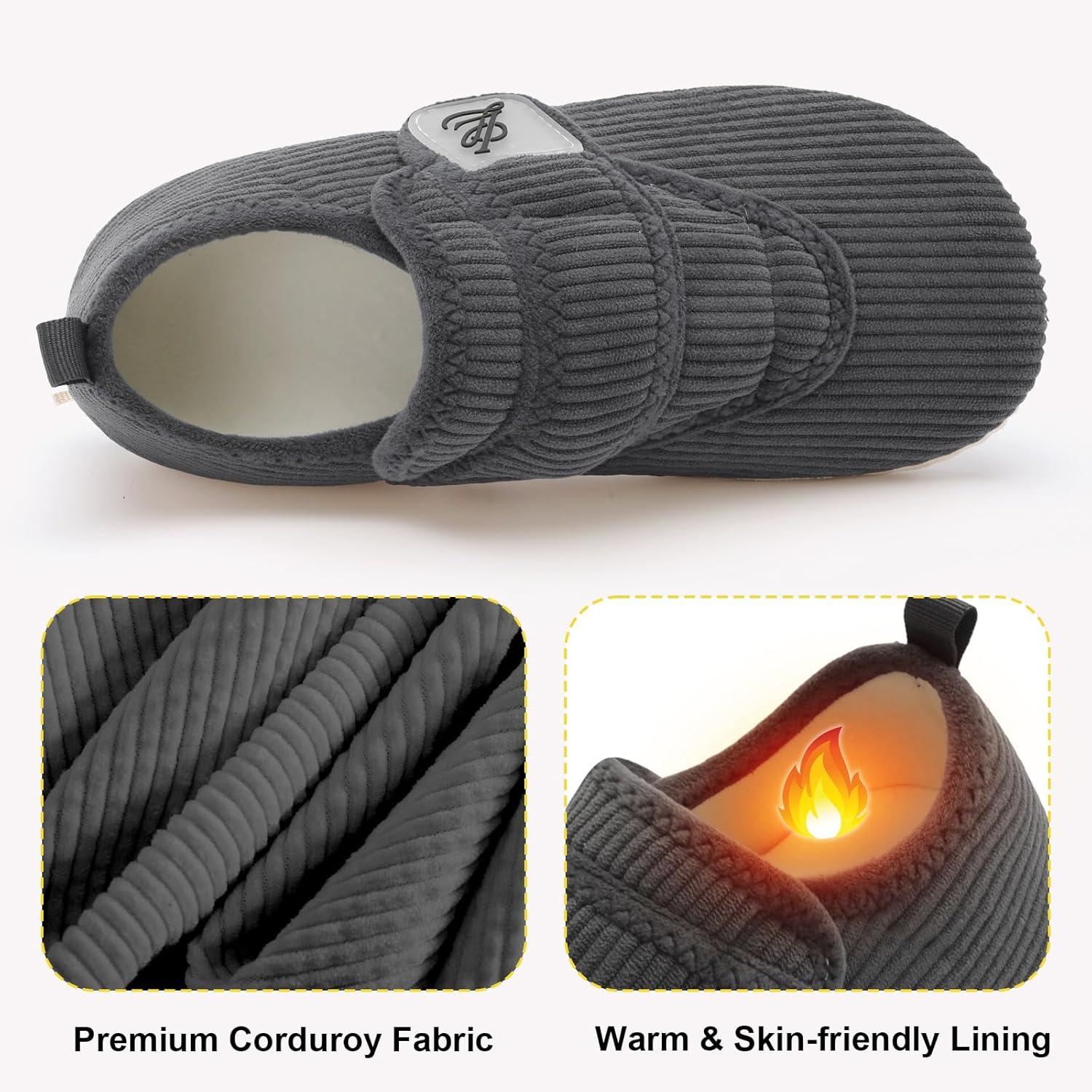 LeIsfIt Slippers for Women Wide Memory Foam House Slippers Corduroy Slip on Bedroom Slipper Non-slip Warm House Shoes Indoor and Outdoor(Darkgrey)