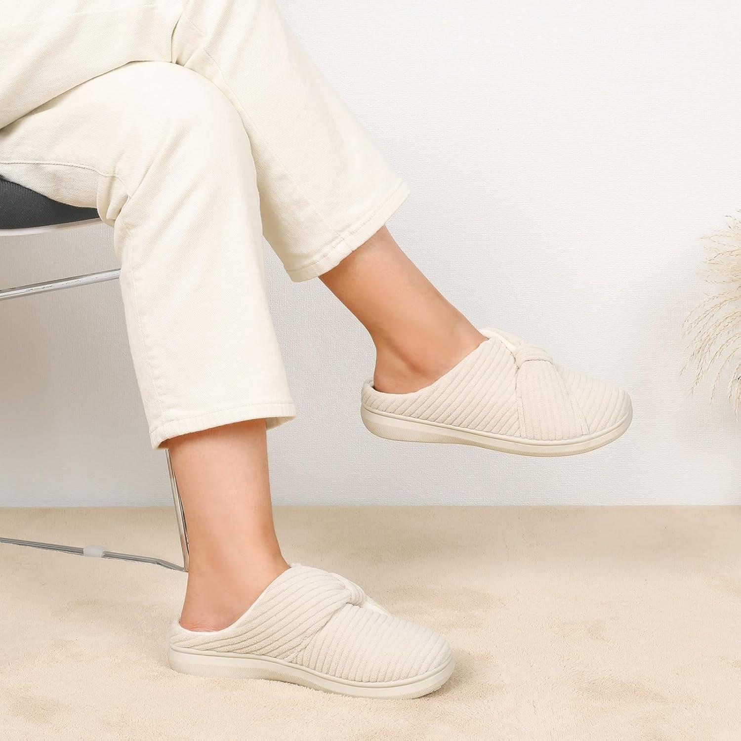LeIsfIt Slippers for Women Wide Memory Foam House Slippers Corduroy Slip on Bedroom Slipper Non-slip Warm House Shoes Indoor and Outdoor(Beige)