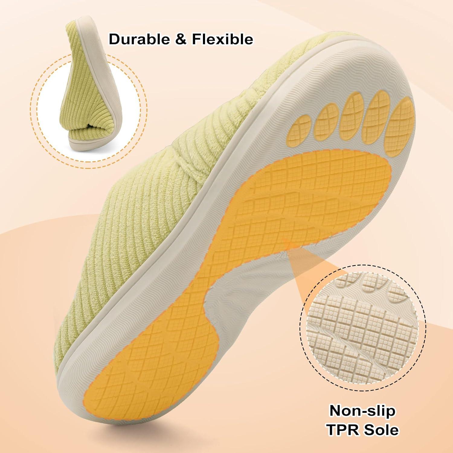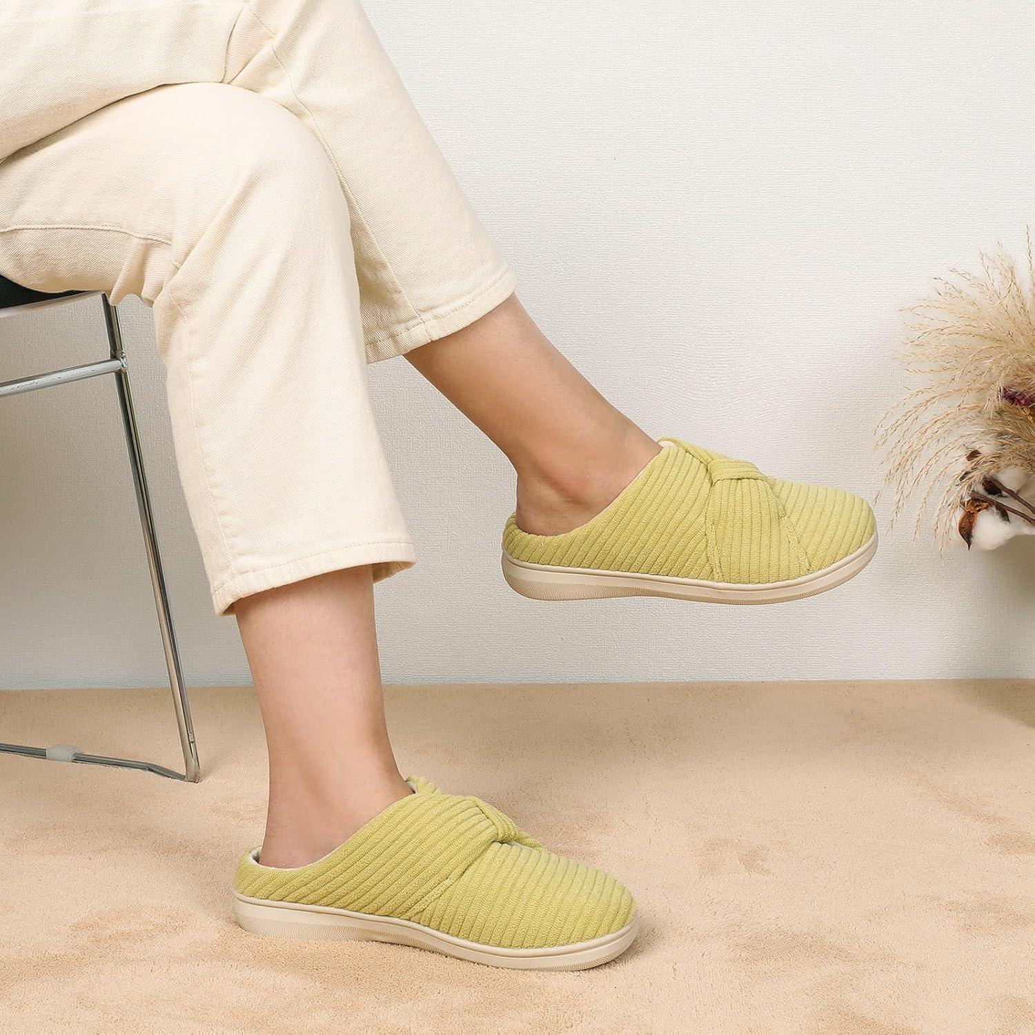 LeIsfIt Slippers for Women Wide Memory Foam House Slippers Corduroy Slip on Bedroom Slipper Non-slip Warm House Shoes Indoor and Outdoor(Green)