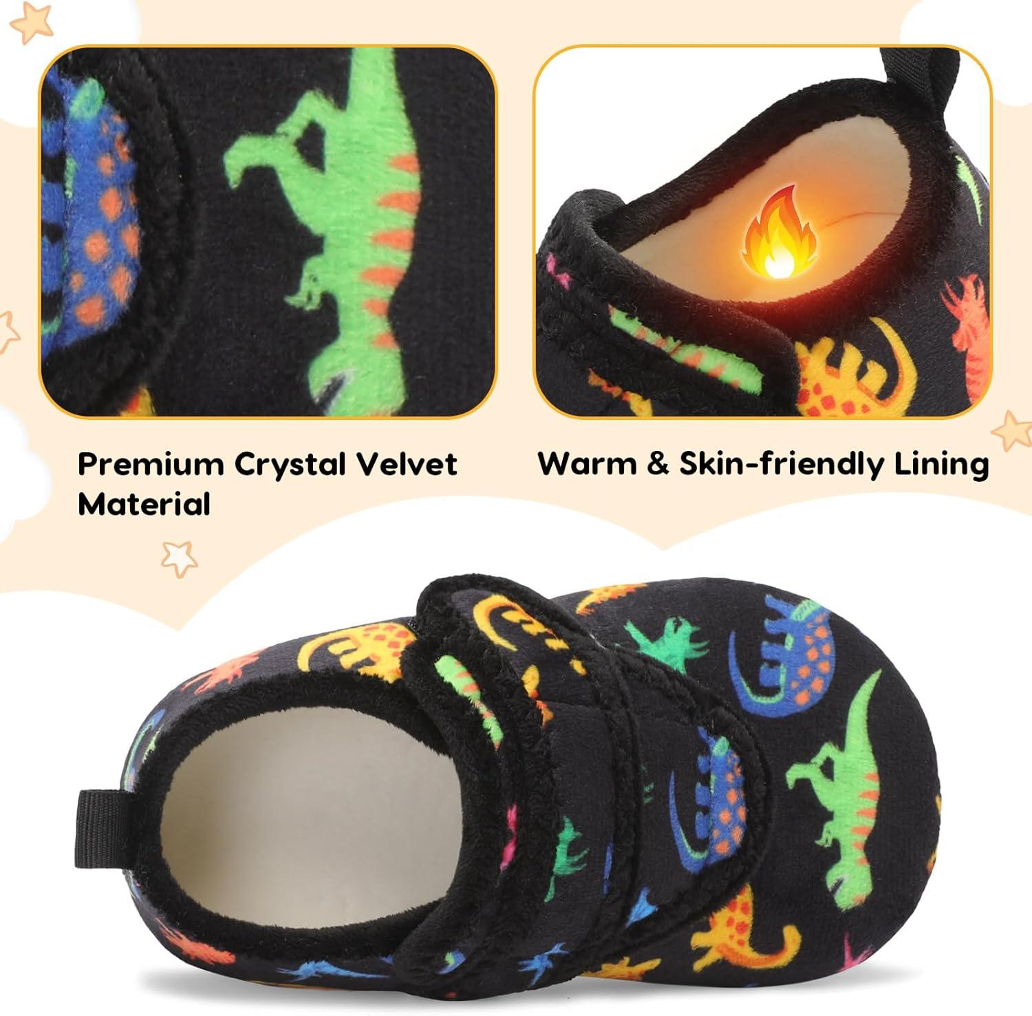 LeIsfIt Toddler Slippers Boys Girls House Shoes Soft Warm Kids House Slippers Slip on Cozy Bedroom Sock Shoes Non-slip Indoor Outdoor Slipper Shoe(Blackdinosaur)