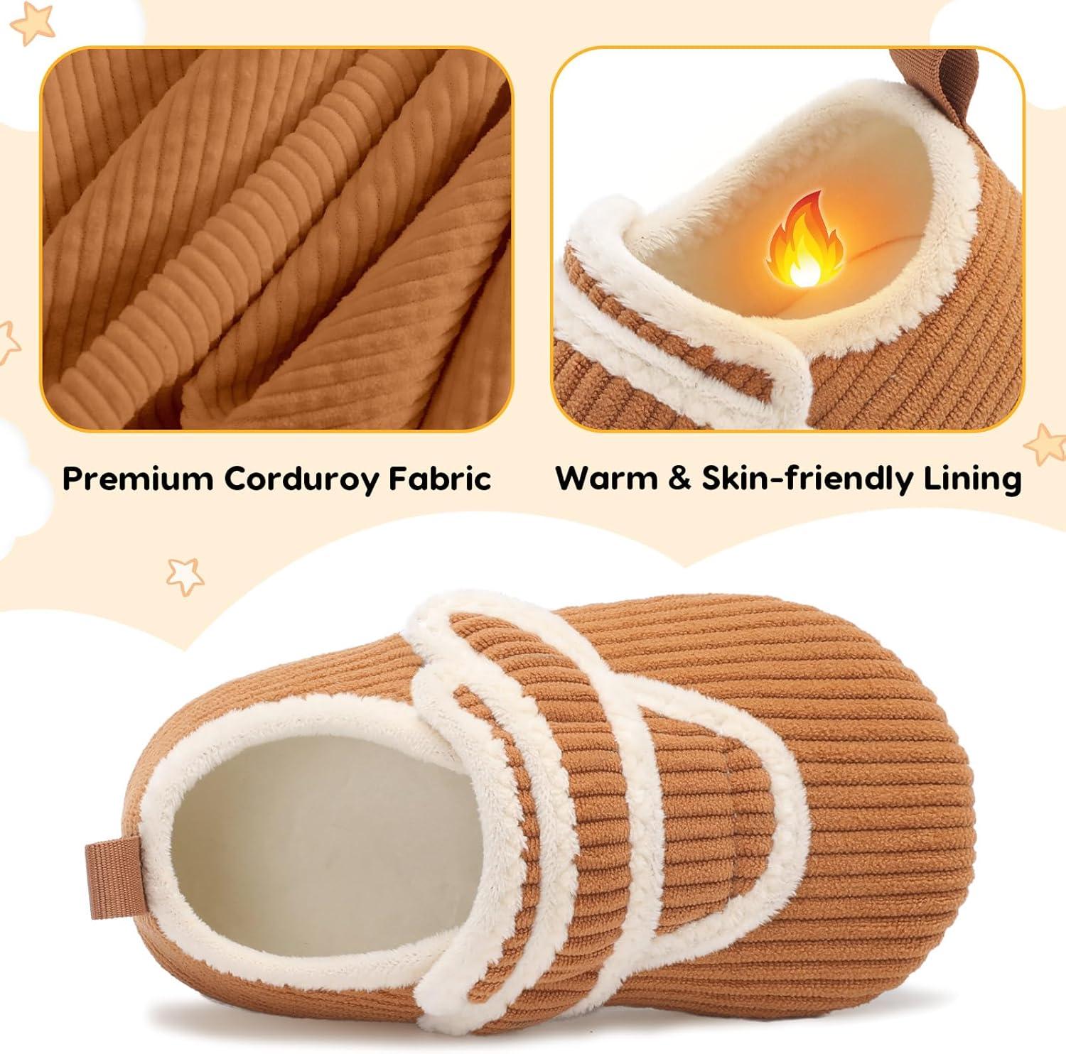 LeIsfIt Toddler Slippers Boys Girls House Shoes Soft Warm Kids House Slippers Slip on Cozy Bedroom Sock Shoes Non-slip Indoor Outdoor Slipper Shoe(Brown)