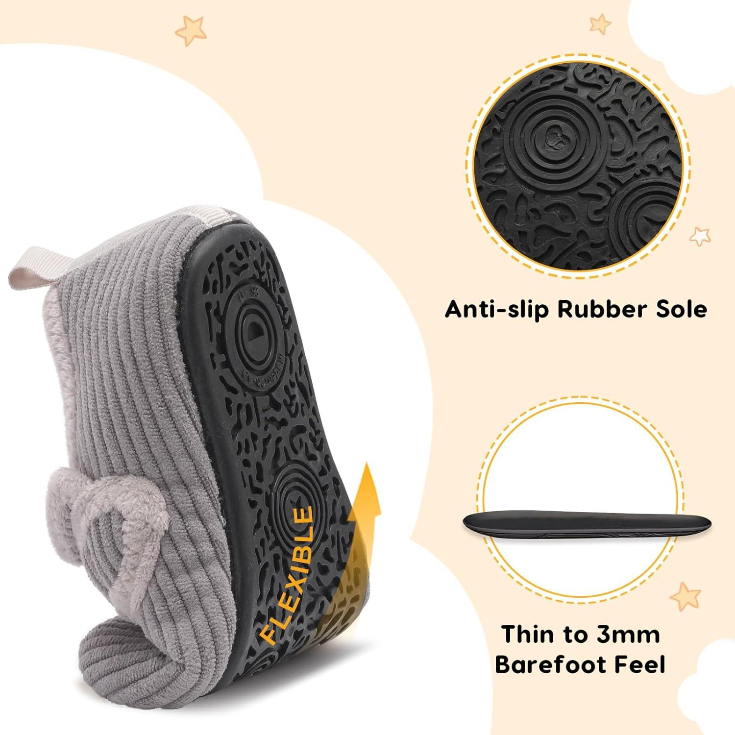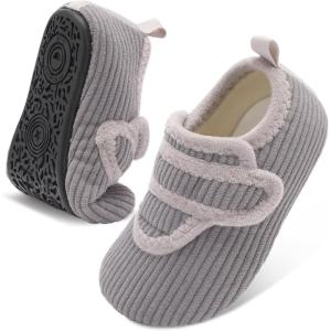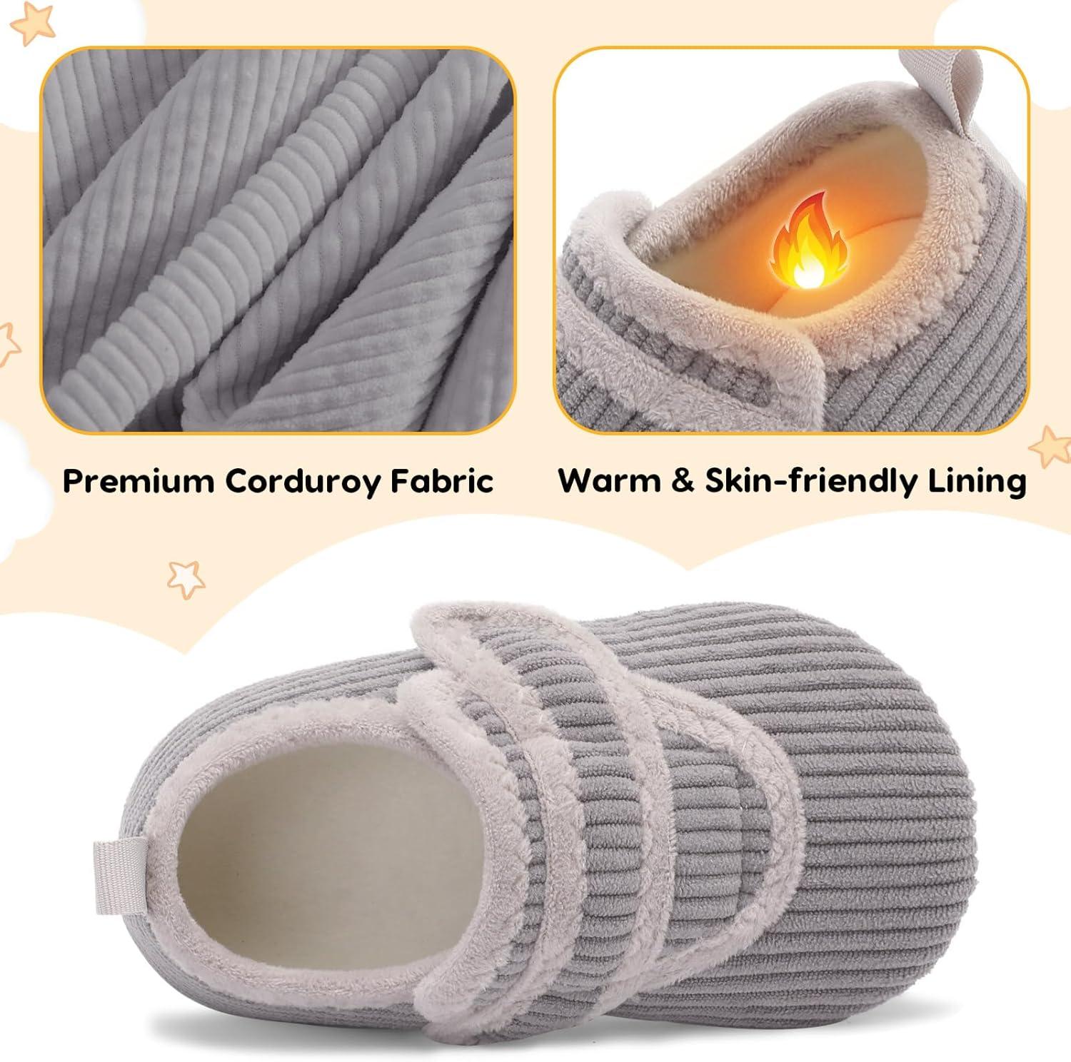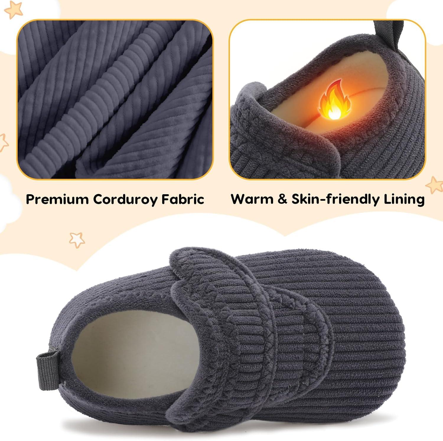 LeIsfIt Toddler Slippers Boys Girls House Shoes Soft Warm Kids House Slippers Slip on Cozy Bedroom Sock Shoes Non-slip Indoor Outdoor Slipper Shoe(Grey)