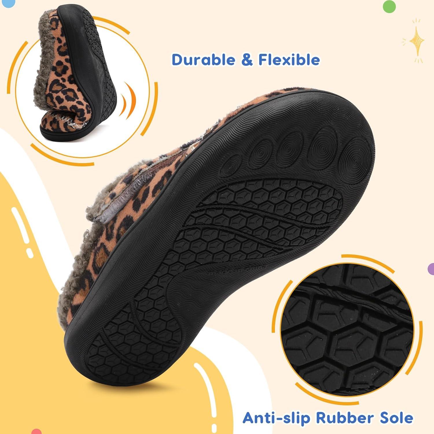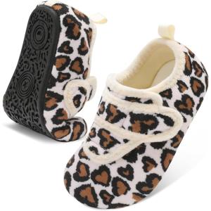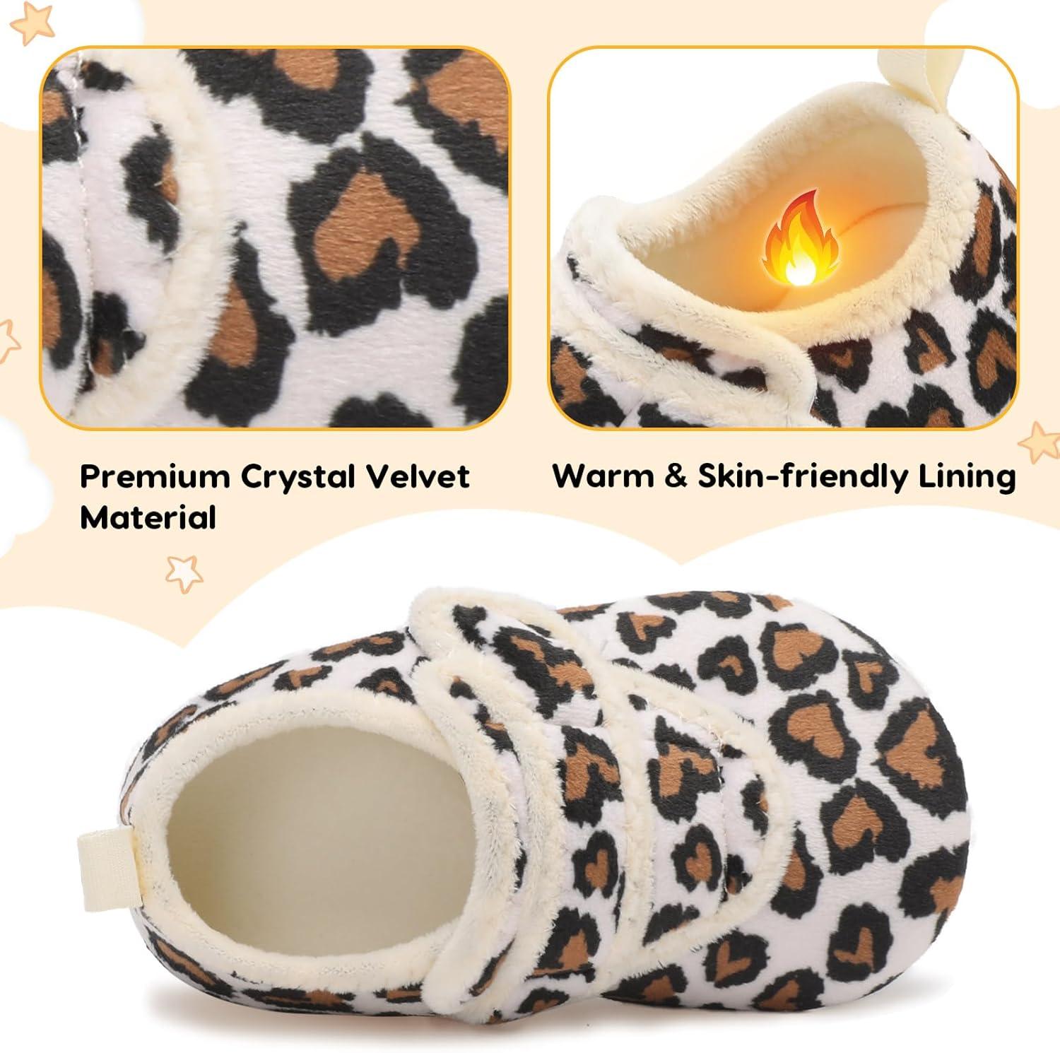 LeIsfIt Toddler Slippers Boys Girls House Shoes Soft Warm Kids House Slippers Slip on Cozy Bedroom Sock Shoes Non-slip Indoor Outdoor Slipper Shoe(Leopard)