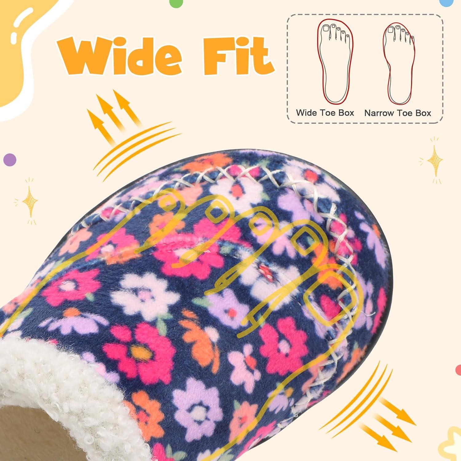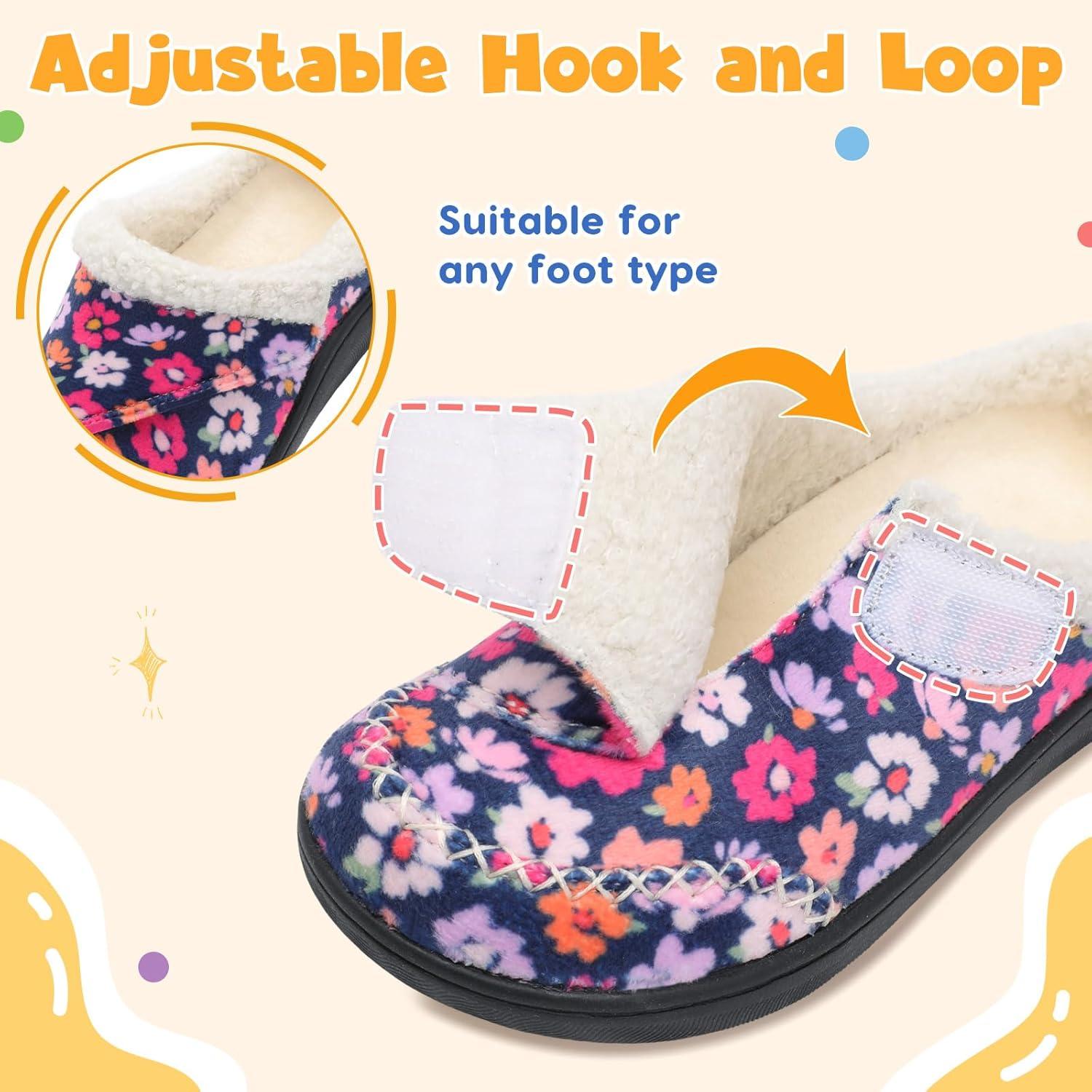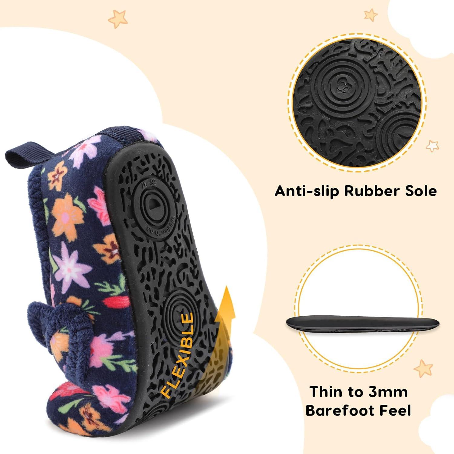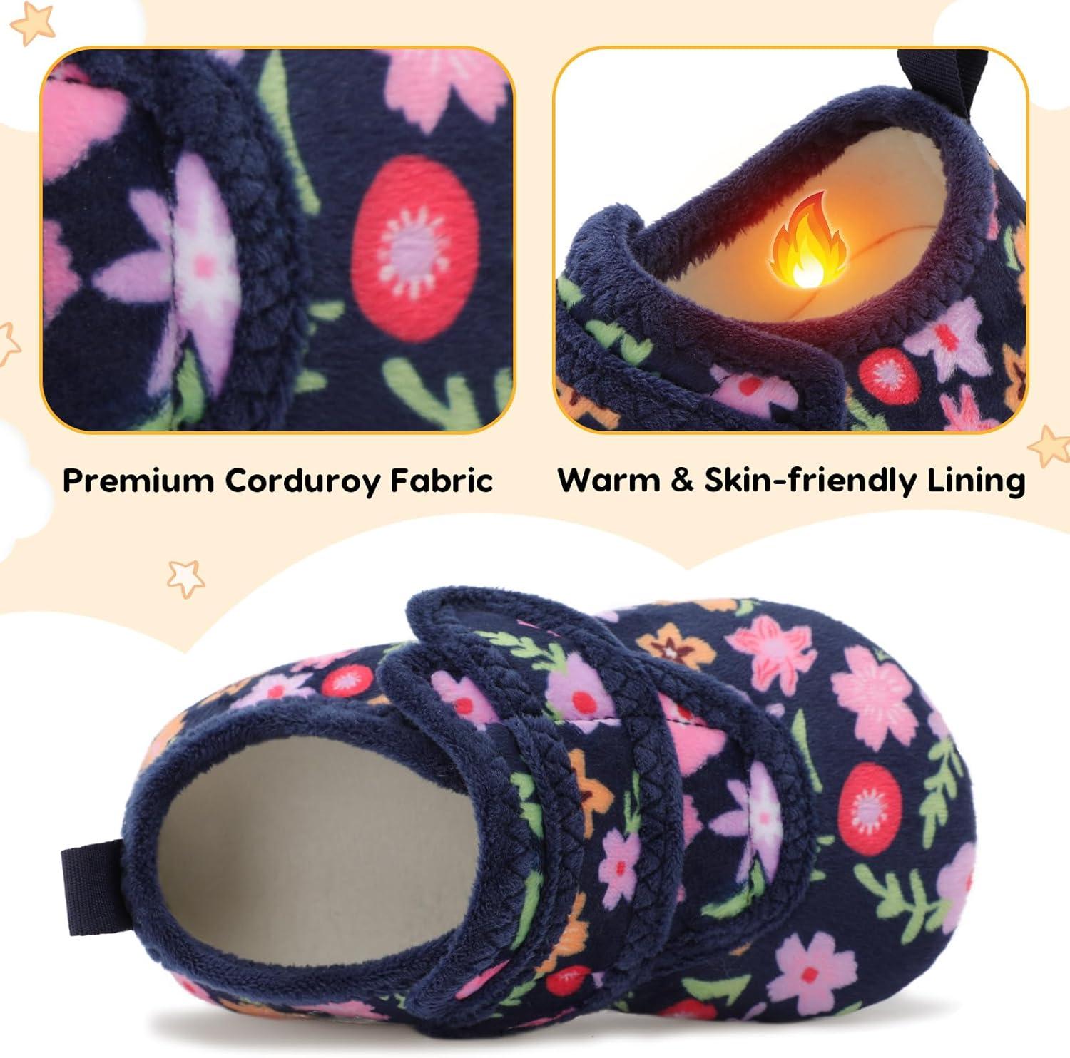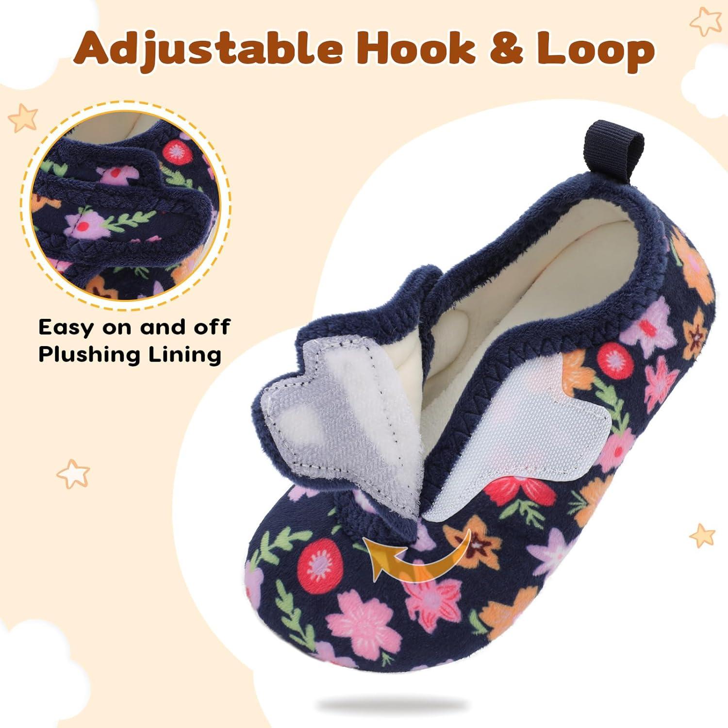 LeIsfIt Toddler Slippers Boys Girls House Shoes Soft Warm Kids House Slippers Slip on Cozy Bedroom Sock Shoes Non-slip Indoor Outdoor Slipper Shoe(Navyflower)