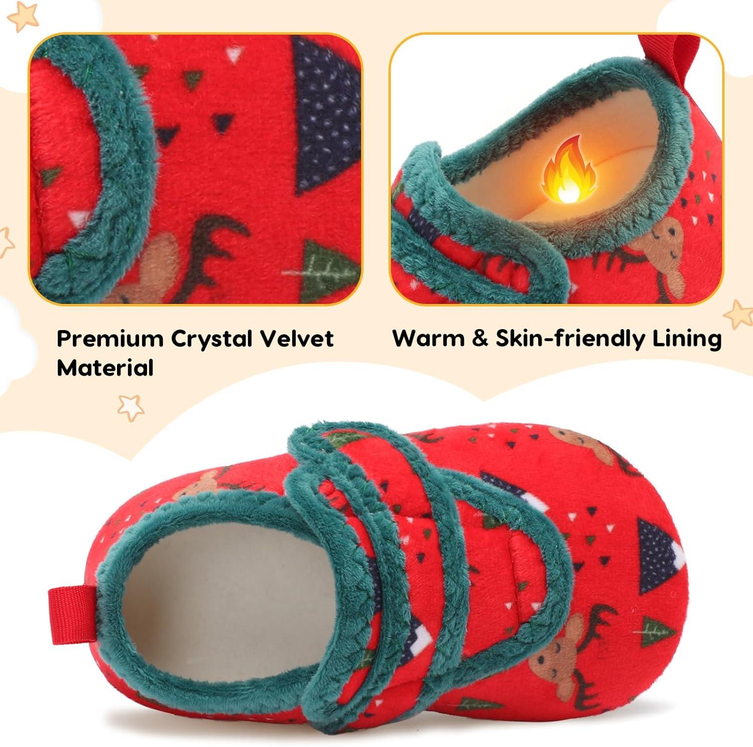 LeIsfIt Toddler Slippers Boys Girls House Shoes Soft Warm Kids House Slippers Slip on Cozy Bedroom Sock Shoes Non-slip Indoor Outdoor Slipper Shoe(Red)
