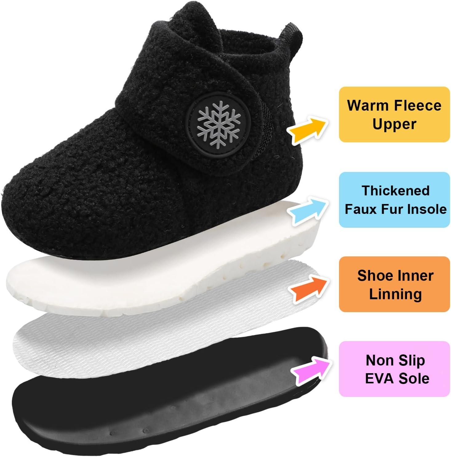 LeIsfIt Toddler Boots Girls Boys Warm Winter Boots Cozy Plush Lining Winter Shoes Indoor Outdoor Faux Fur Booties(Black)
