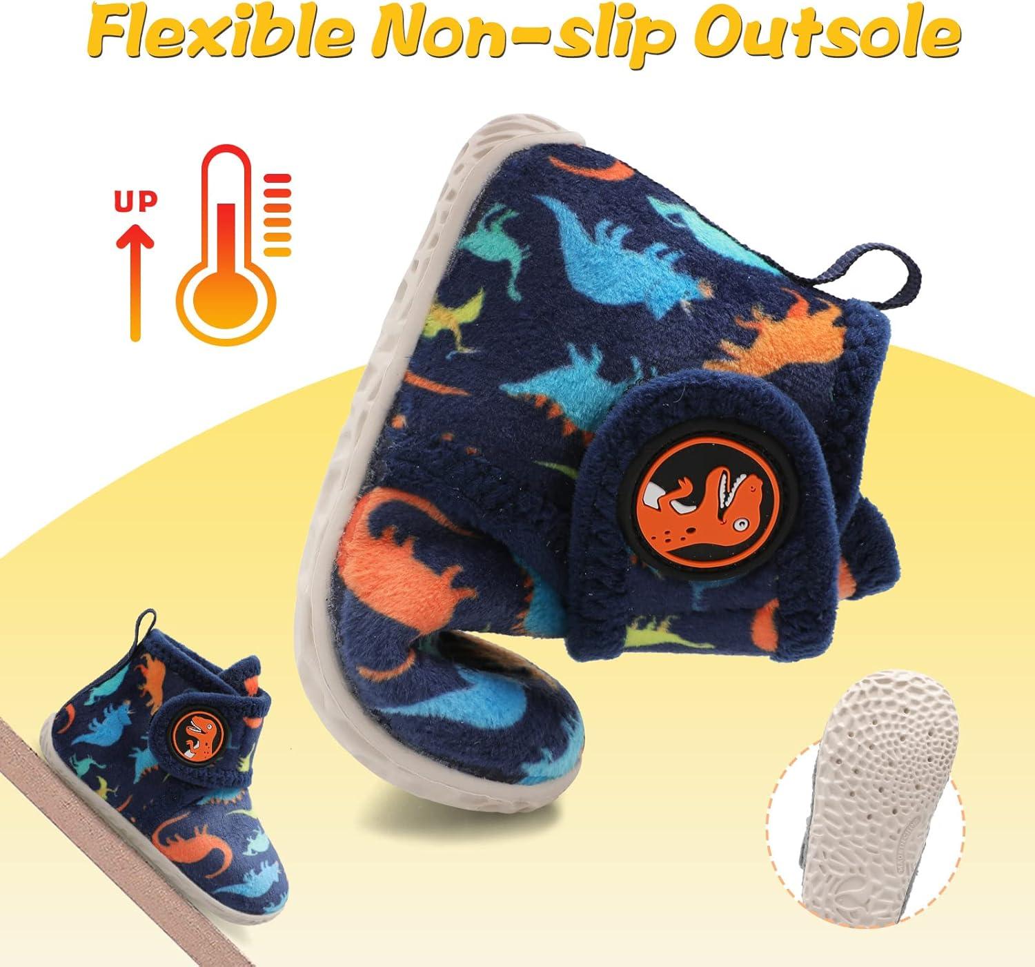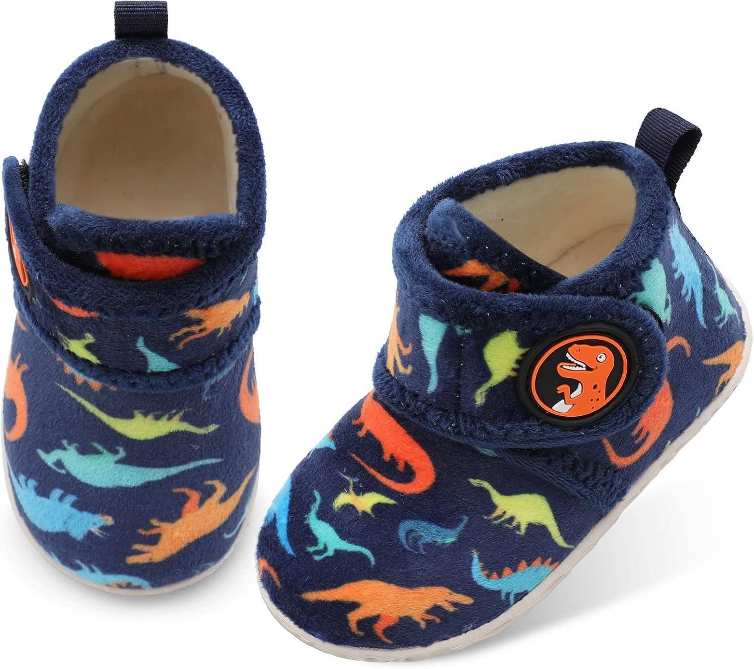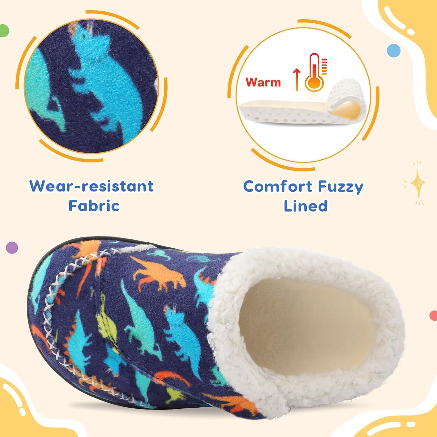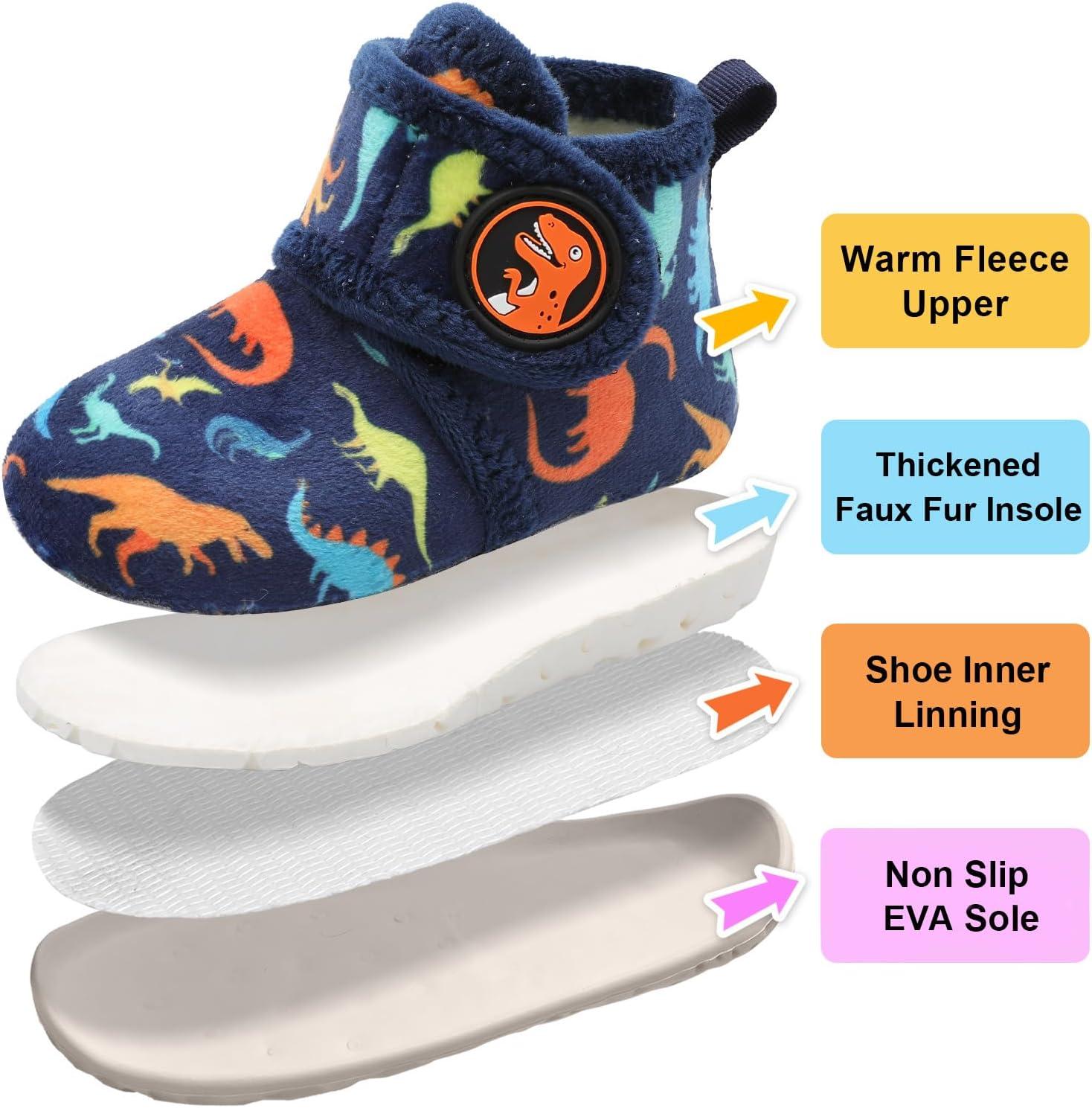 LeIsfIt Toddler Slippers Boys Girls House Slippers Kids Winter Boots Warm Lightweight House Shoes Non-slip Indoor Slipper Shoes(A-bluedinosaur)