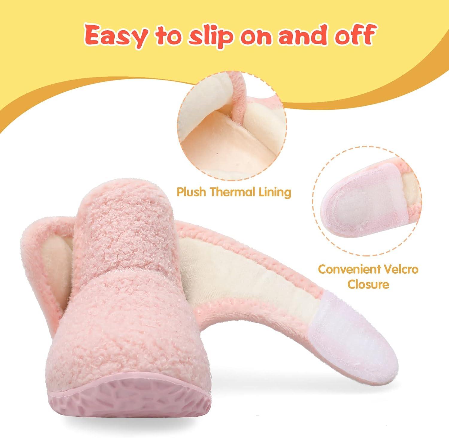 LeIsfIt Toddler Slippers Boys Girls House Slippers Kids Winter Boots Warm Lightweight House Shoes Non-slip Indoor Slipper Shoes(A-pink)