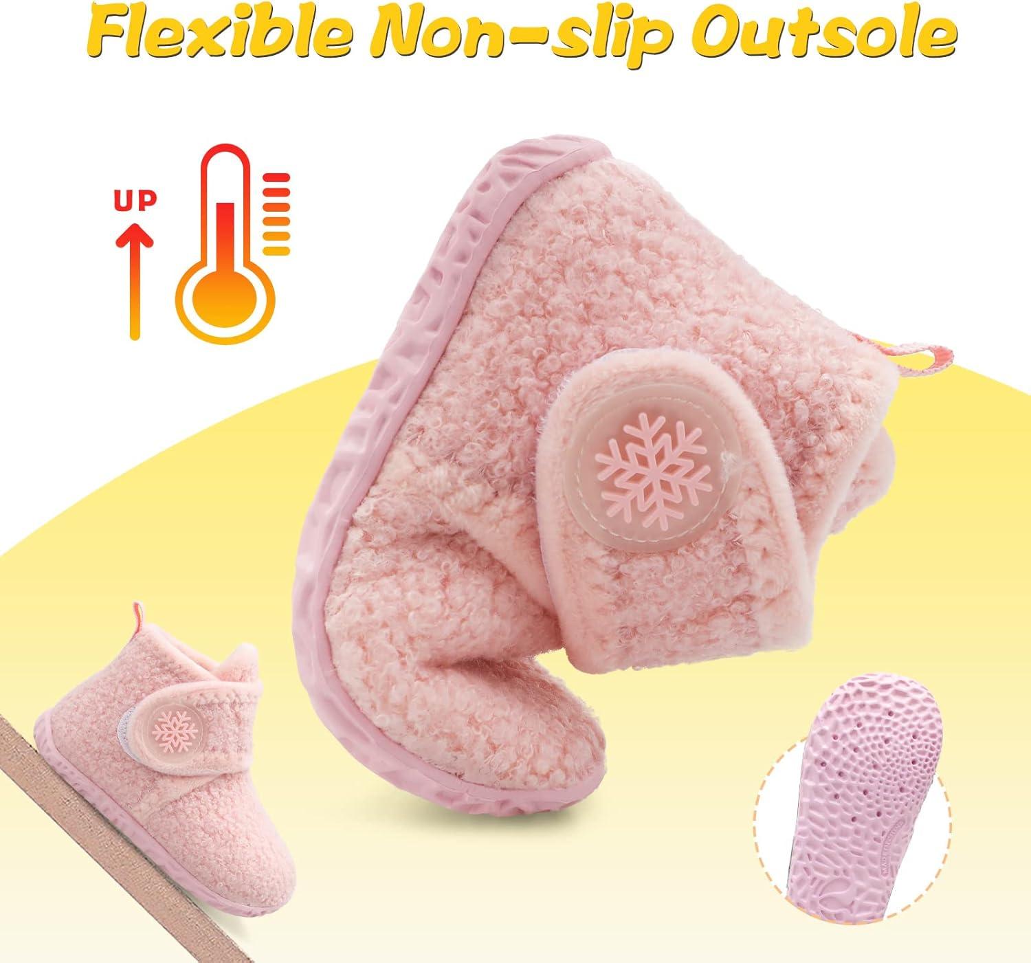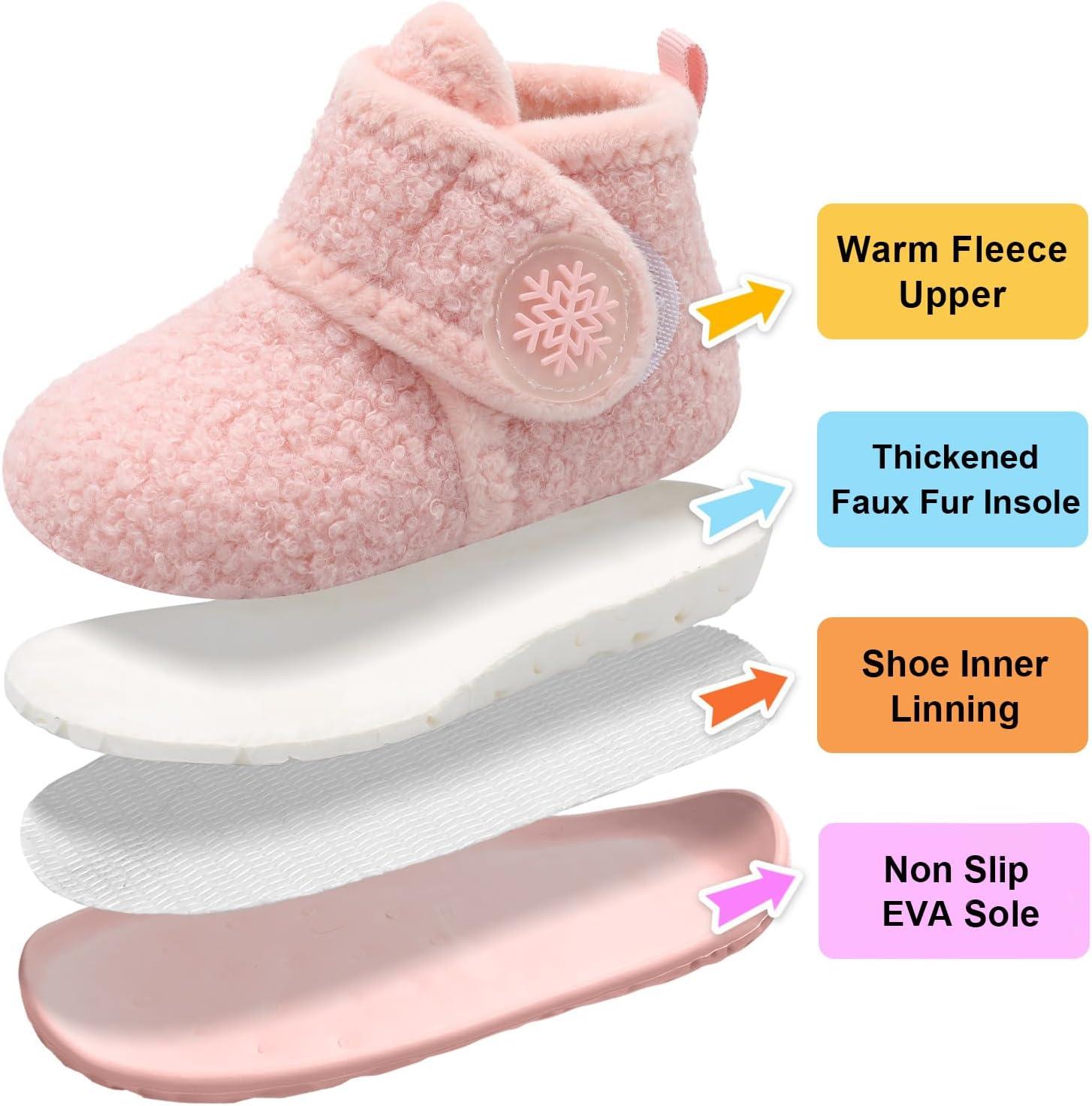 LeIsfIt Toddler Boots Girls Boys Warm Winter Boots Cozy Plush Lining Winter Shoes Indoor Outdoor Faux Fur Booties(Pink)