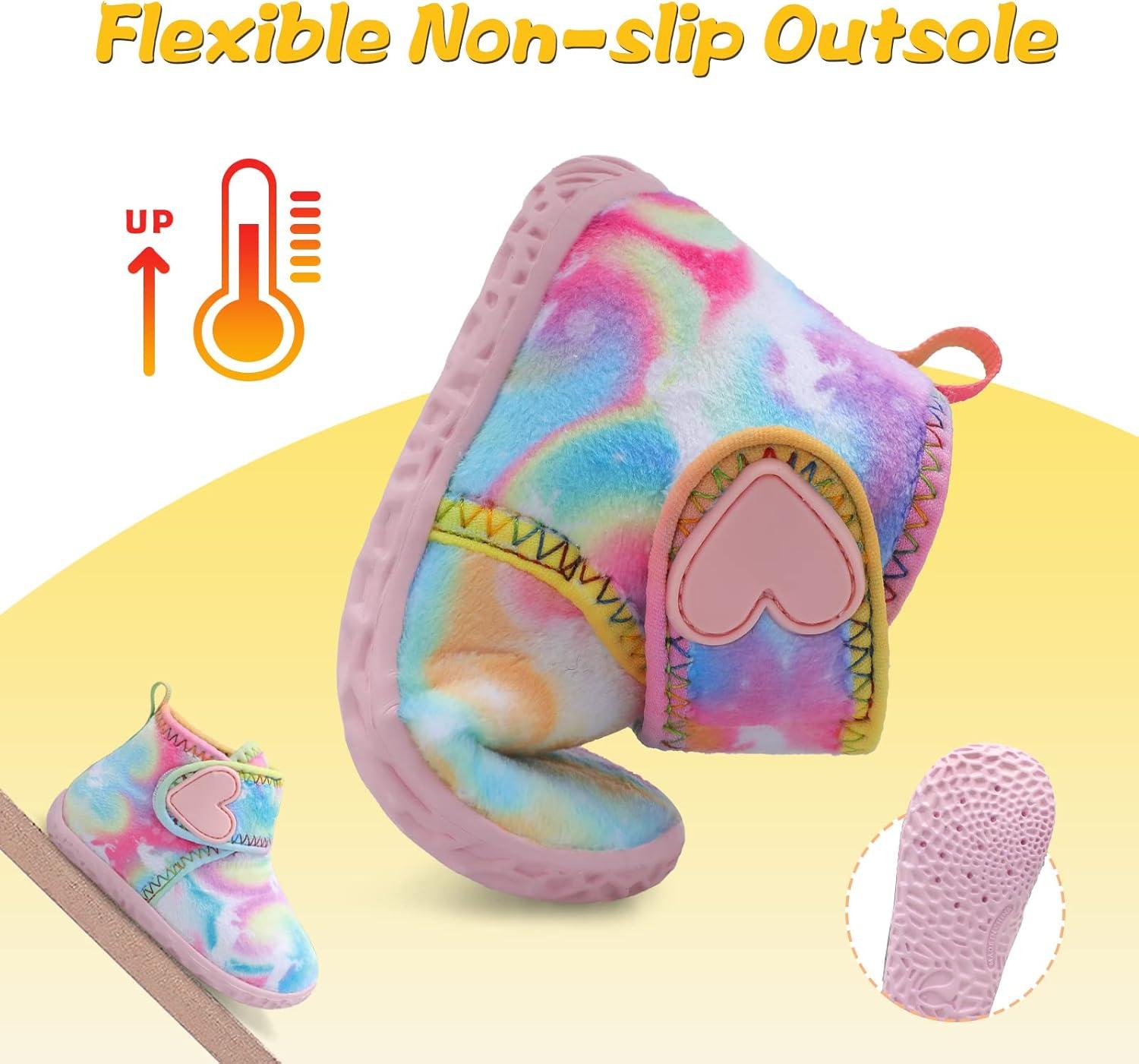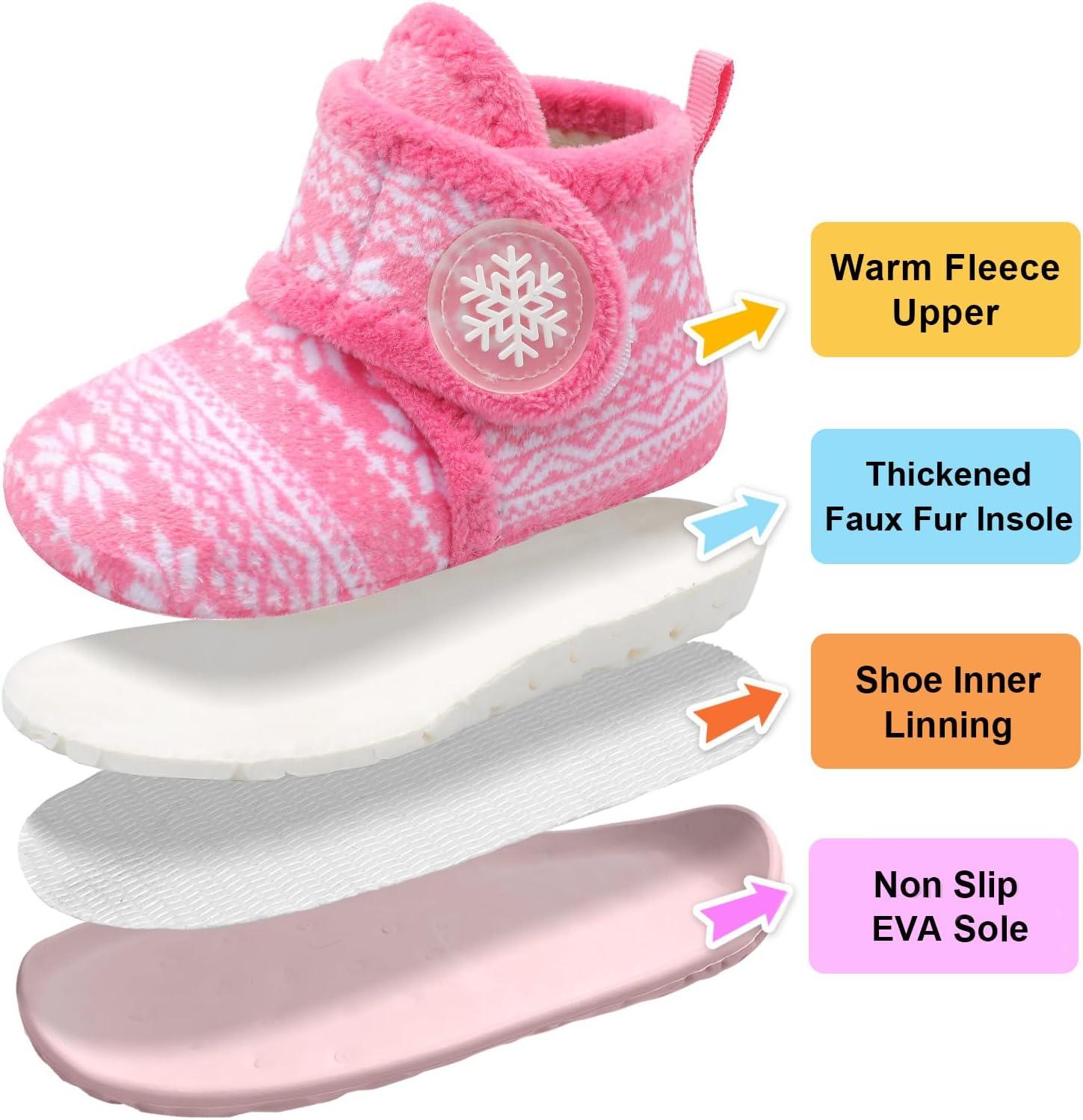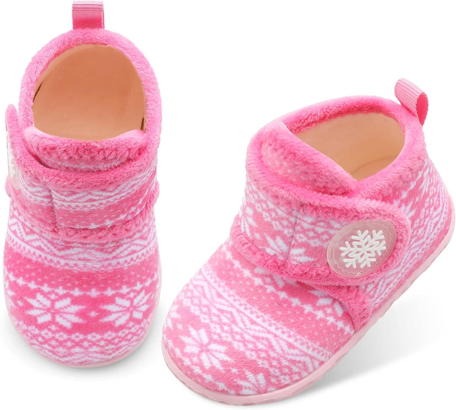 LeIsfIt Toddler Slippers Boys Girls House Slippers Kids Winter Boots Warm Lightweight House Shoes Non-slip Indoor Slipper Shoes(A-pinkpattern)