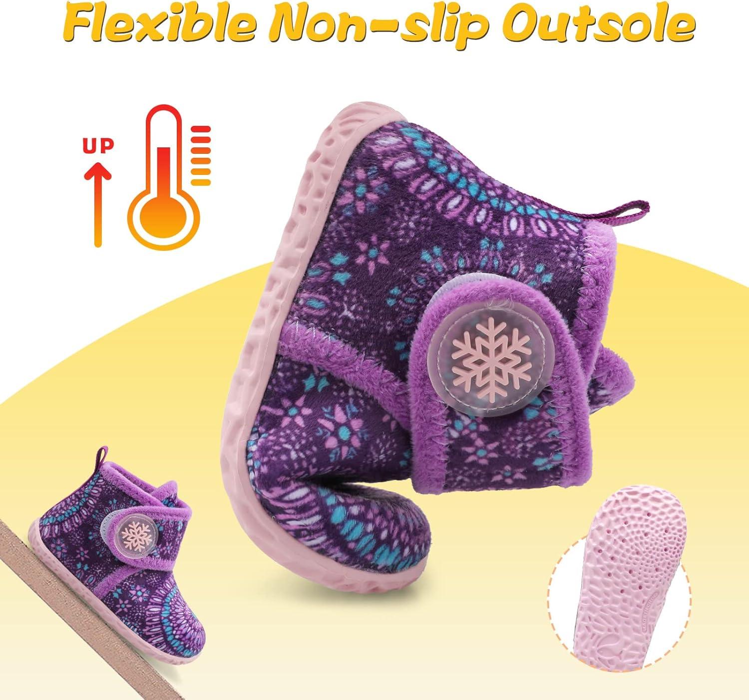 LeIsfIt Toddler Boots Girls Boys Warm Winter Boots Cozy Plush Lining Winter Shoes Indoor Outdoor Faux Fur Booties(Purplepattern)