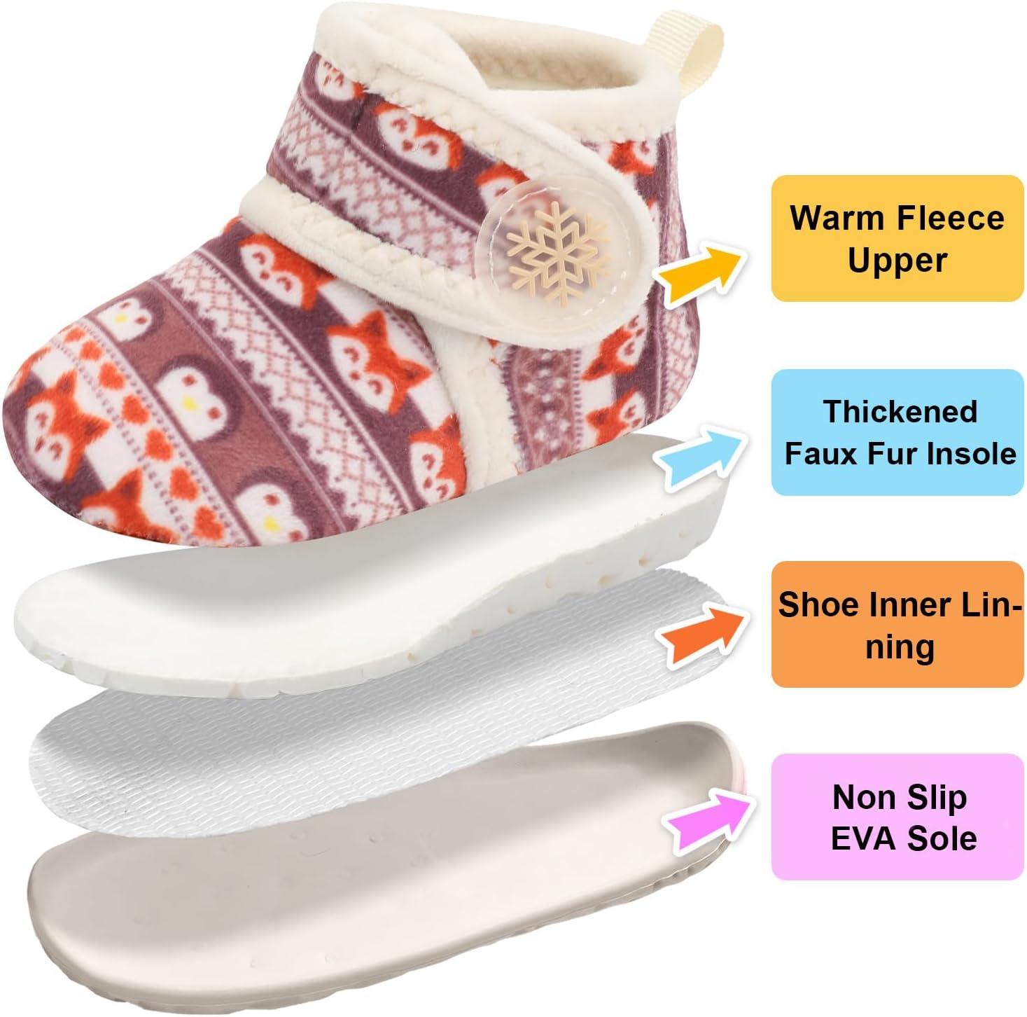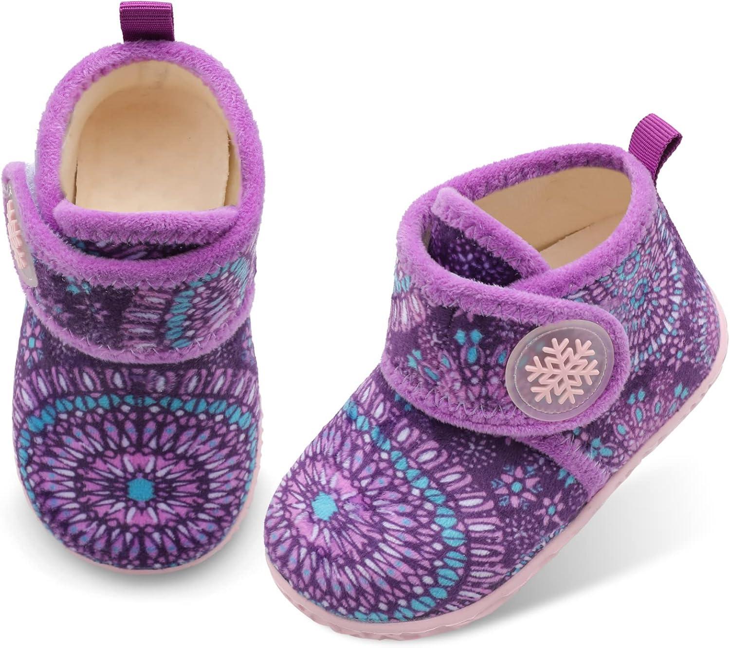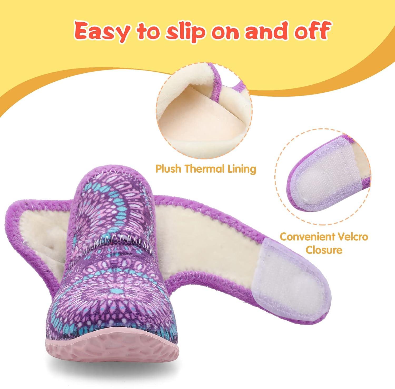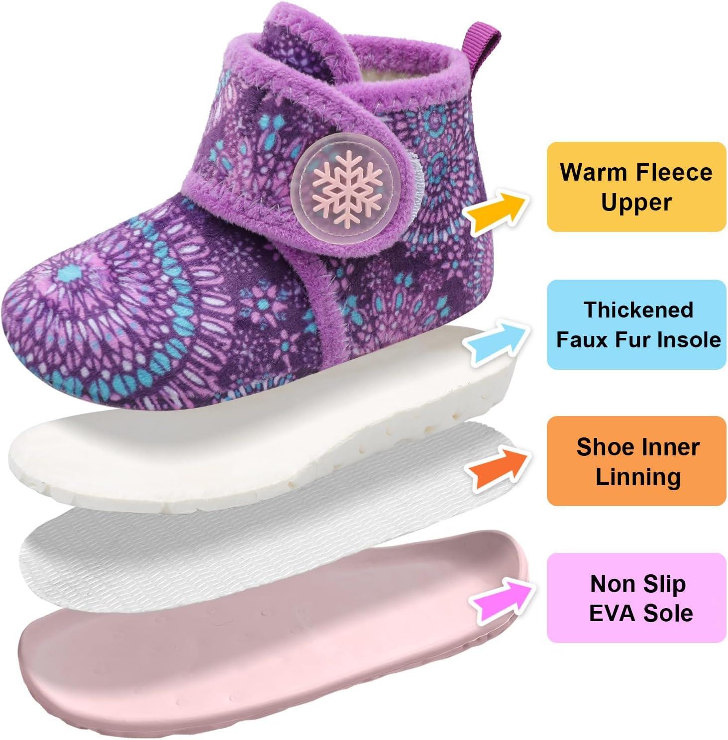 LeIsfIt Toddler Slippers Boys Girls House Slippers Kids Winter Boots Warm Lightweight House Shoes Non-slip Indoor Slipper Shoes(A-purplepattern)
