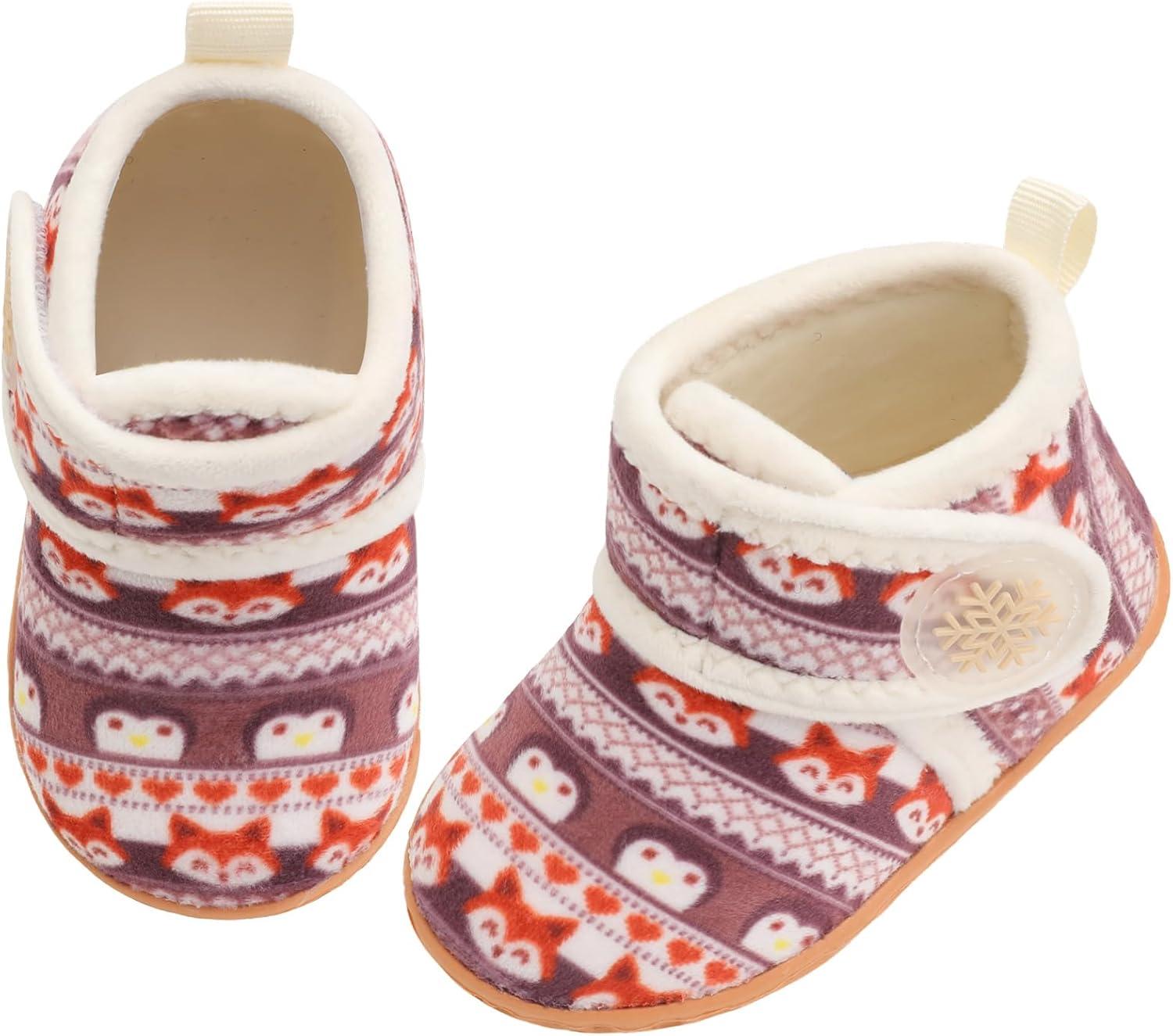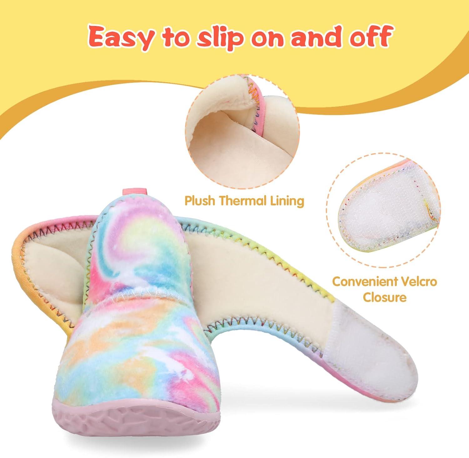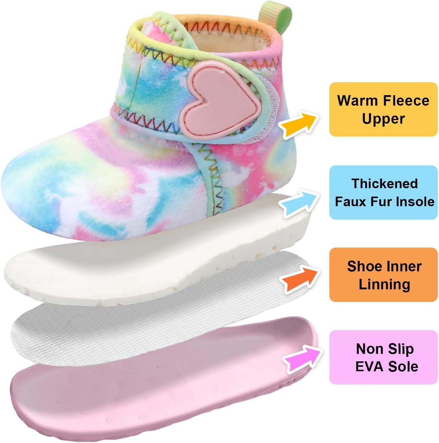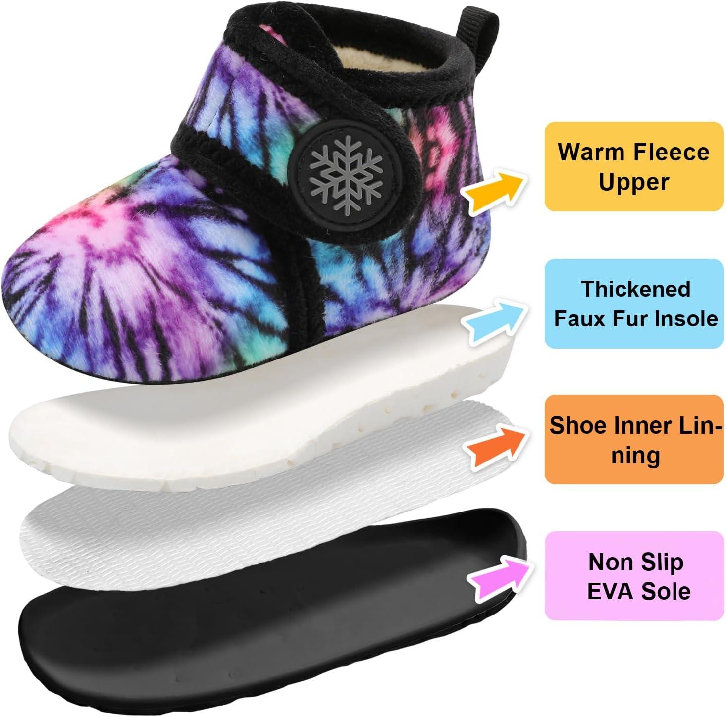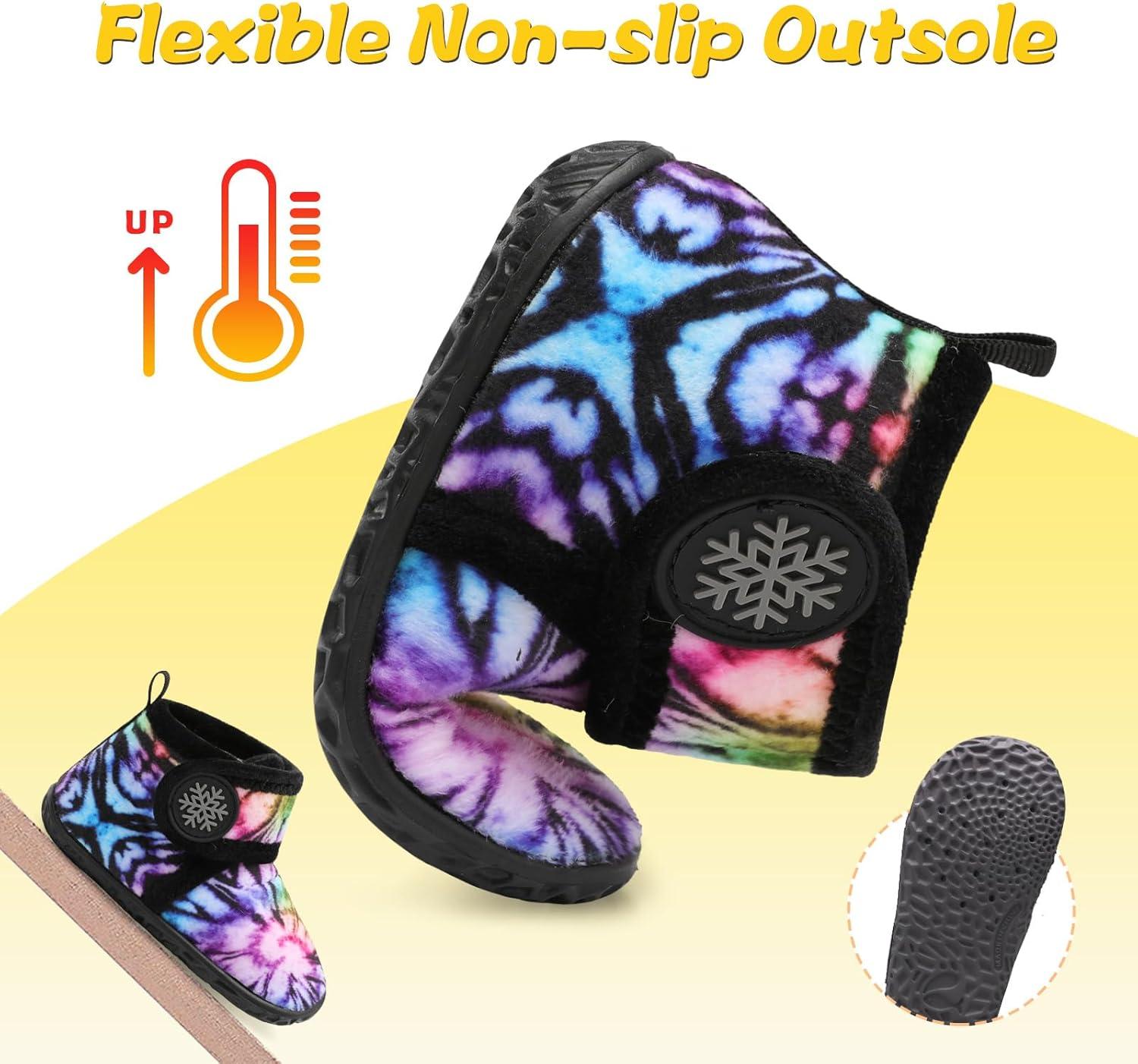 LeIsfIt Toddler Slippers Boys Girls House Slippers Kids Winter Boots Warm Lightweight House Shoes Non-slip Indoor Slipper Shoes(A-purplepattern)