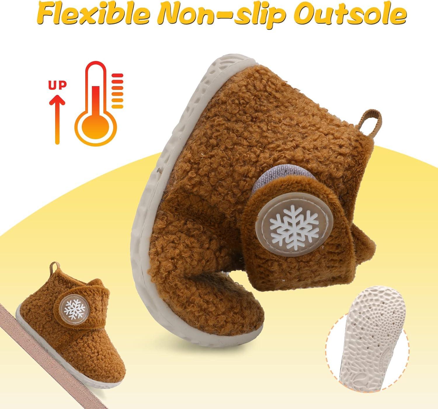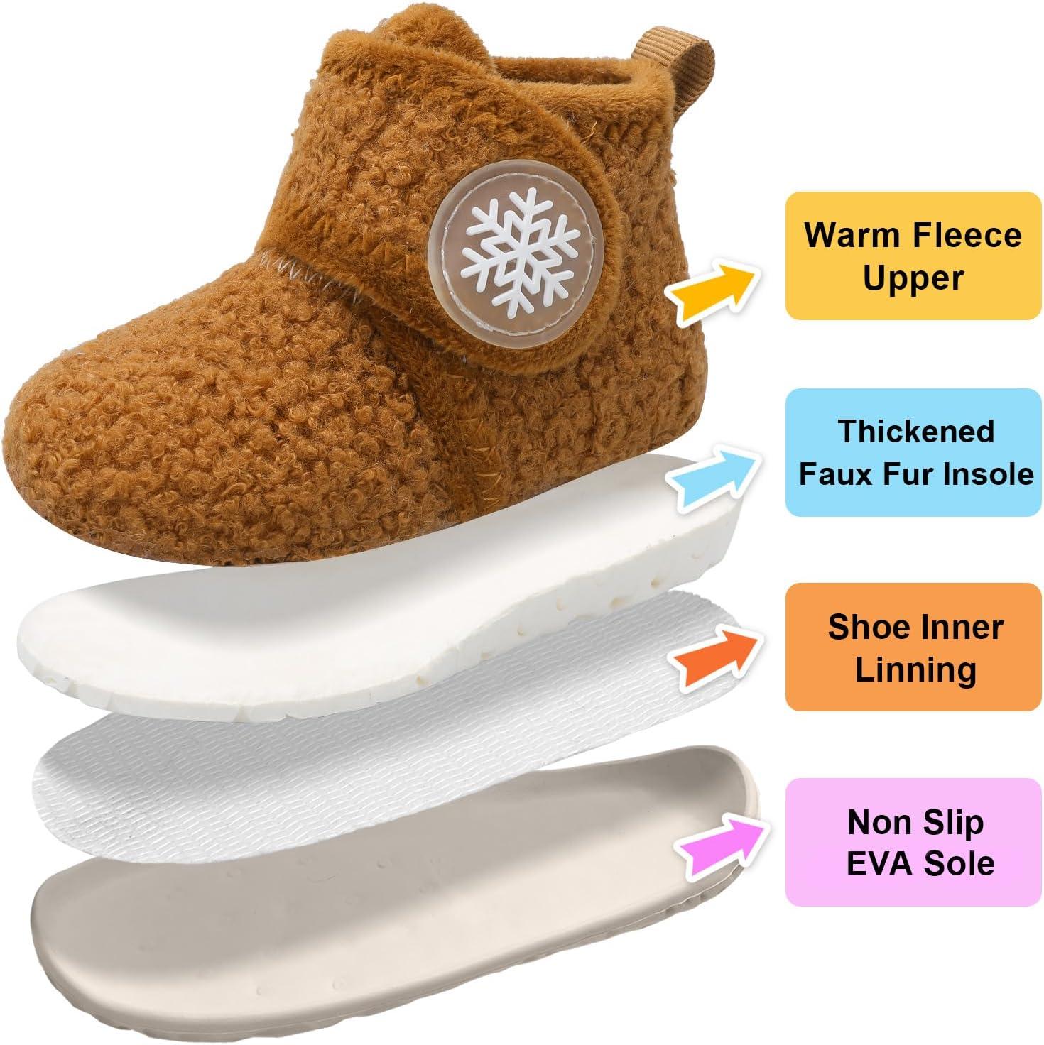 LeIsfIt Toddler Boots Girls Boys Warm Winter Boots Cozy Plush Lining Winter Shoes Indoor Outdoor Faux Fur Booties(Brown)