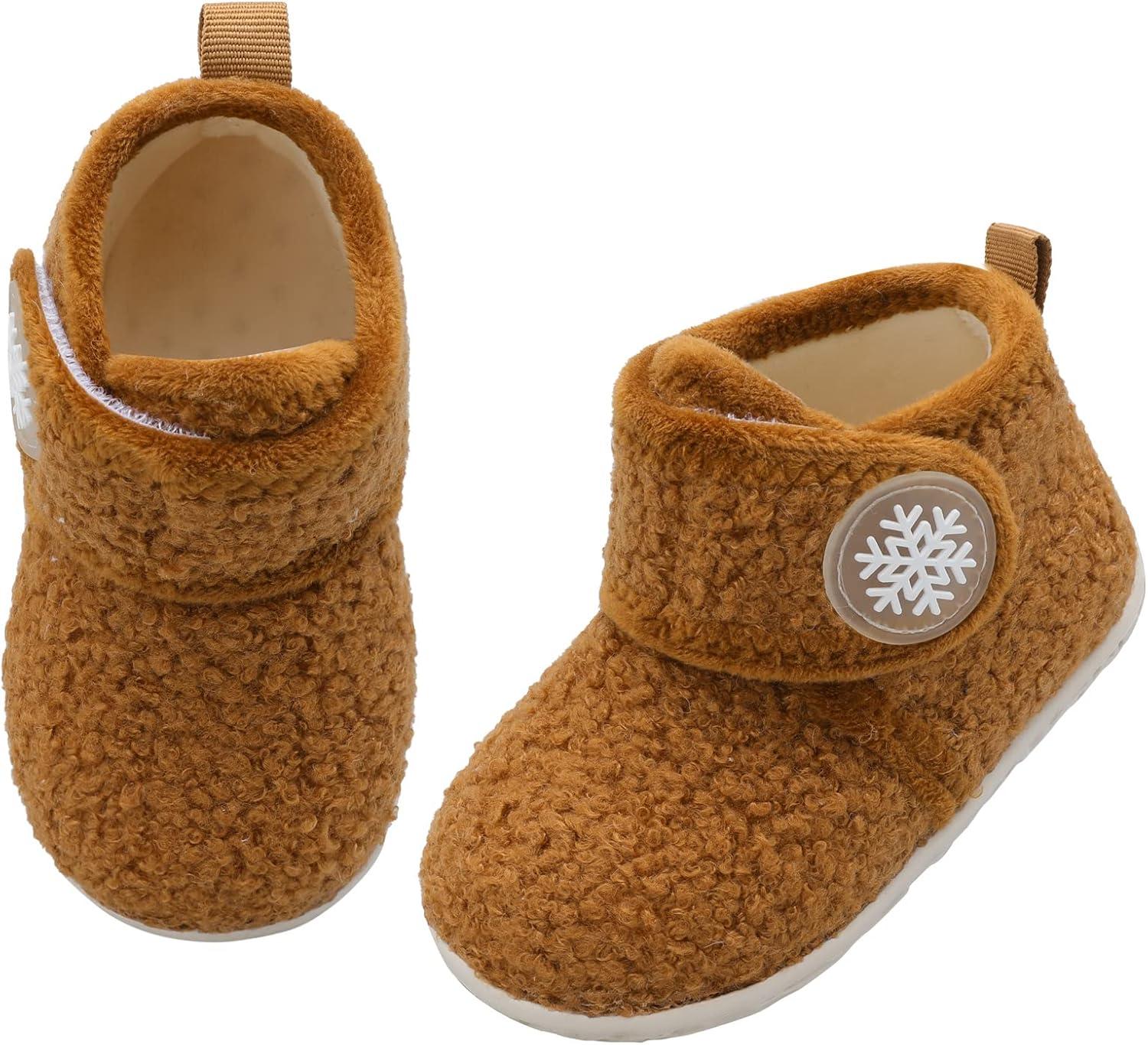 LeIsfIt Toddler Slippers Boys Girls House Slippers Kids Winter Boots Warm Lightweight House Shoes Non-slip Indoor Slipper Shoes(B-dark Brown)
