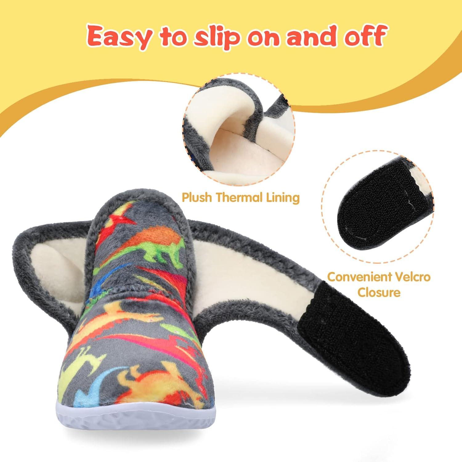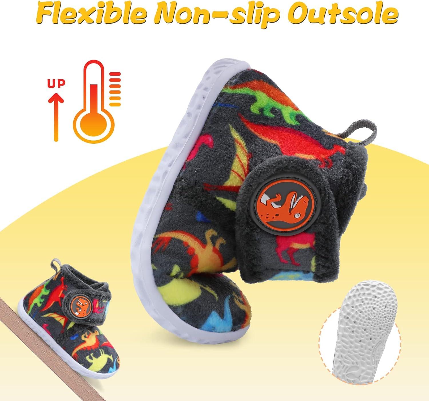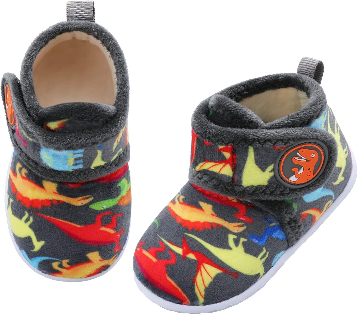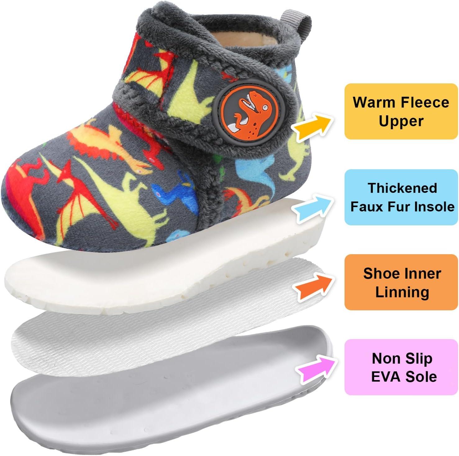 LeIsfIt Toddler Slippers Boys Girls House Slippers Kids Winter Boots Warm Lightweight House Shoes Non-slip Indoor Slipper Shoes(B-grey Dinosaur)