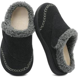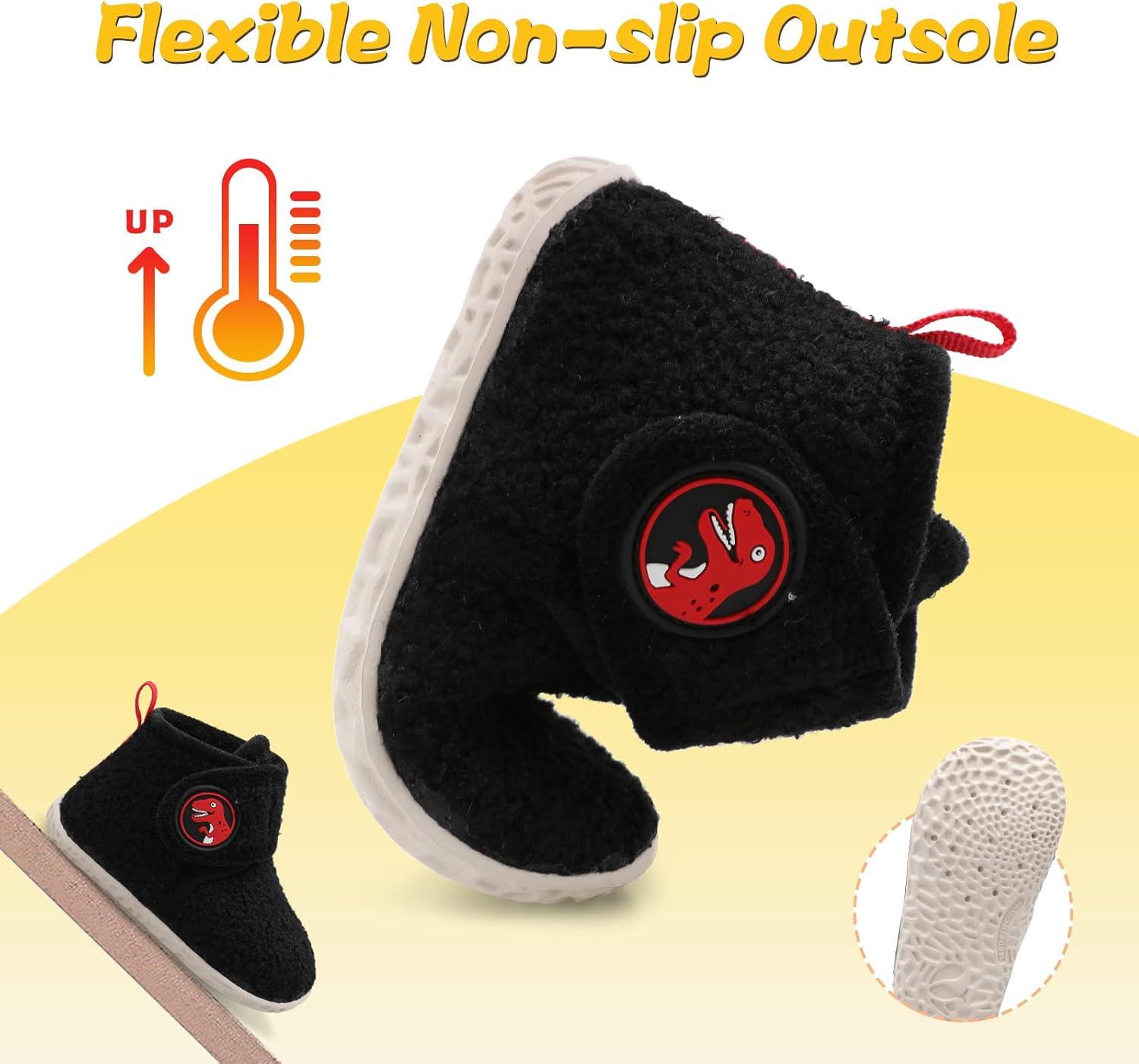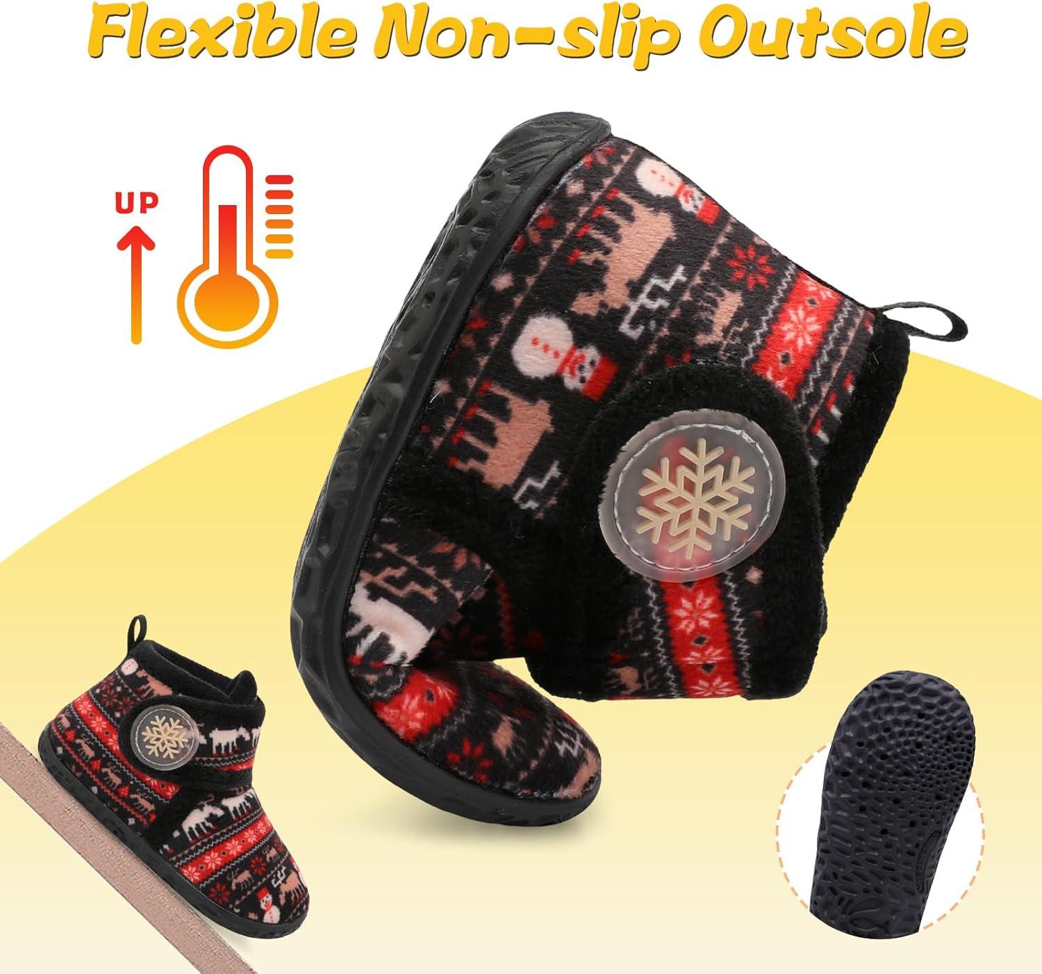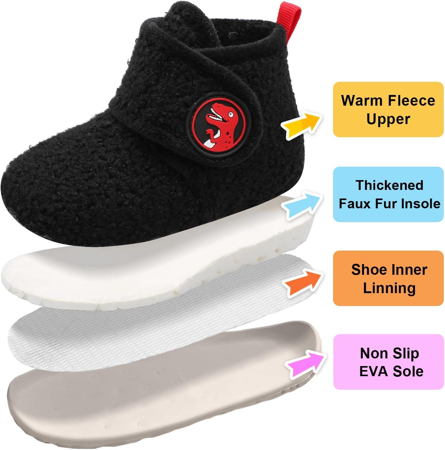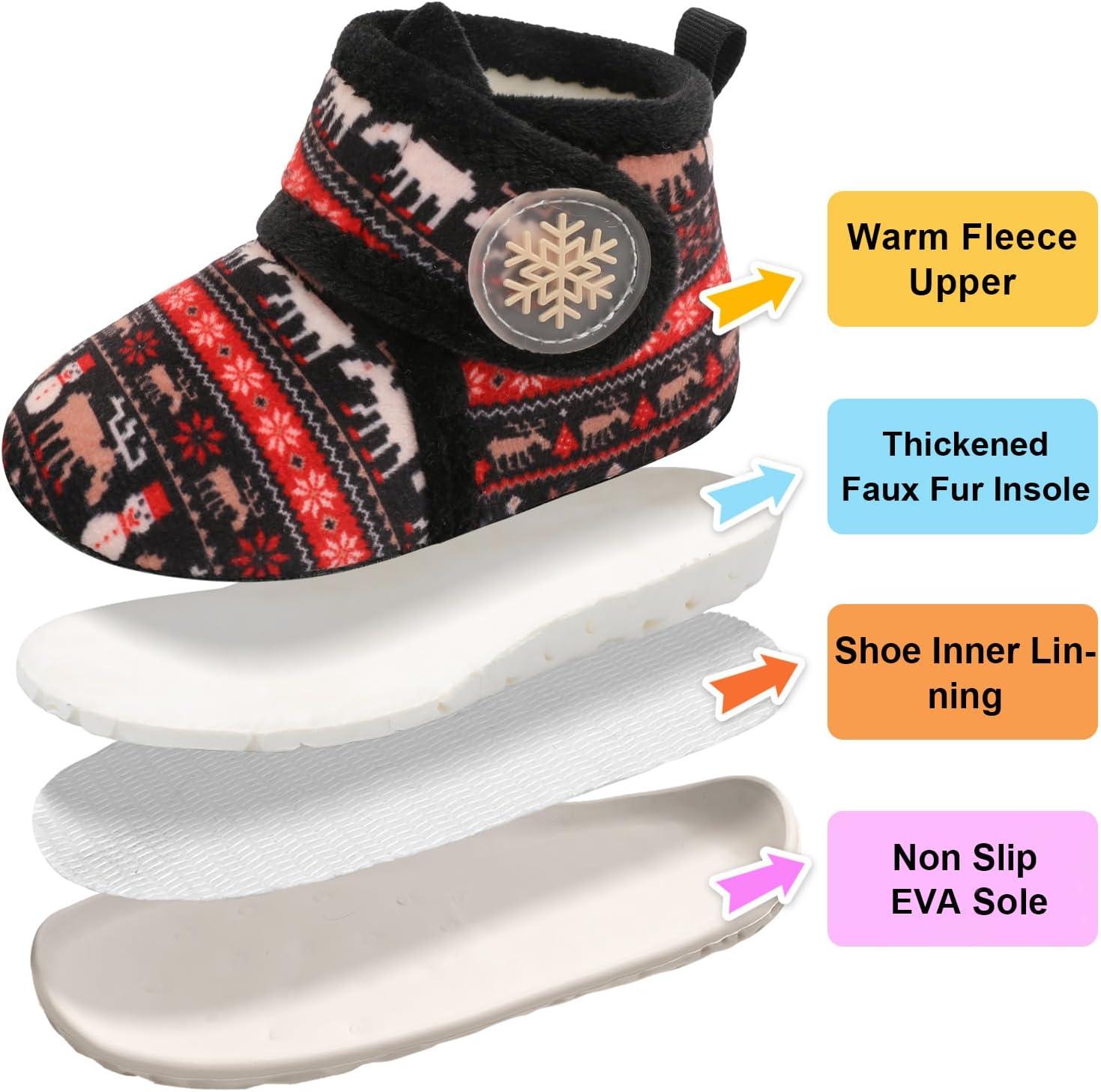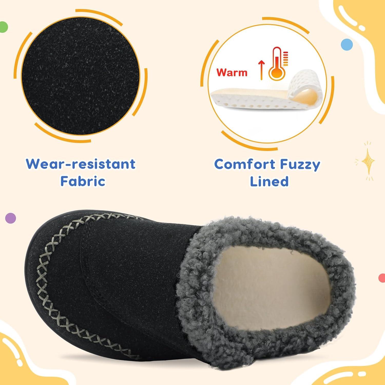 LeIsfIt Toddler Slippers Boys Girls House Slippers Kids Winter Boots Warm Lightweight House Shoes Non-slip Indoor Slipper Shoes(C-blackcolor)