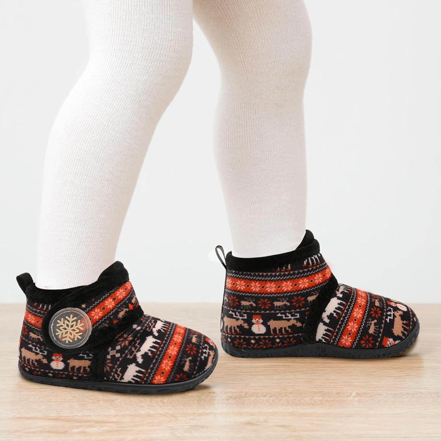 LeIsfIt Toddler Slippers Boys Girls House Slippers Kids Winter Boots Warm Lightweight House Shoes Non-slip Indoor Slipper Shoes(Blackdeer)
