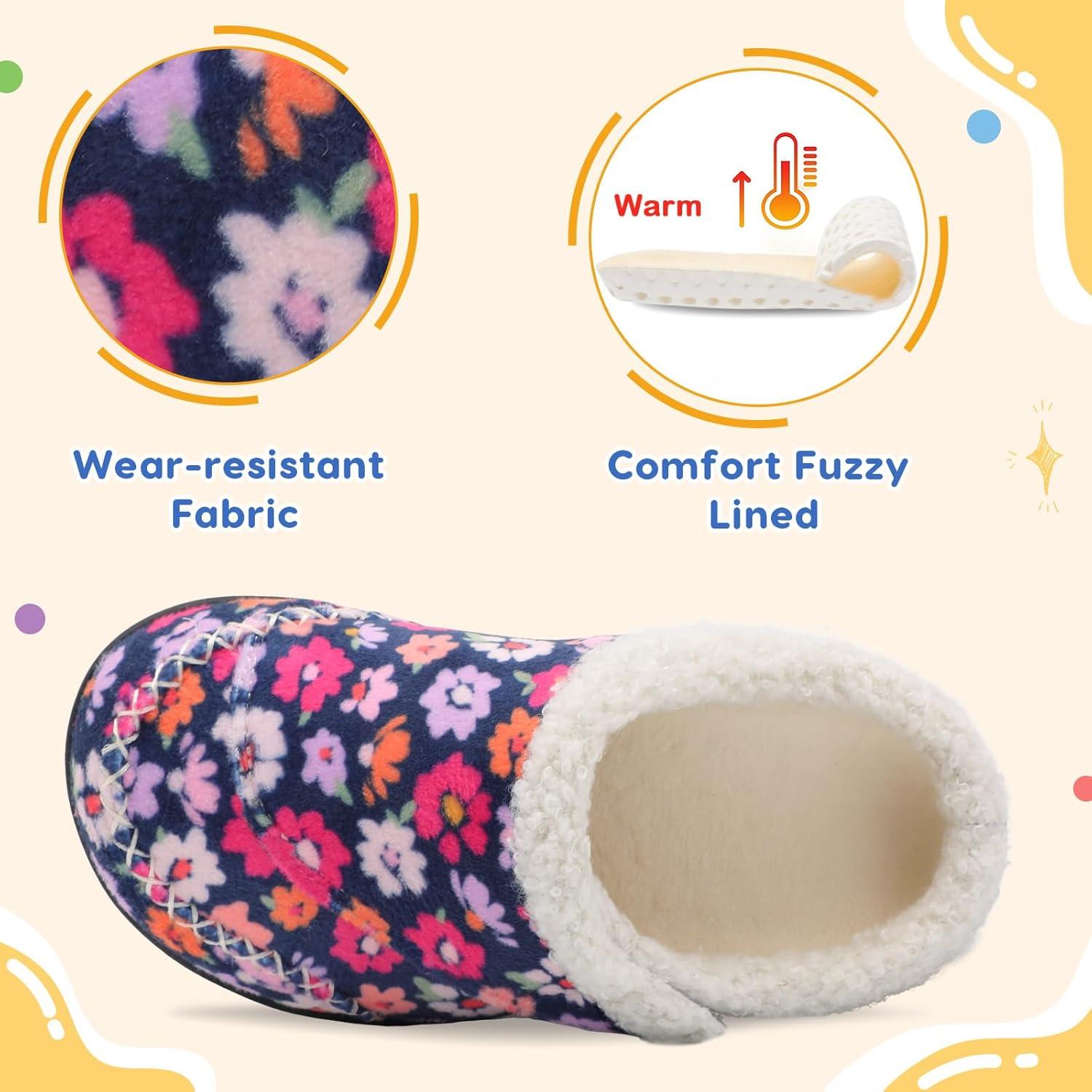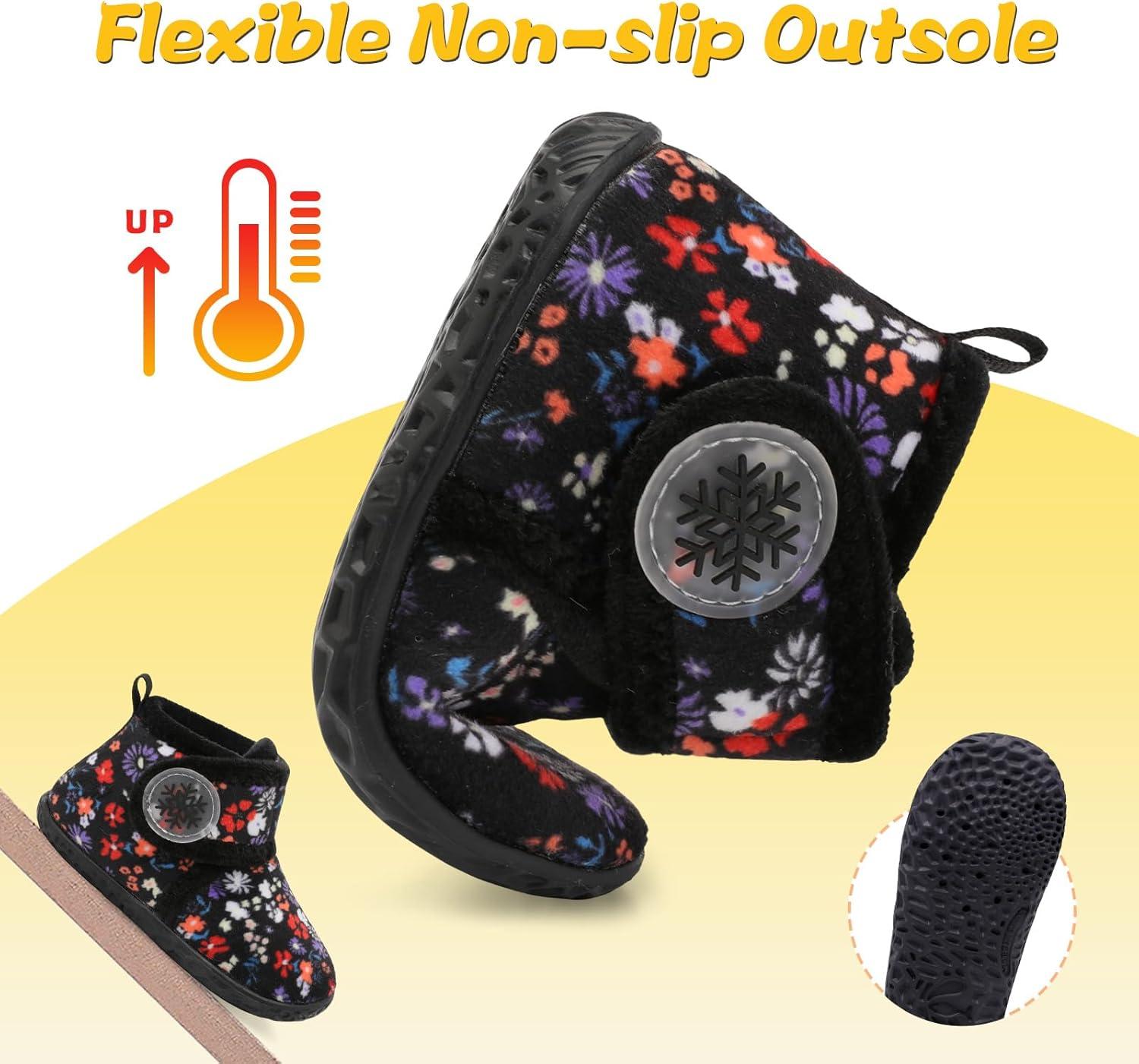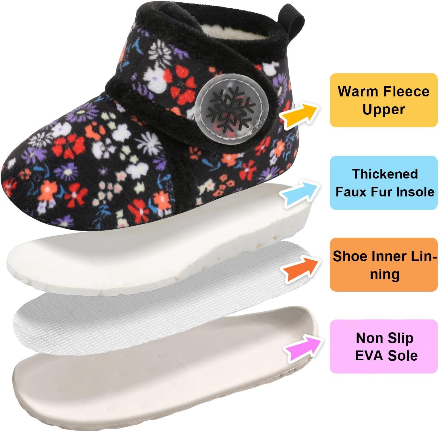 LeIsfIt Toddler Slippers Boys Girls House Slippers Kids Winter Boots Warm Lightweight House Shoes Non-slip Indoor Slipper Shoes(Blackflower)