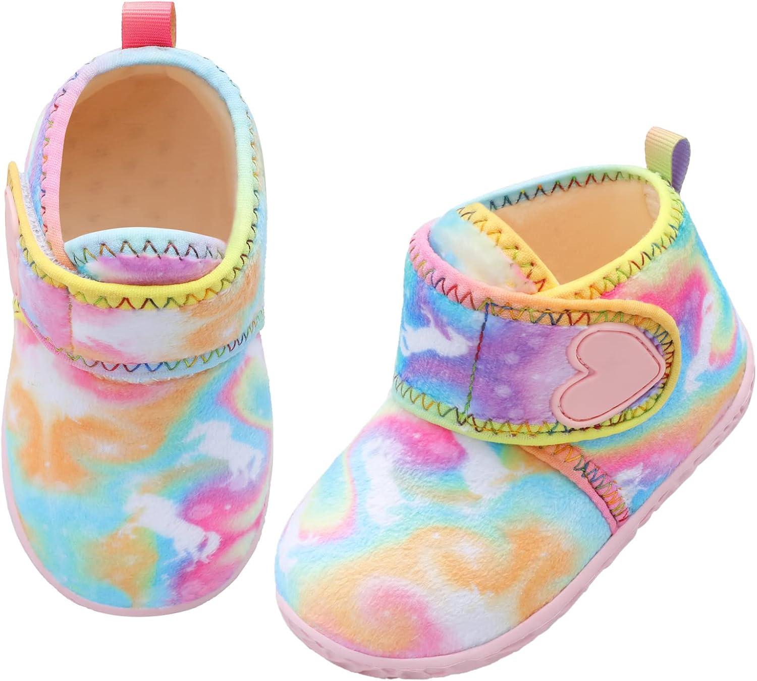 LeIsfIt Toddler Slippers Boys Girls House Slippers Kids Winter Boots Warm Lightweight House Shoes Non-slip Indoor Slipper Shoes(B-multicolored Horse)