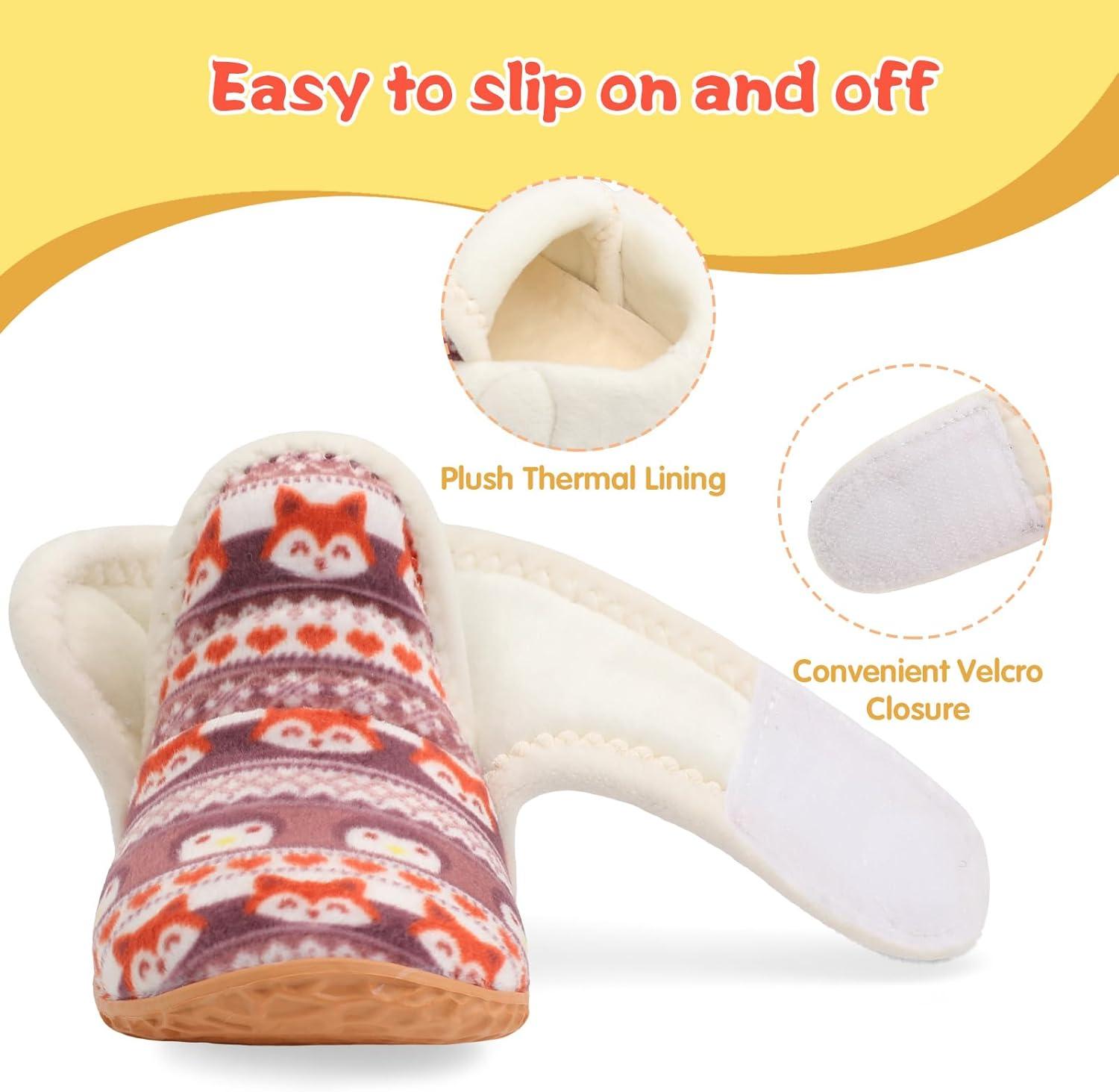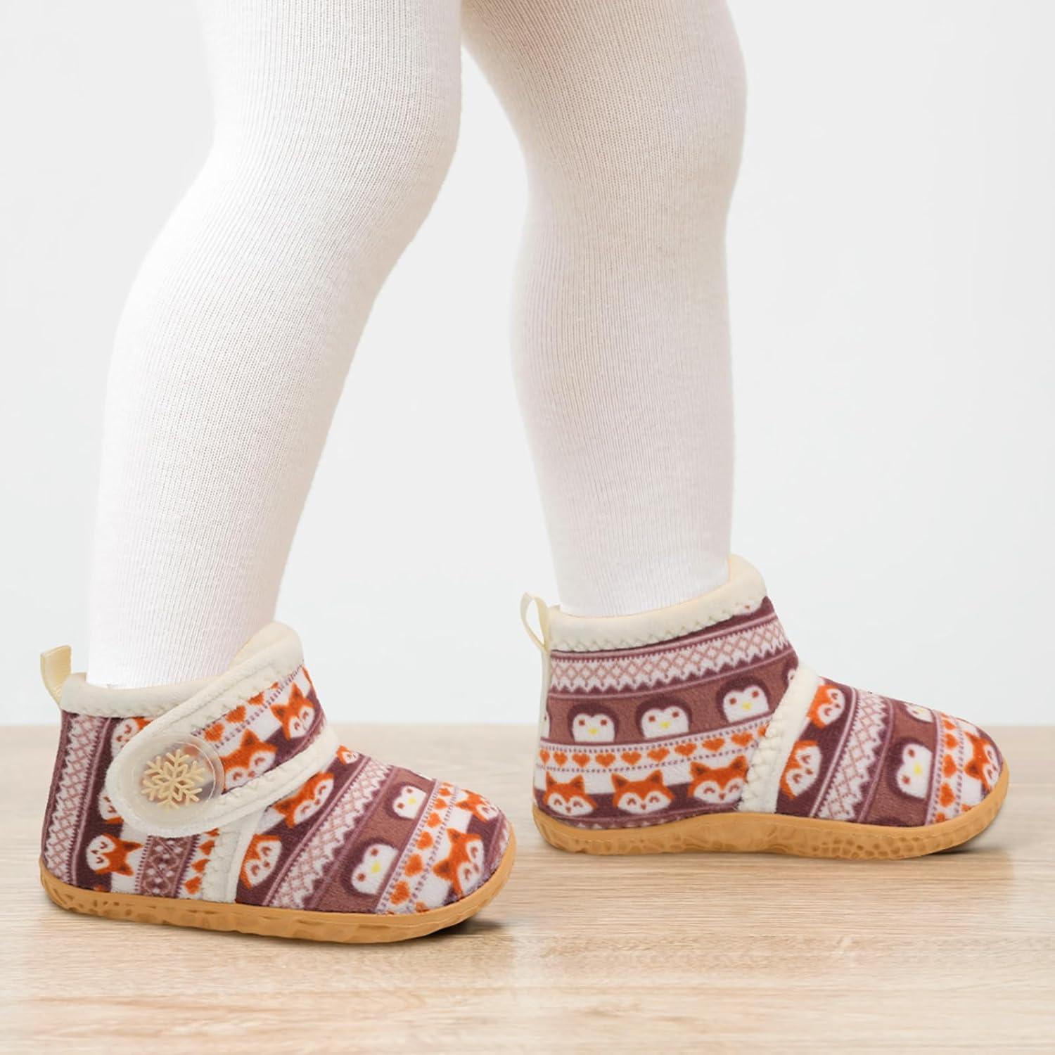 LeIsfIt Toddler Slippers Boys Girls House Slippers Kids Winter Boots Warm Lightweight House Shoes Non-slip Indoor Slipper Shoes(Brownfox)