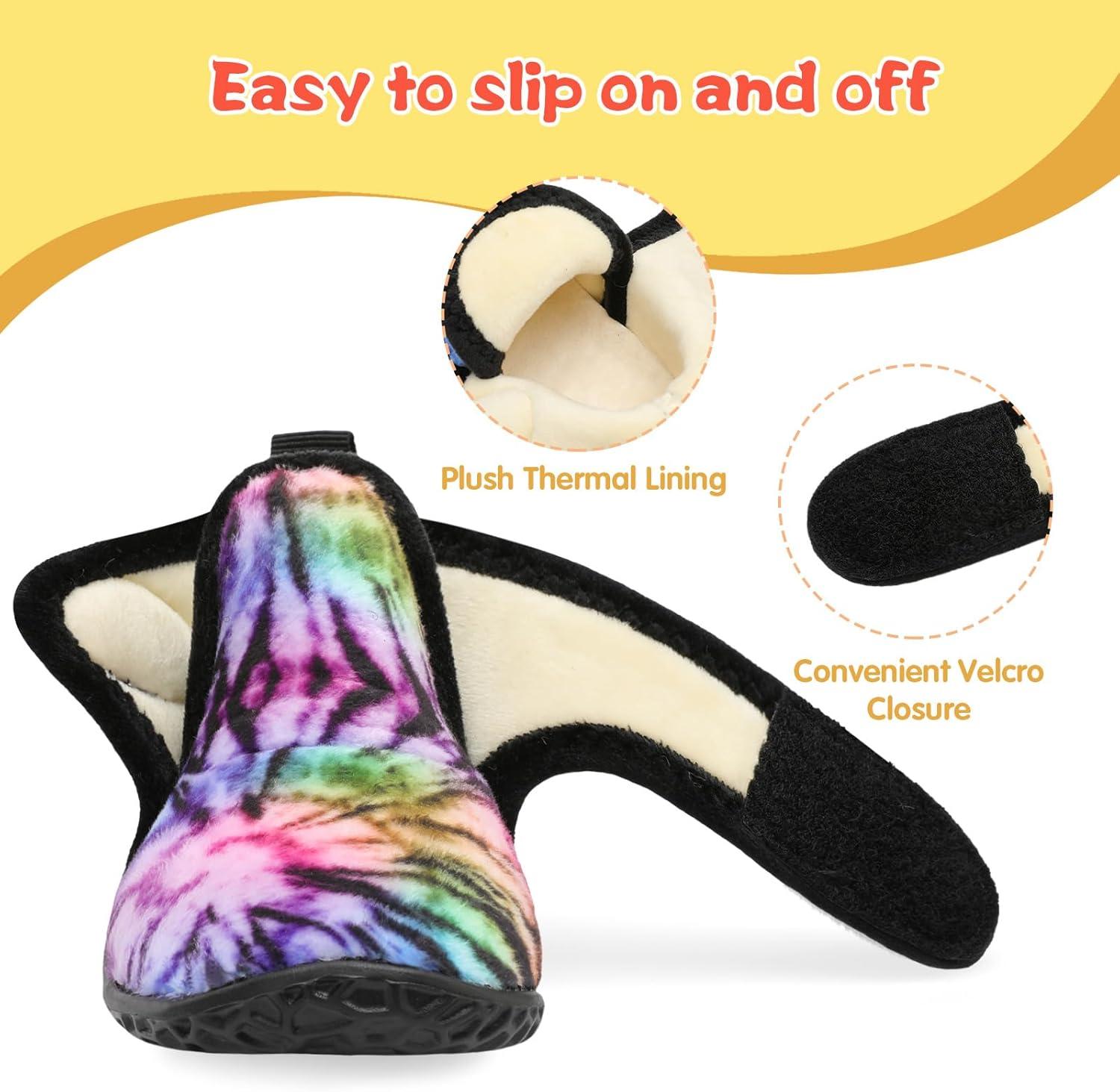 LeIsfIt Slipper Boots for Women Wide Warm House Shoes Non-slip Diabetic Winter Shoes Adjustable Bootie Slippers for Indoor & Outdoor(Colorful)